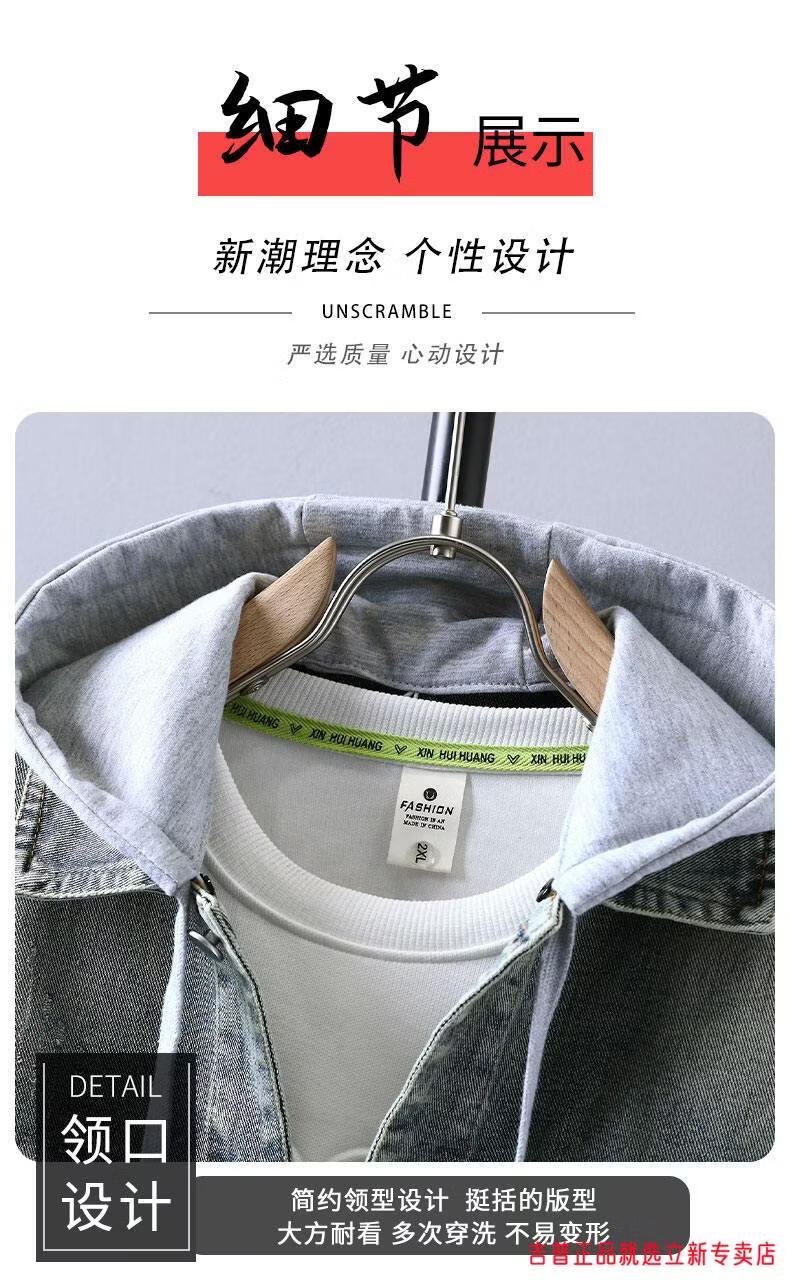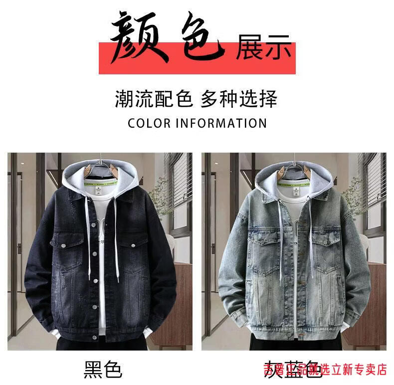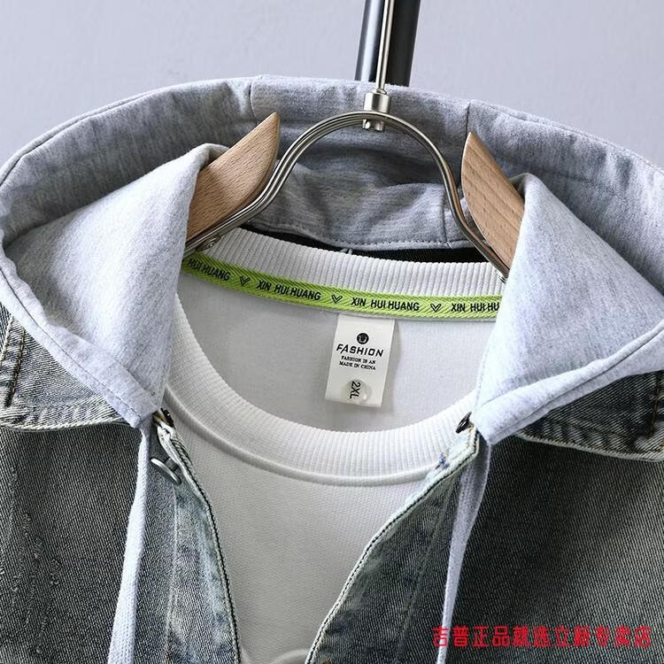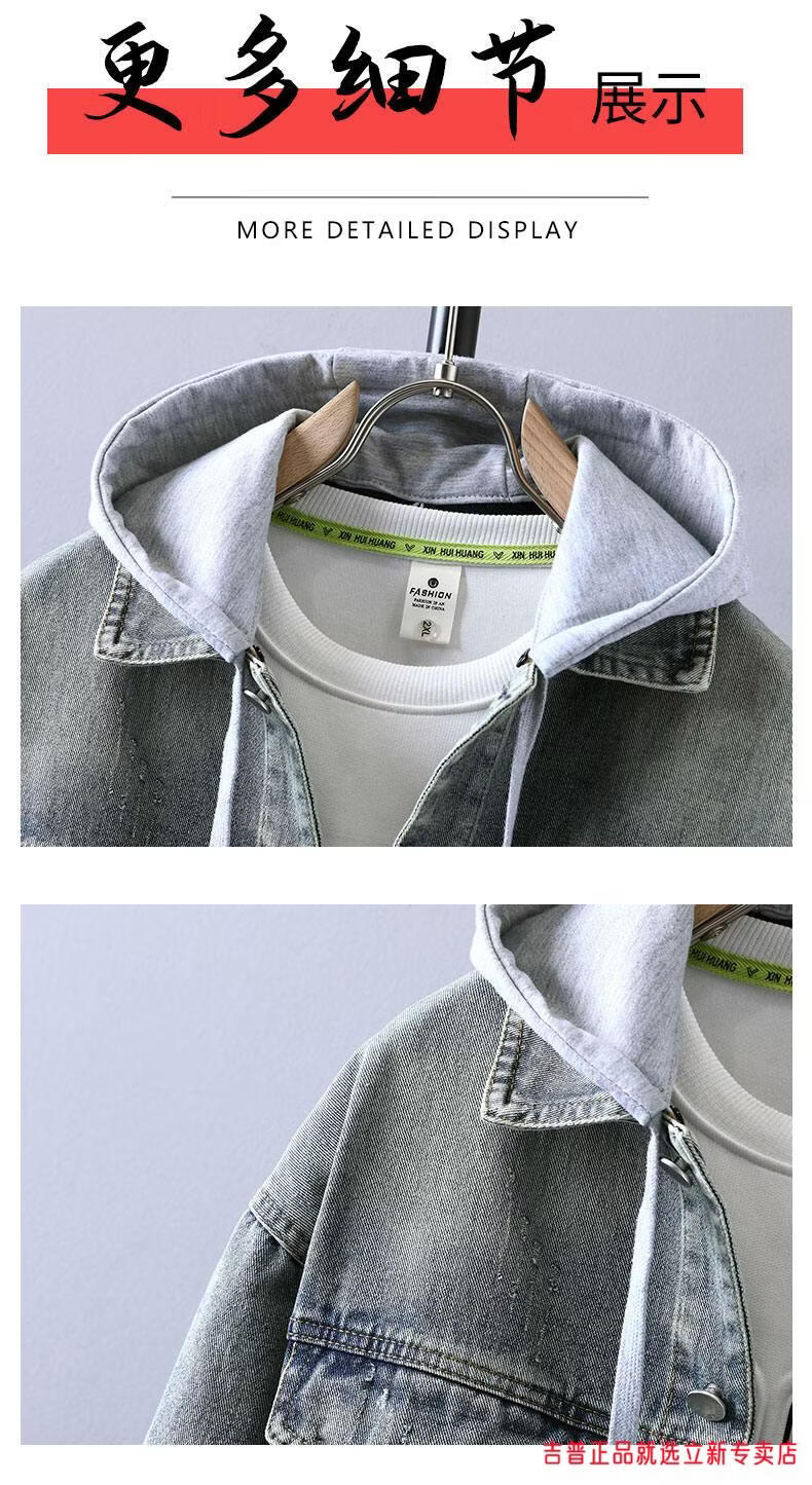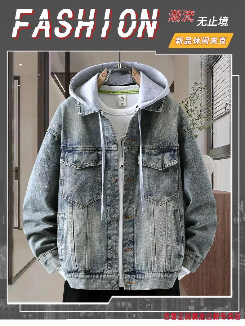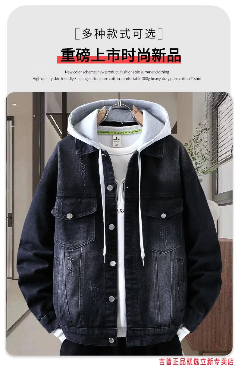 JEEP SPIRIT2026 Spring and Autumn Denim Jacket Boys' Sweater Trendy Loose Hooded Design Hong Kong Style Casual Handsome Jacket Plus Size Men's Clothing - Navy Blue M