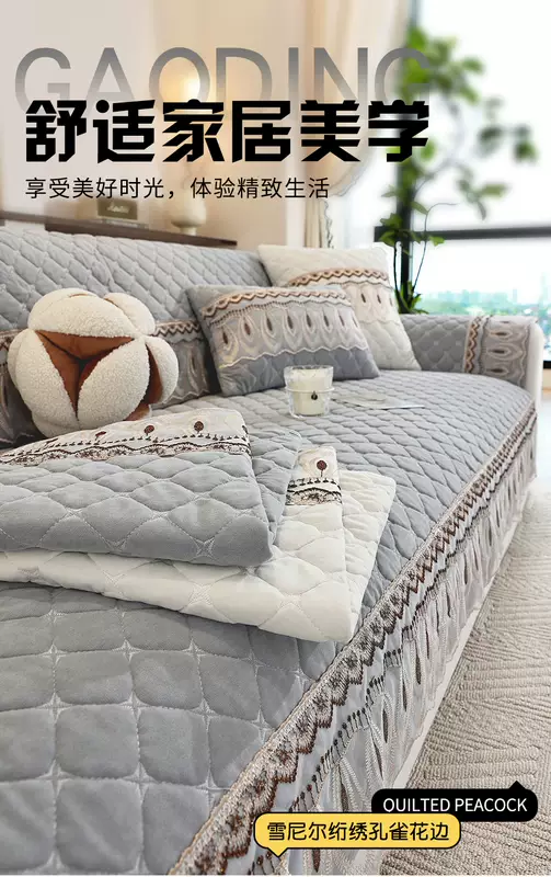Yusenyi Thickened Snow Cotton Sofa Cushion Neil Clip Four Seasons Universal Bag Sofa Cover Fully Non-Slip Cushion Cover Winter Chenille - Thickened Cotton Sofa (Bean Green) Width 90x Length 280cm (One piece is not a complete set)