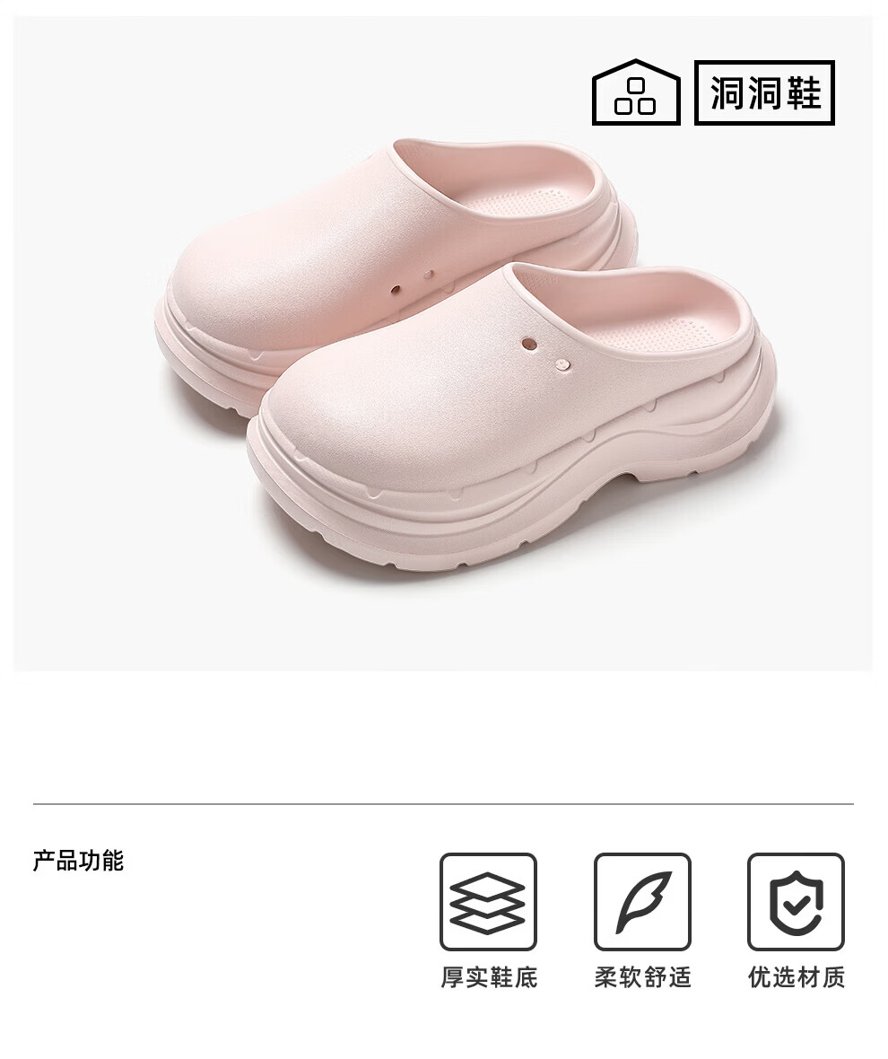 Red Bean Thick-Soled Croc Shoes Women's Summer 2026 New Outdoor Wear Indoor Home Anti-slip Baotou Sandal Slippers Pink 35-36 Regular Size Inner Length 225mm