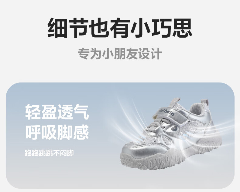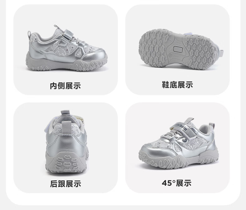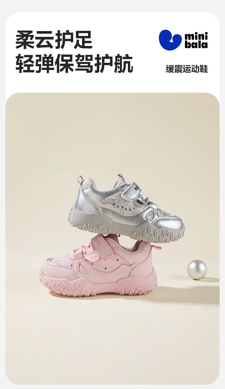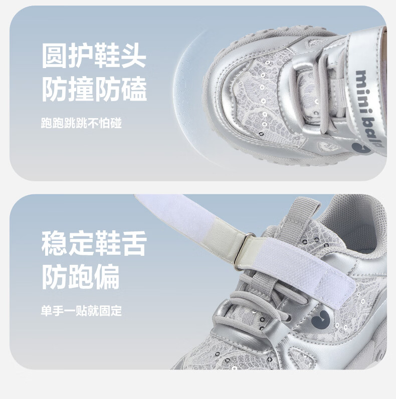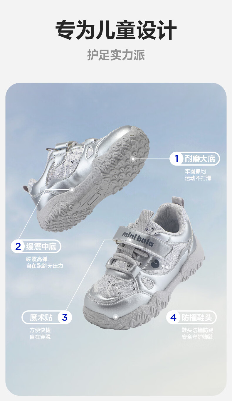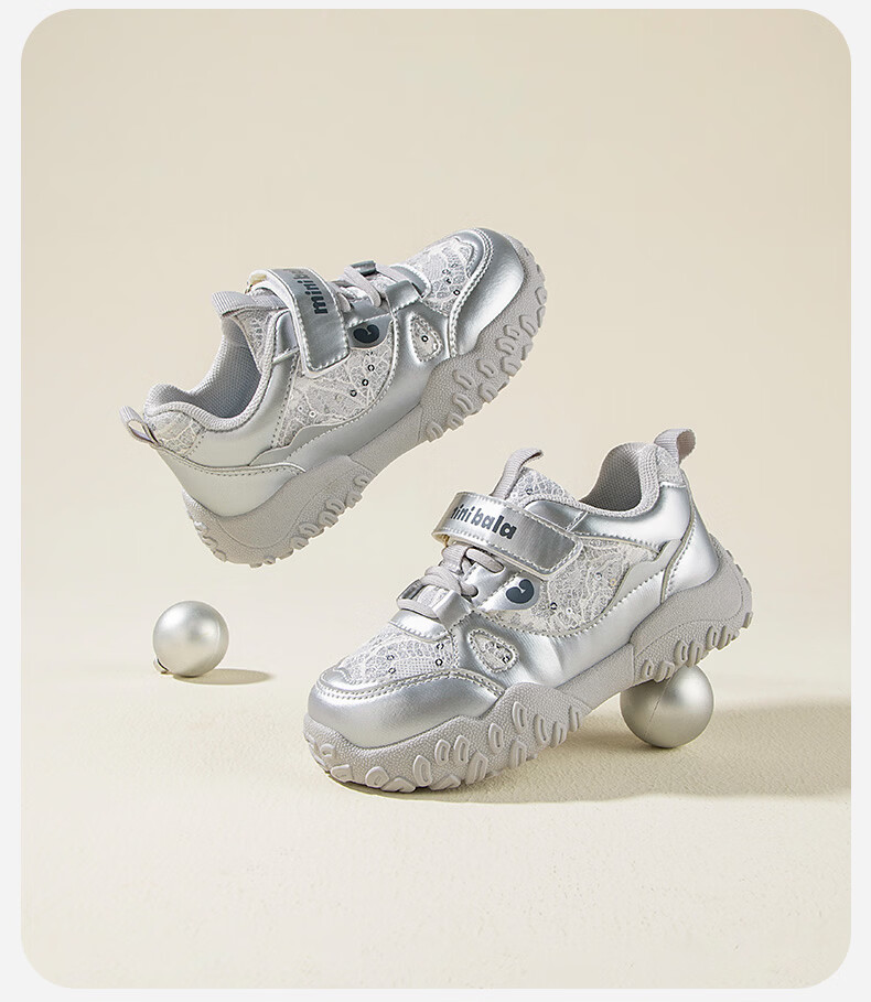 Minibala (minibala) children's shoes, children's sports shoes, spring new wear-resistant cushioning outdoor casual running shoes for boys and girls, anti-collision for small and medium-sized children, smoke gray silver 26 (shoe inner length is about 17.0cm)