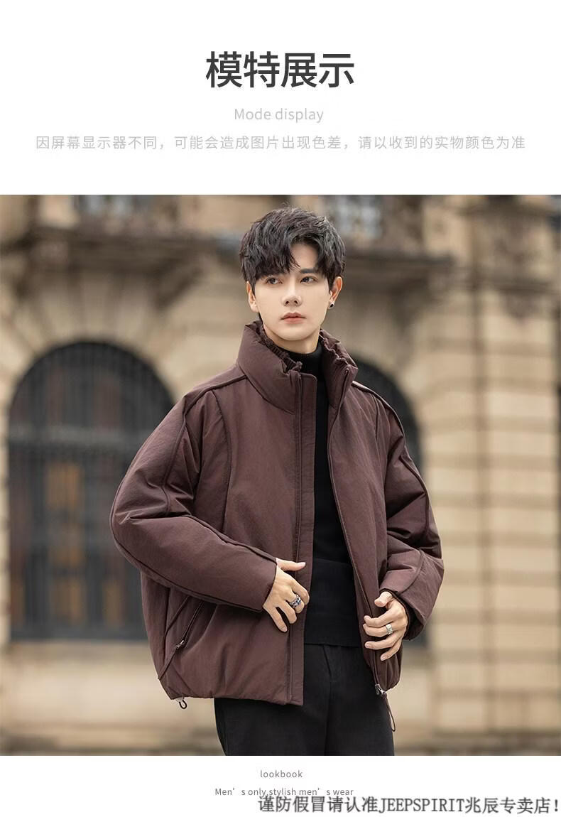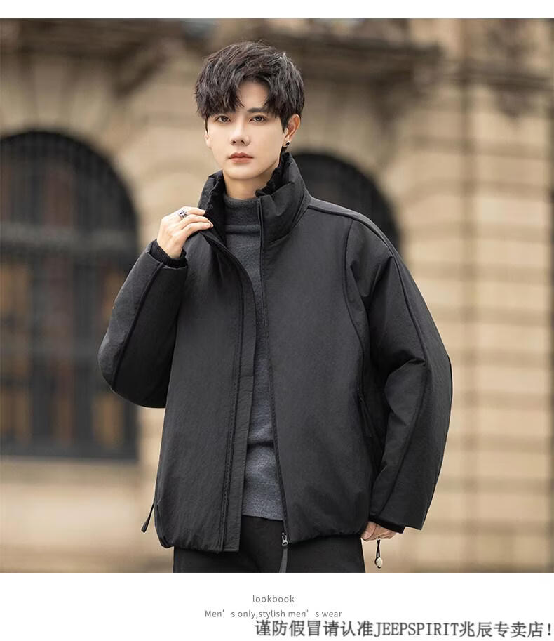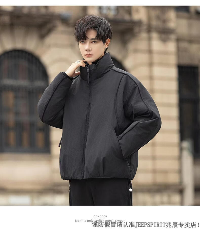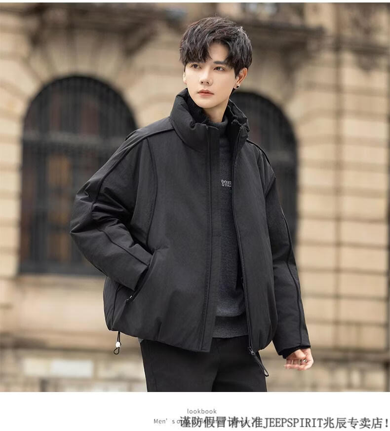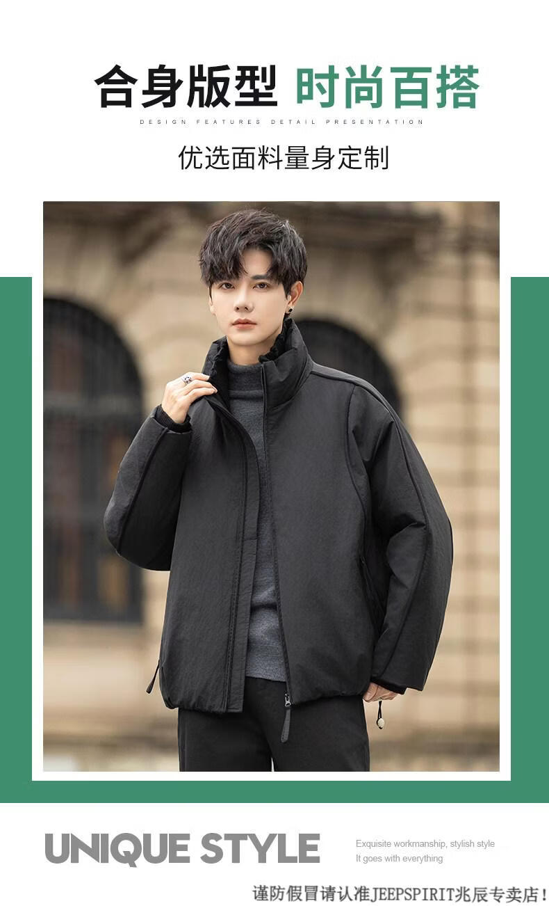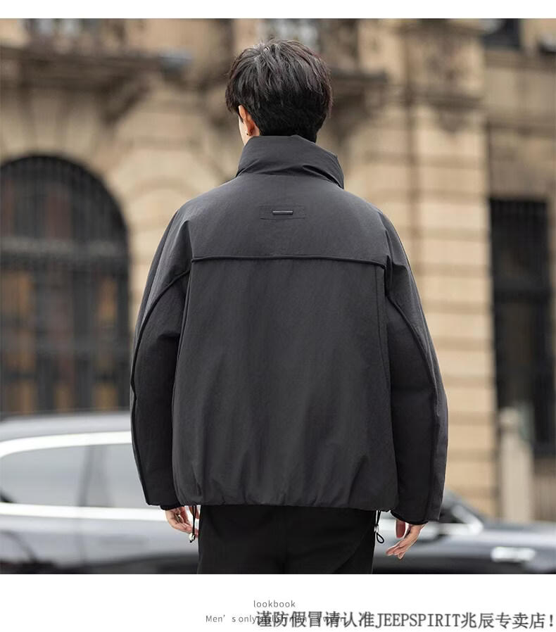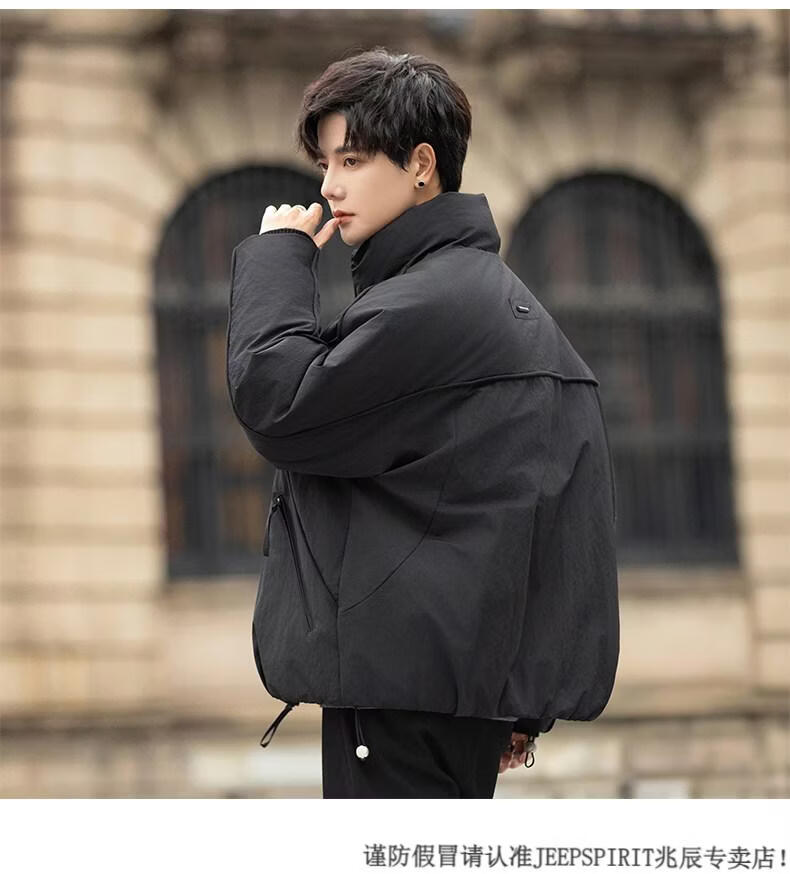 JEEP SPIRIT2025 Winter Down Jacket Men's 90 White Duck Down Stand Collar Loose Thickened Warm Fashion Jacket Handsome Top Clothes Trendy YR2560 Black 2XL