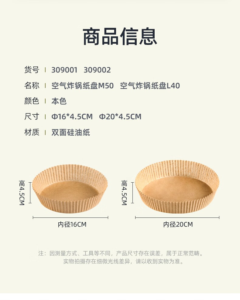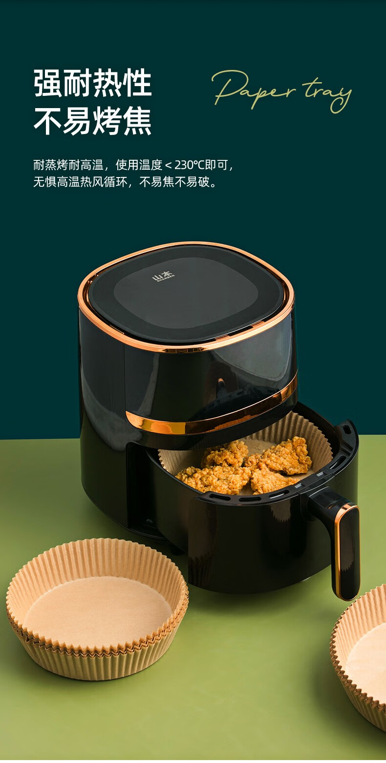 Camellia best-selling food-grade disposable air fryer special oil-absorbing paper household food double-sided silicone paper medium size 50 sheets for 3-6L fryer