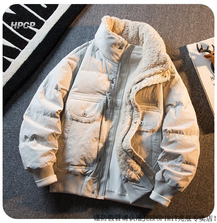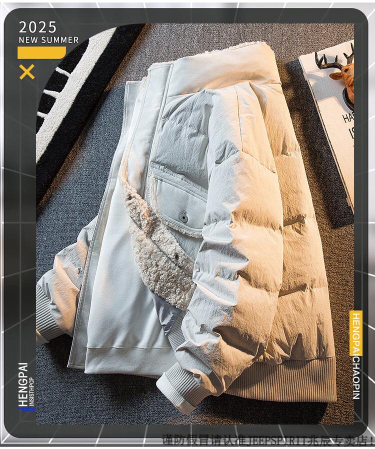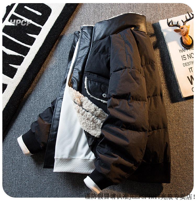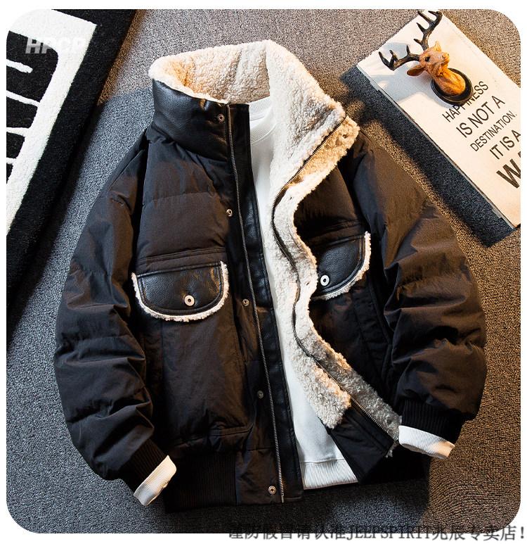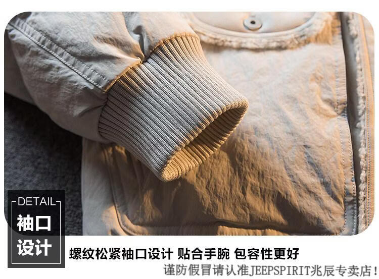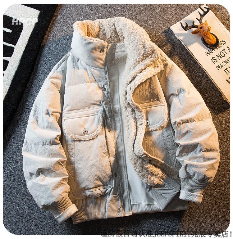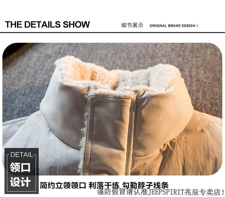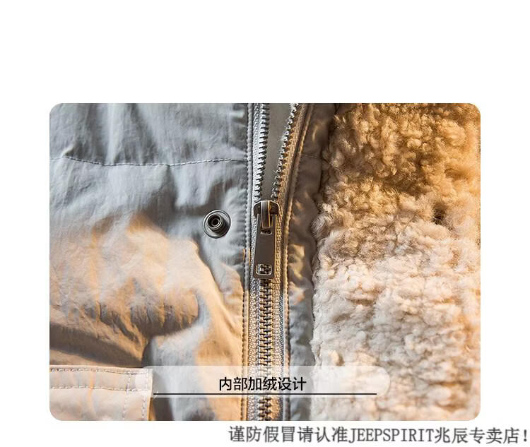 JEEP SPIRIT new heavyweight thickened sherpa splicing down jacket men's winter warm stand-up collar down jacket jacket men's winter gray 2XL