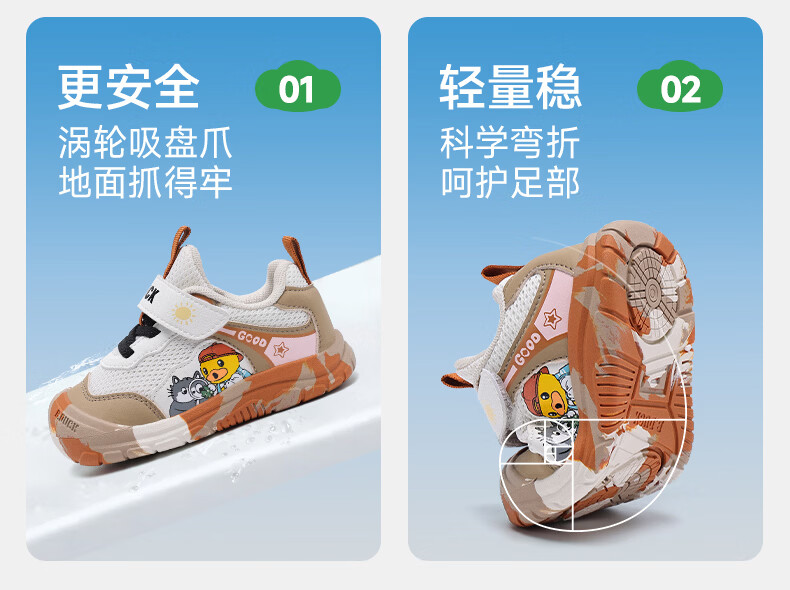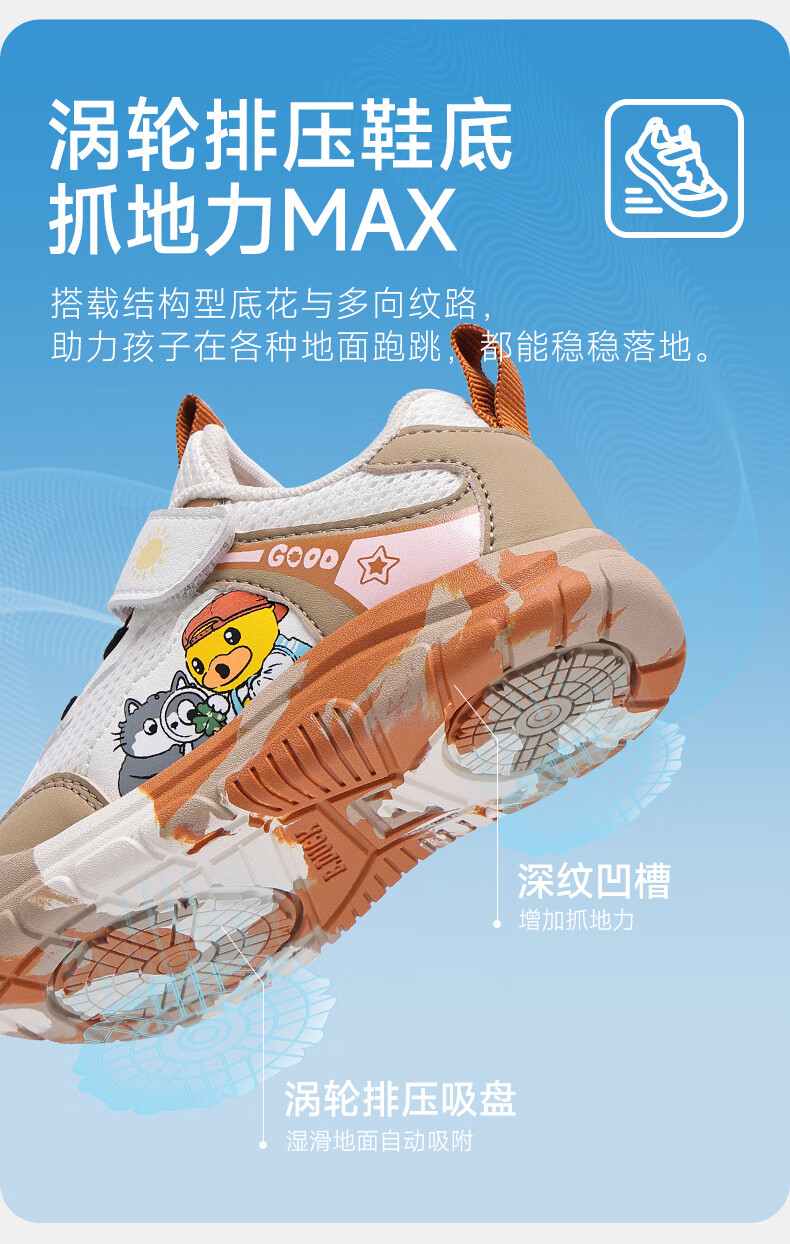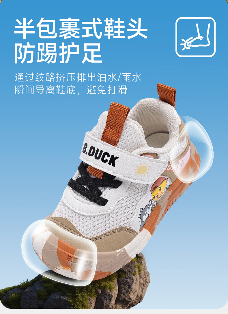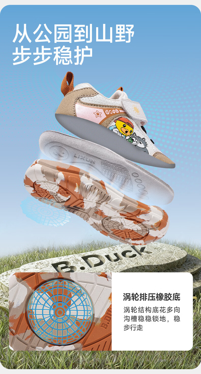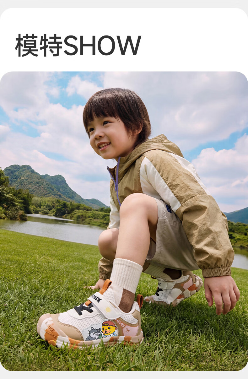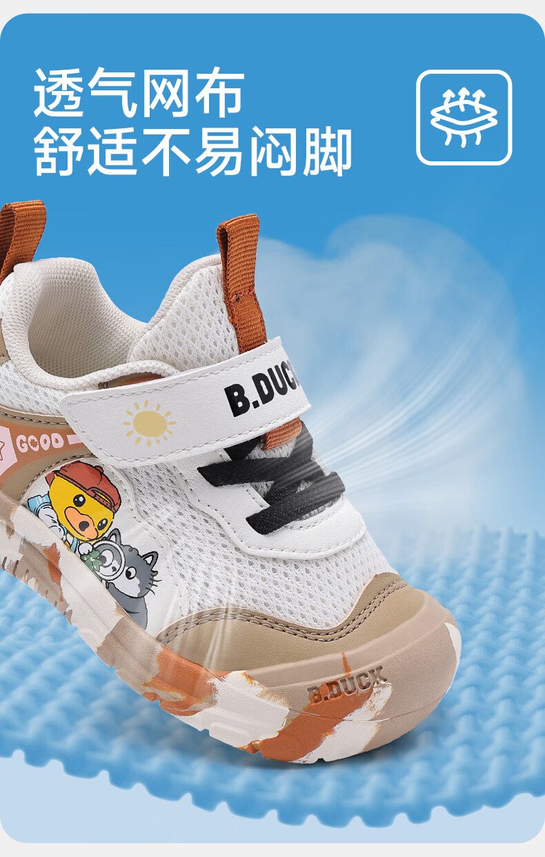 B.Duck Little Yellow Duck Children's Shoes 2026 Spring New Children's Baotou Soft Sole Breathable Children's Shoes Functional Boys' Shoes Rice/Camel Size 24 Foot Length 14.4-14.9cm