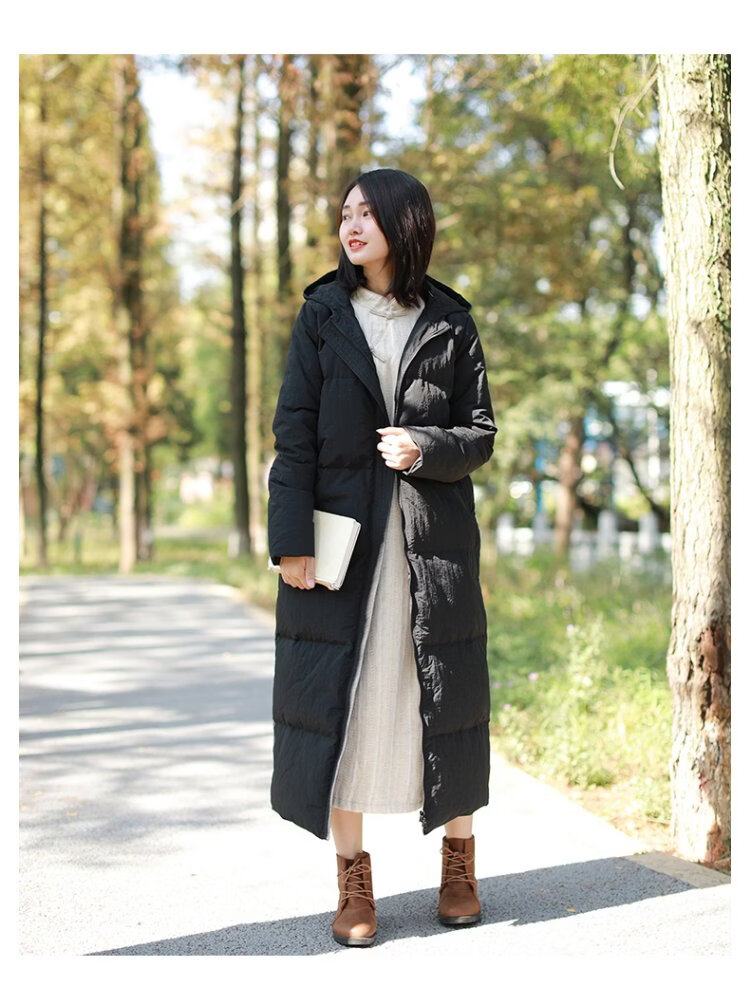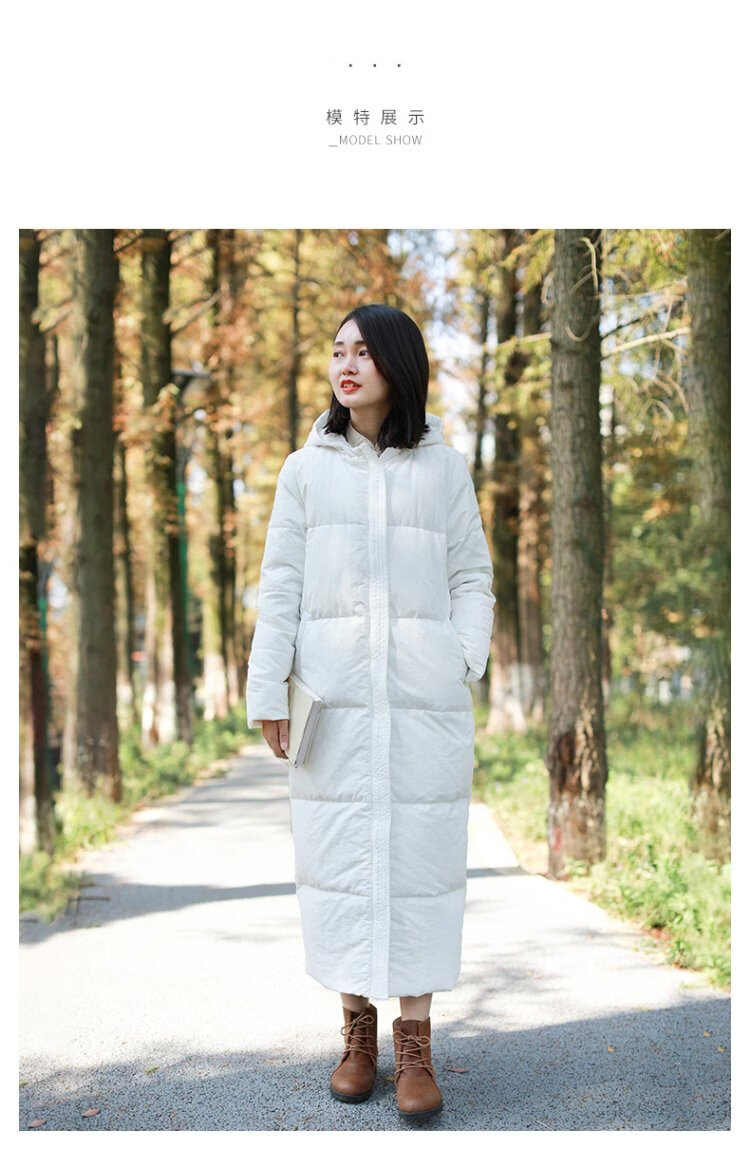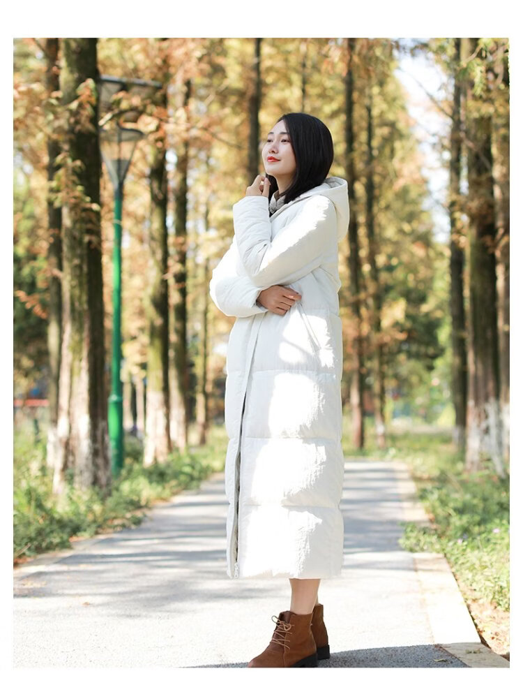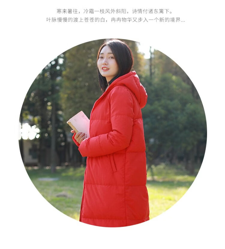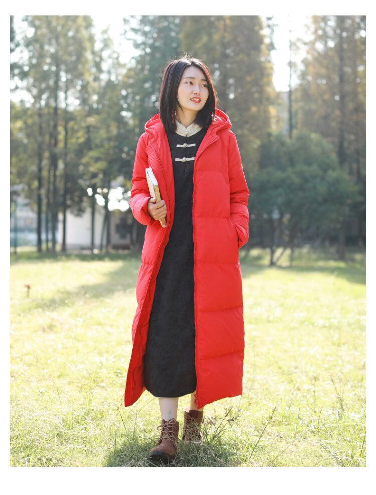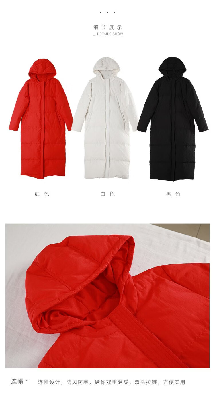 Chaos Jiangnan Solid Color Down Jacket Over Knee Long Winter New Women's White Duck Down Comfortable Warm Hooded Casual Jacket Red M