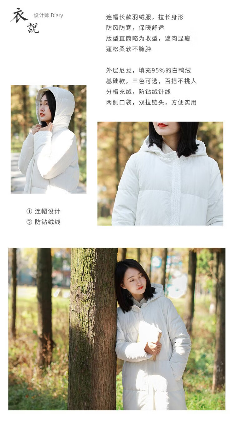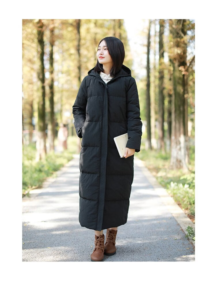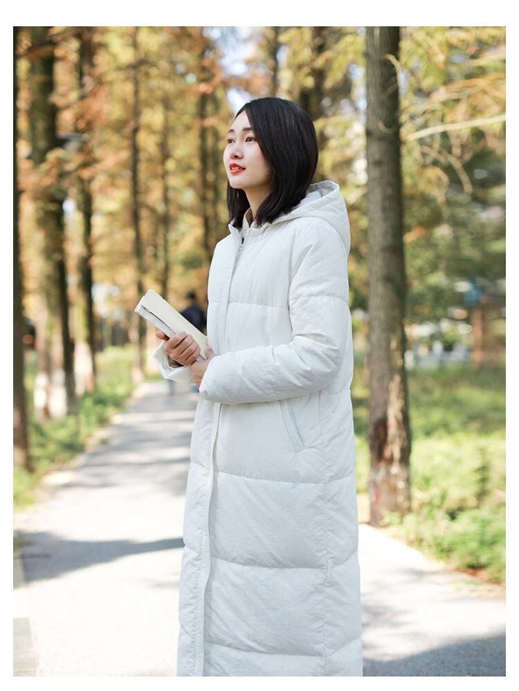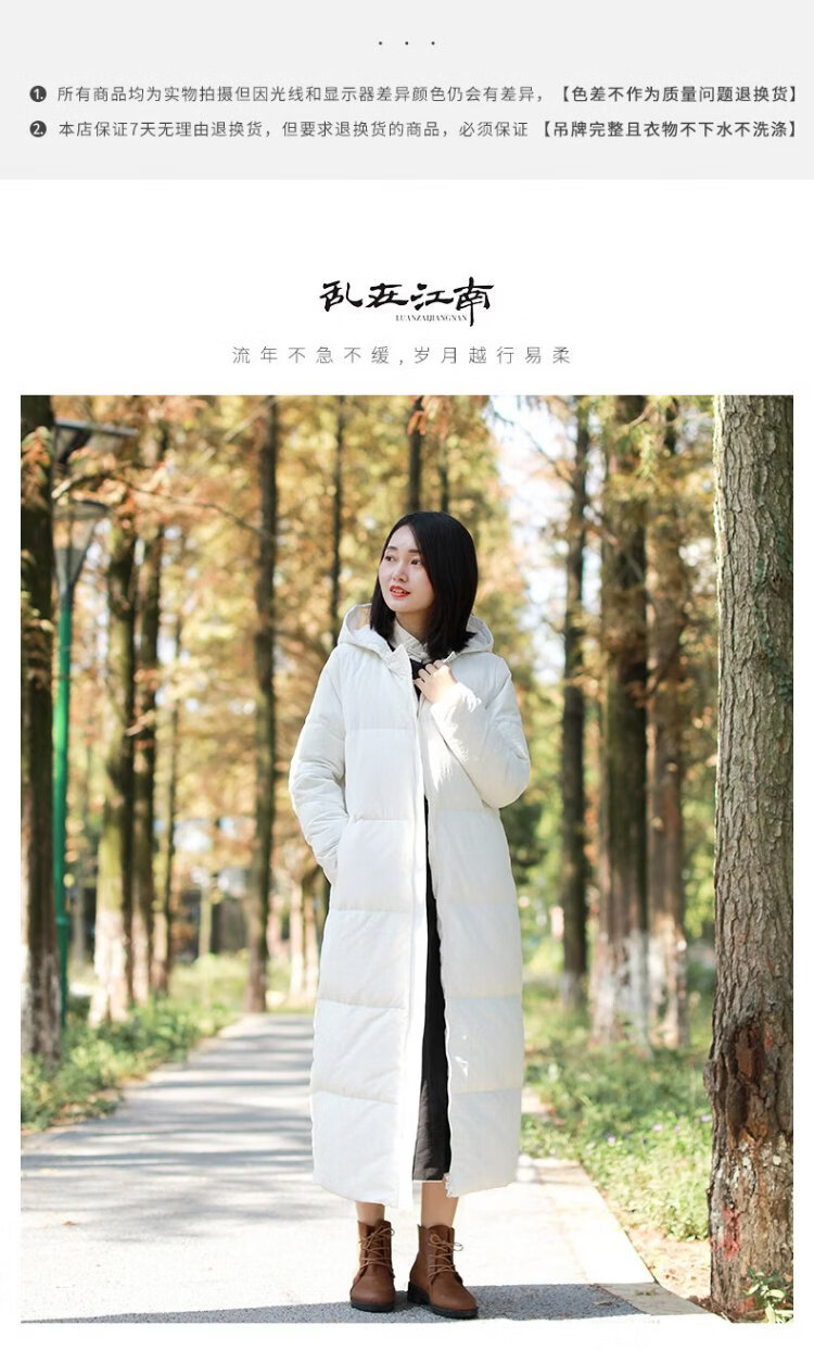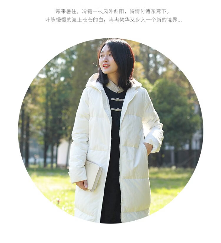Chaos Jiangnan Solid Color Down Jacket Over Knee Long Winter New Women's White Duck Down Comfortable Warm Hooded Casual Jacket Red M