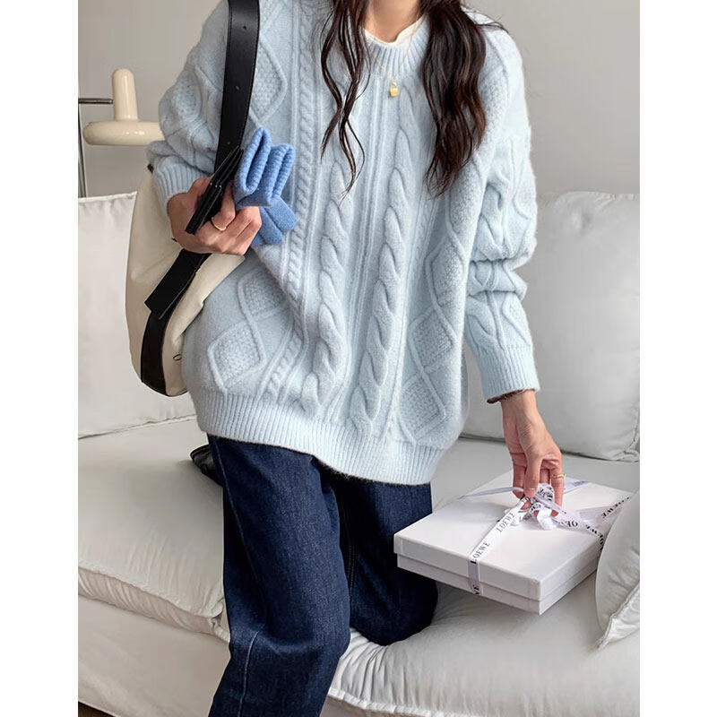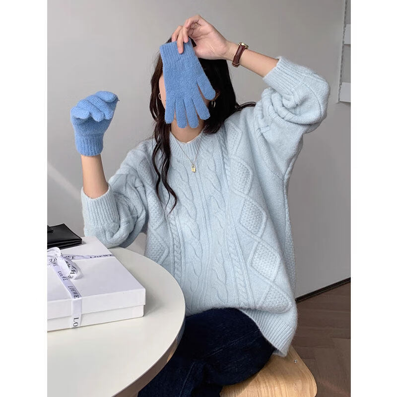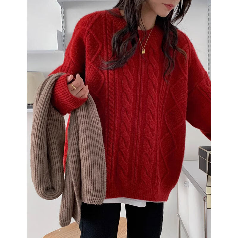 Woodpecker (TUCANO) Red Sweater Women's 2025 Winter New Pullover Loose Outerwear Knitted Sweater Lazy Style Thickened Soft Waxy Twist Top Red M 90-105Jin Jin equals 0.5kg Wear