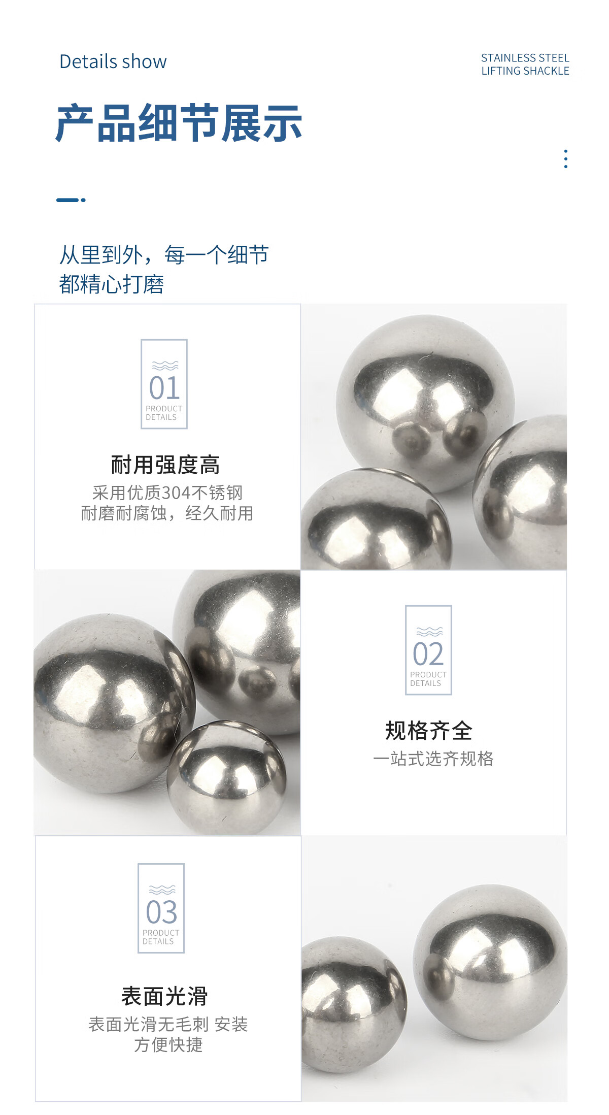 GUWANJI 304 stainless steel shaft solid steel ball bearing steel ball ball round wave ball 0.5-6-8-9-30-60mm 6.5mm 200 pieces high precision