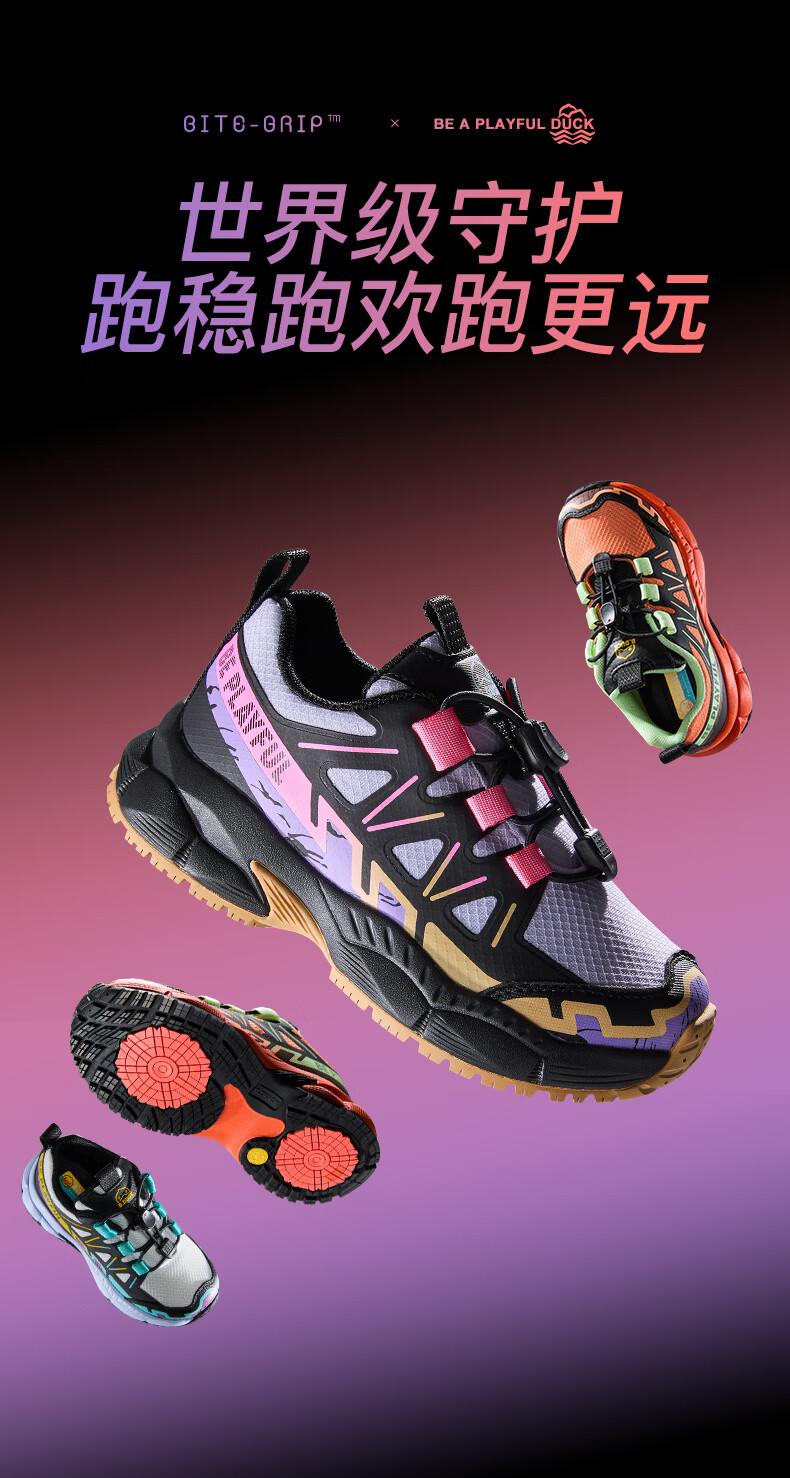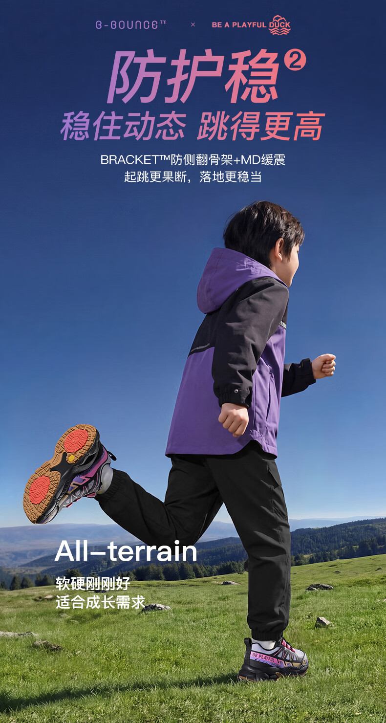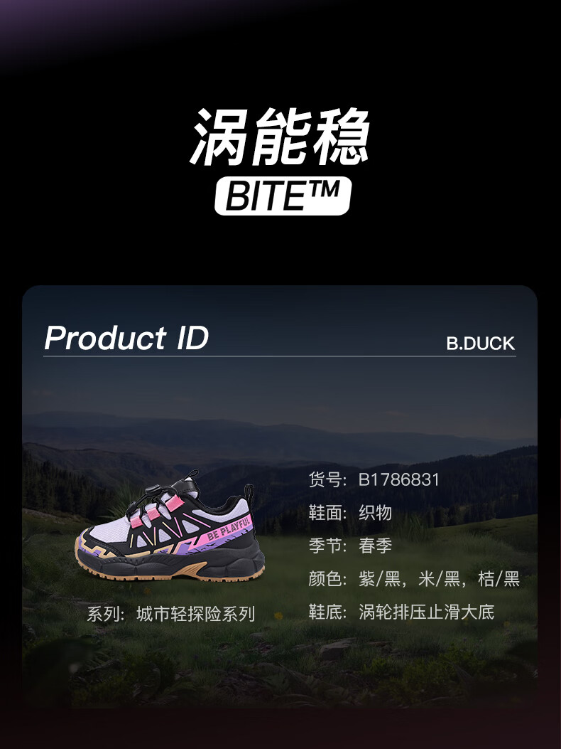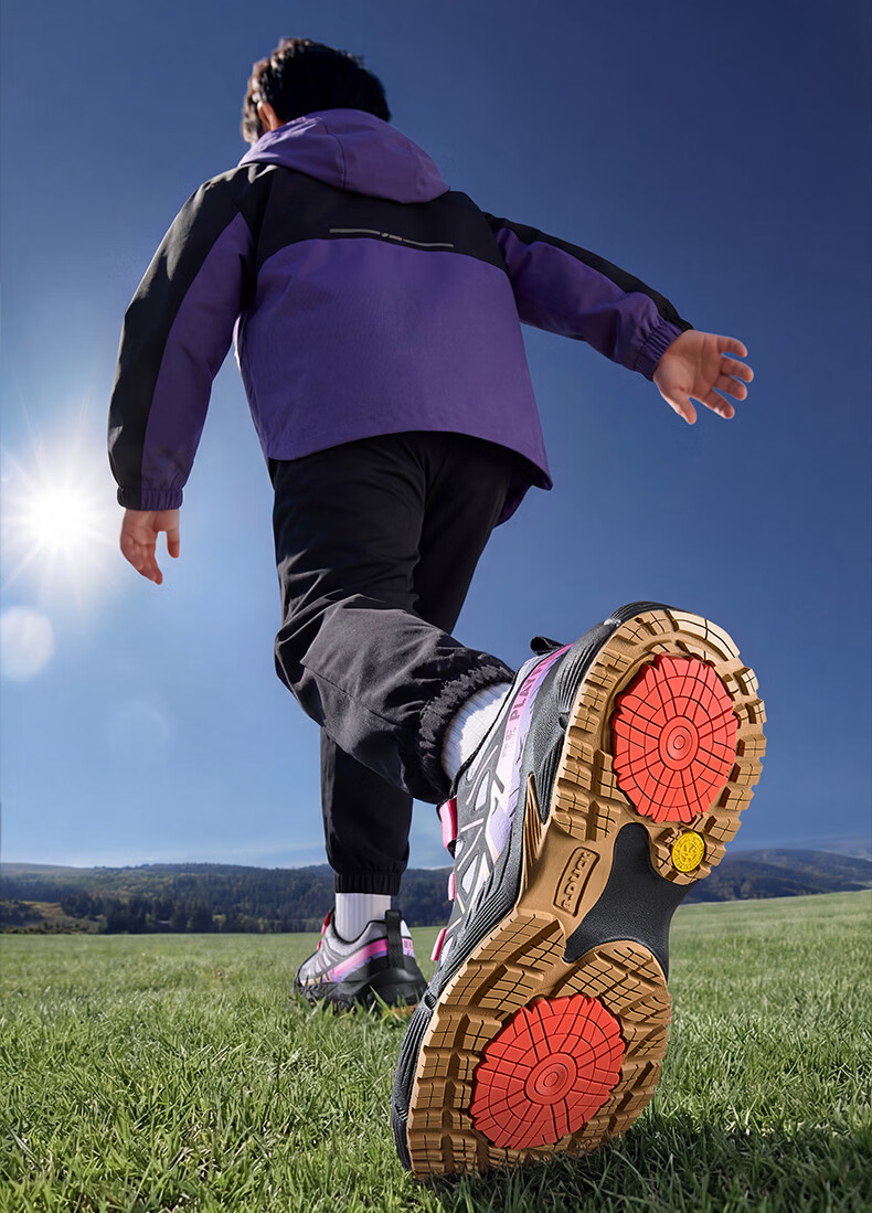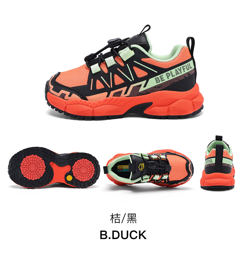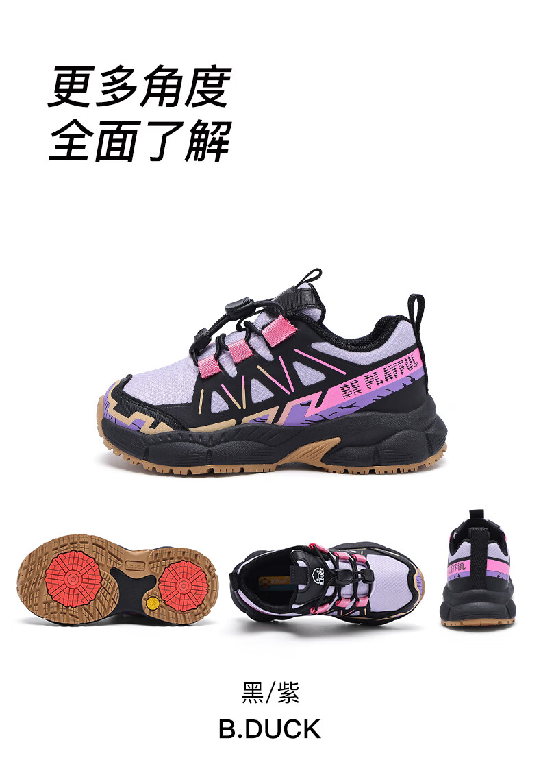 B.Duck Little Yellow Duck Children's Shoes Anti-Slip Children's Light Sports Shoes 2026 Spring New Outdoor Breathable Boys' Hiking Shoes Trendy Purple/Black Size 28 Foot Length 17.0-17.5cm