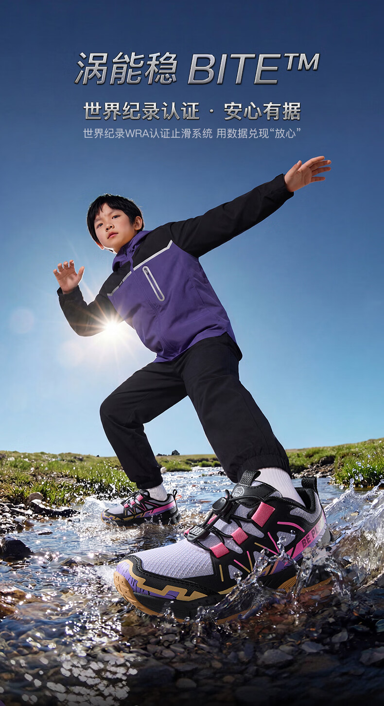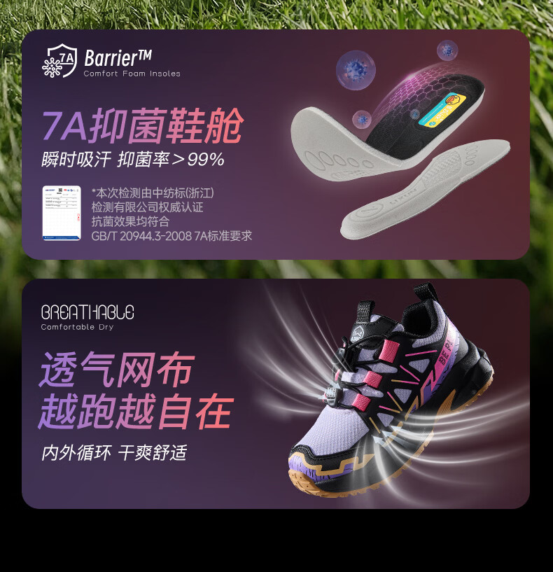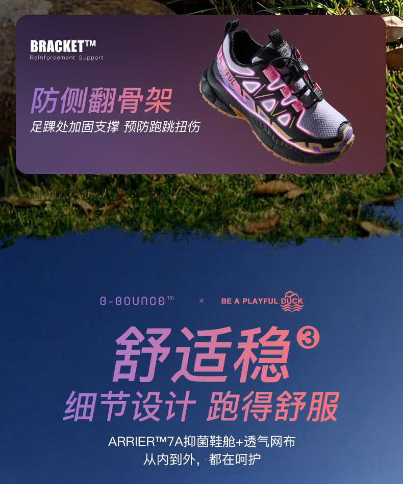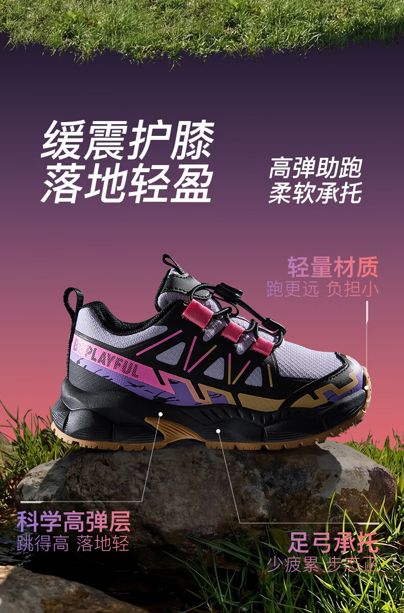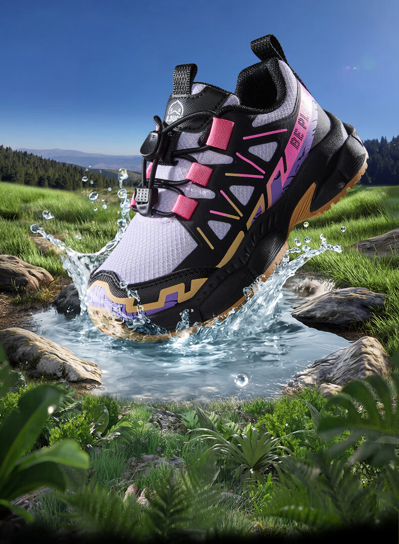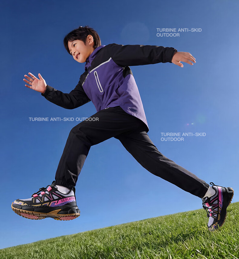 B.Duck Little Yellow Duck Children's Shoes Anti-Slip Children's Light Sports Shoes 2026 Spring New Outdoor Breathable Boys' Hiking Shoes Trendy Purple/Black Size 28 Foot Length 17.0-17.5cm