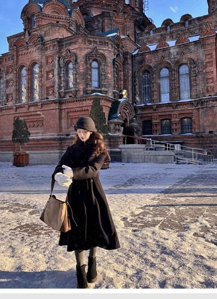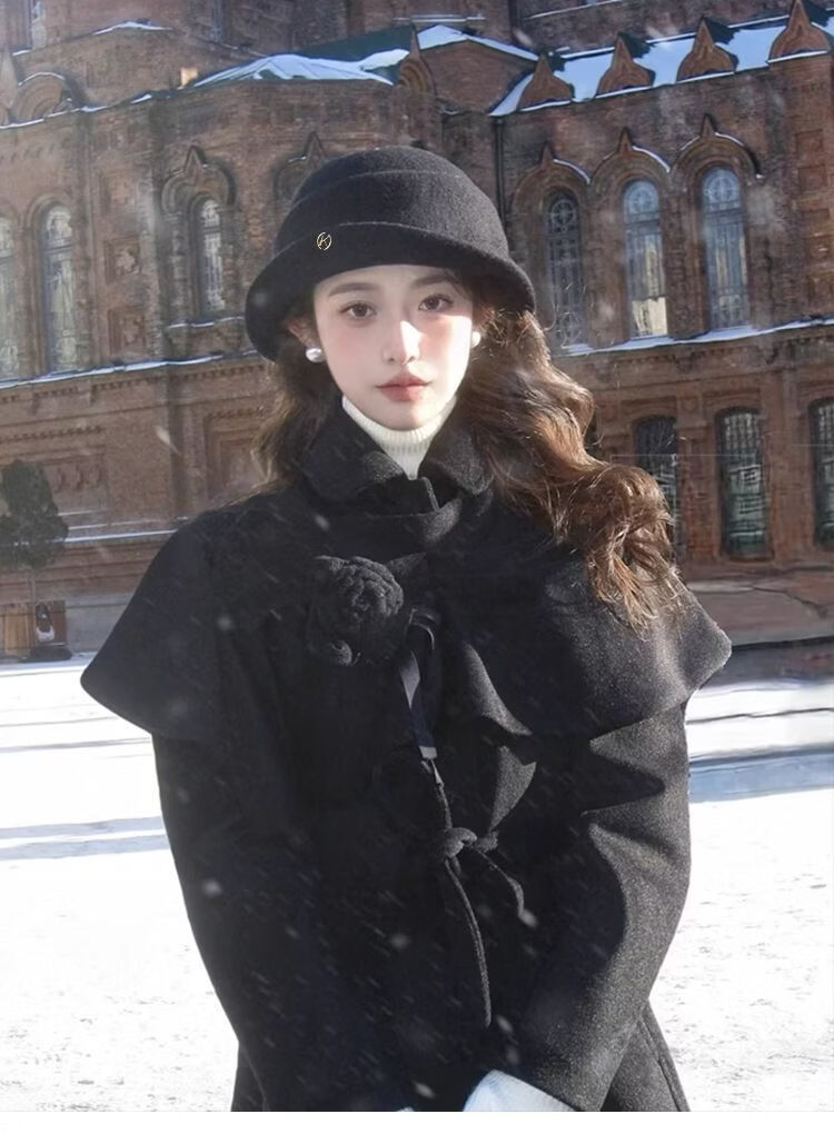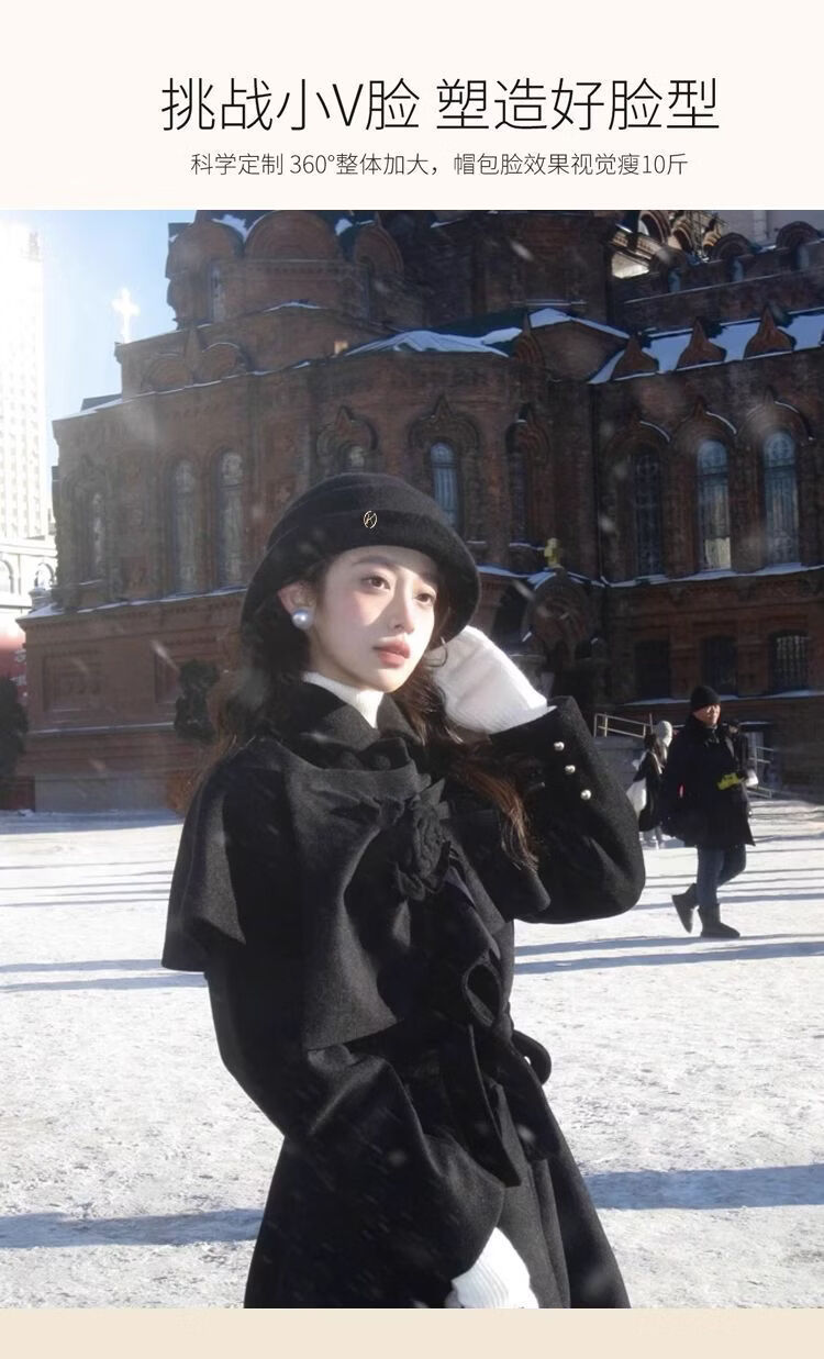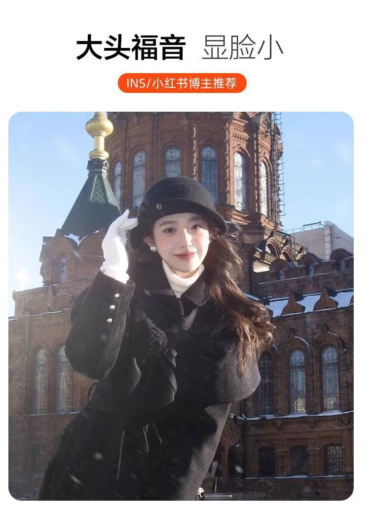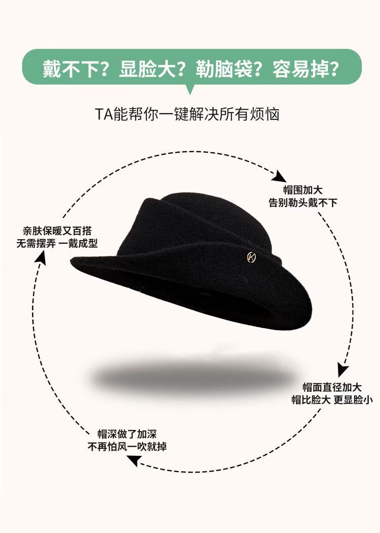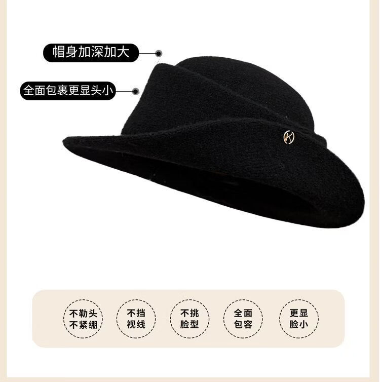 U&MUDI French Hepburn style elegant black top hat women's autumn and winter retro face-showing small curled woolen hat fisherman hat black
