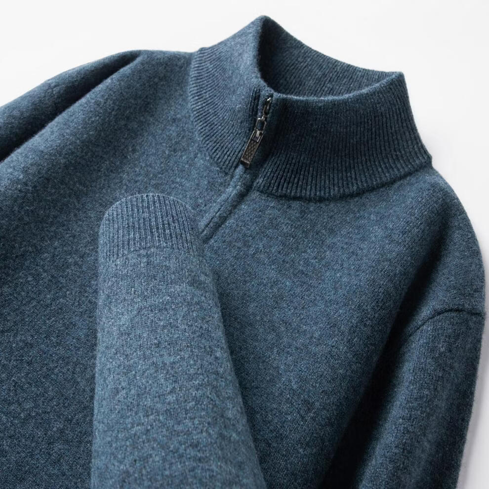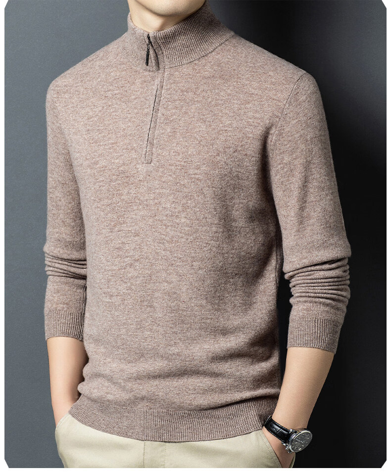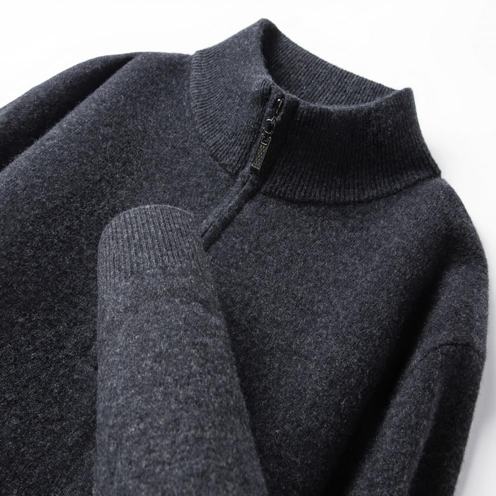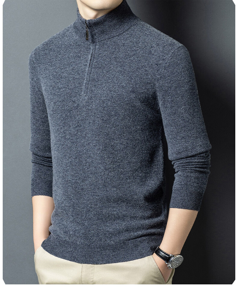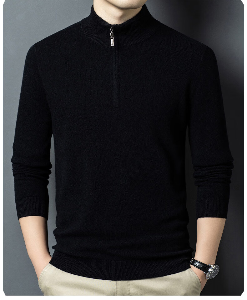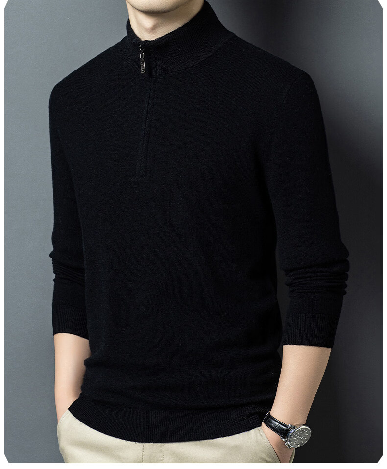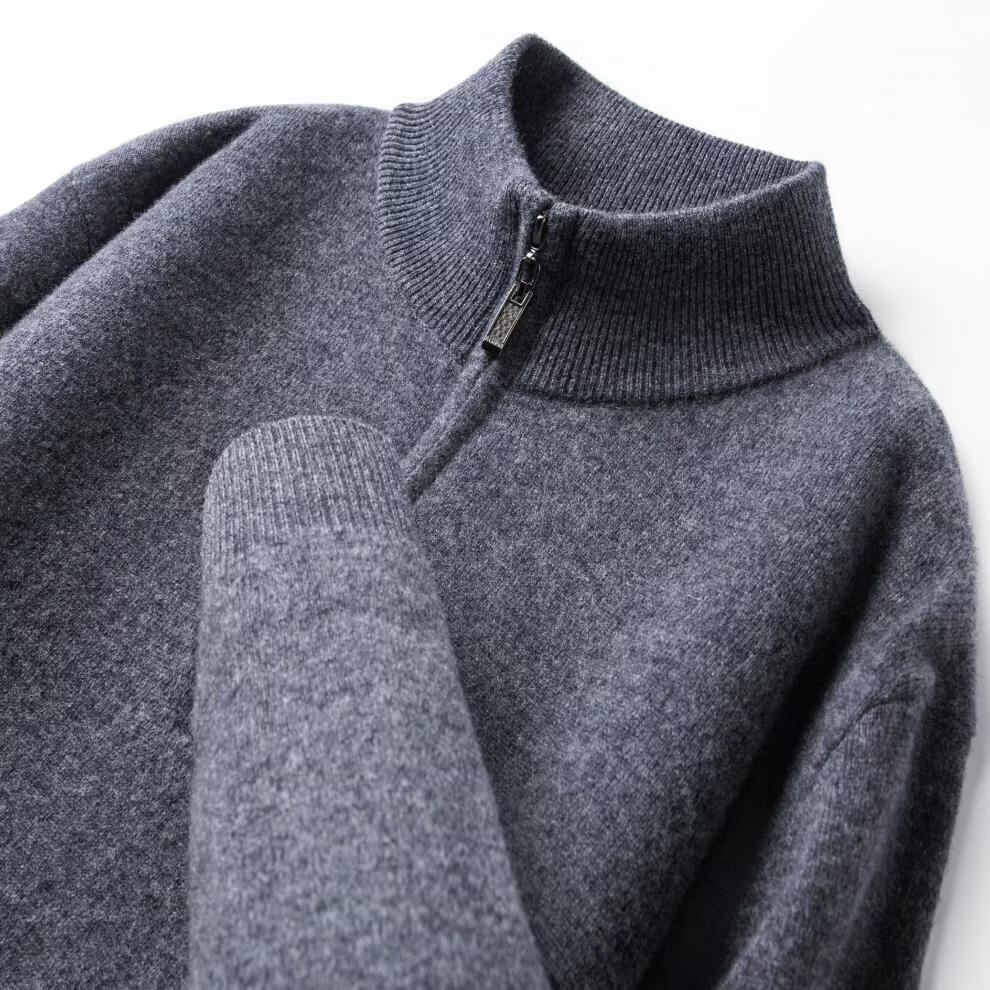LILANZ high-end 100 cashmere men's half turtleneck zipper stand collar solid color thickened sweater pullover knitted woolen sweater for men carbon gray M 170 recommended 120-140Jin Jin equals 0.5 kg
