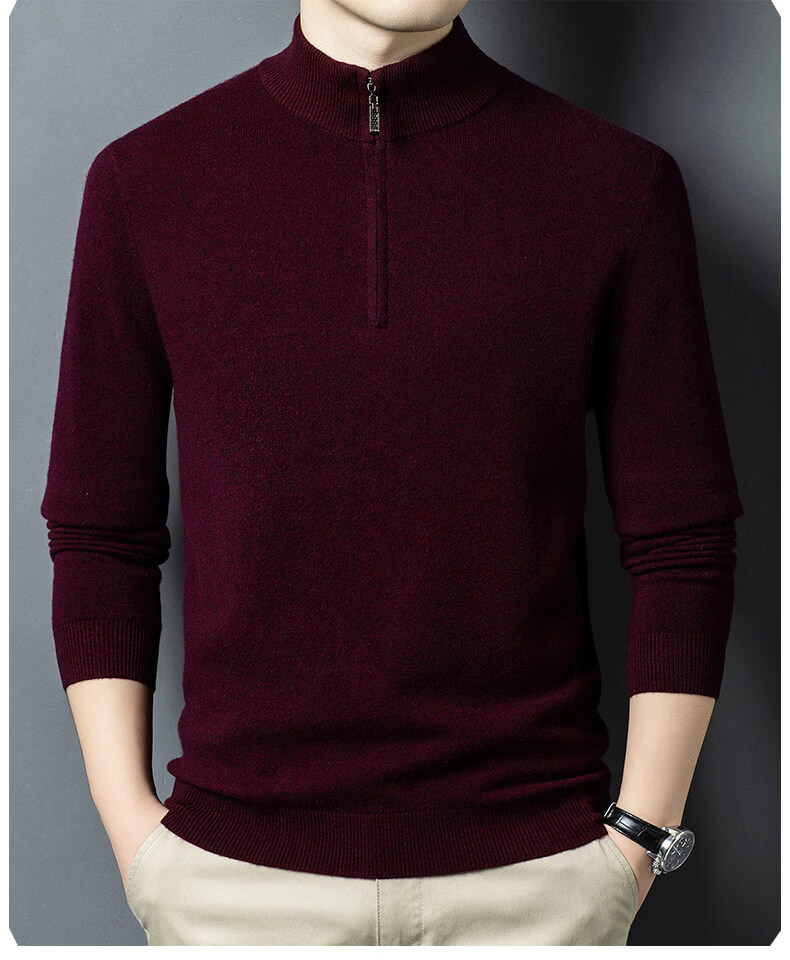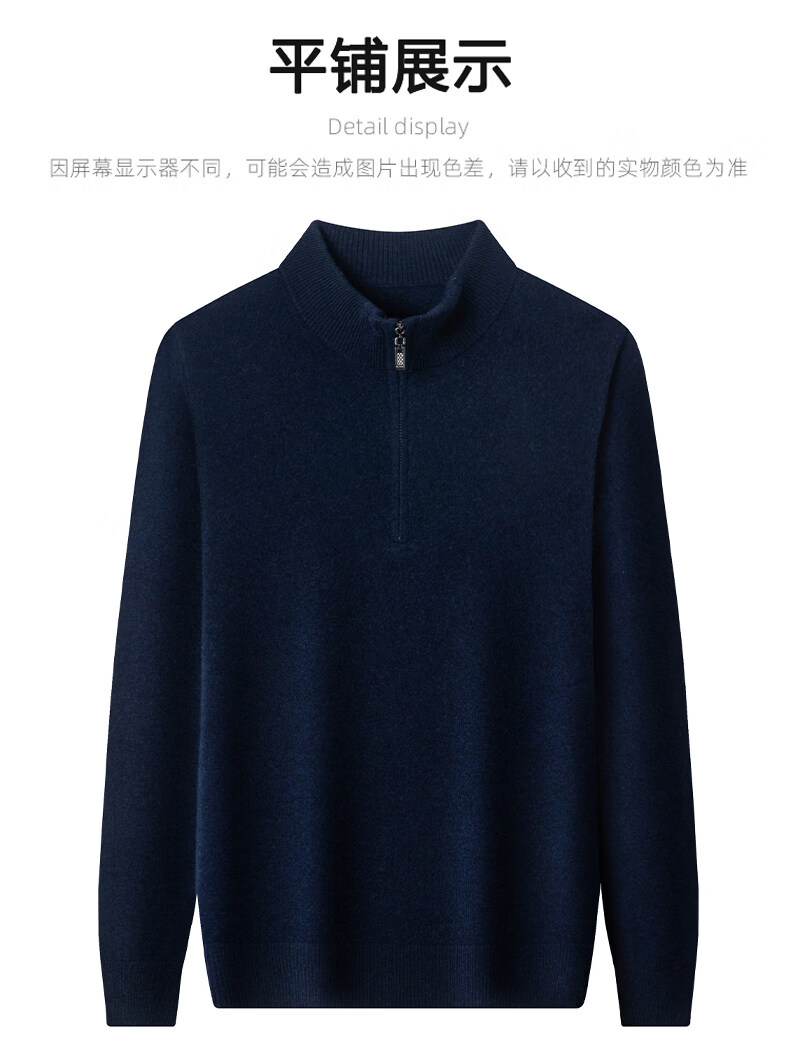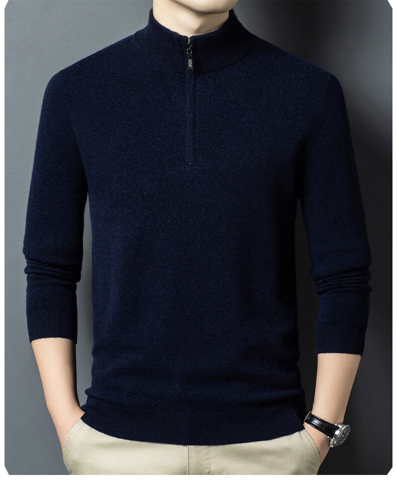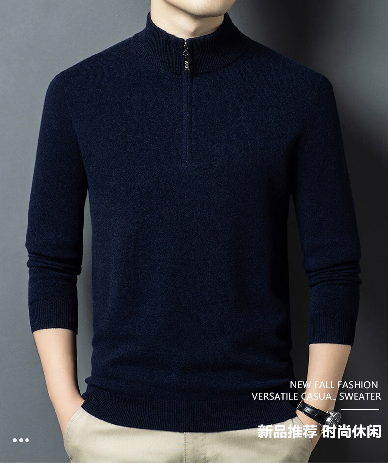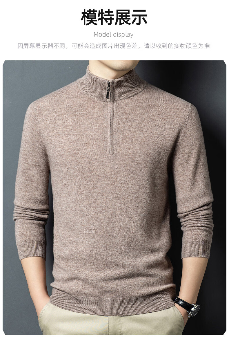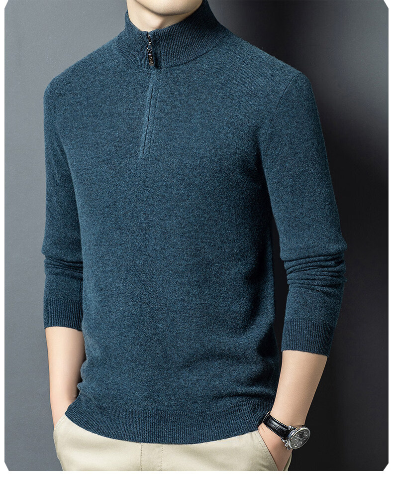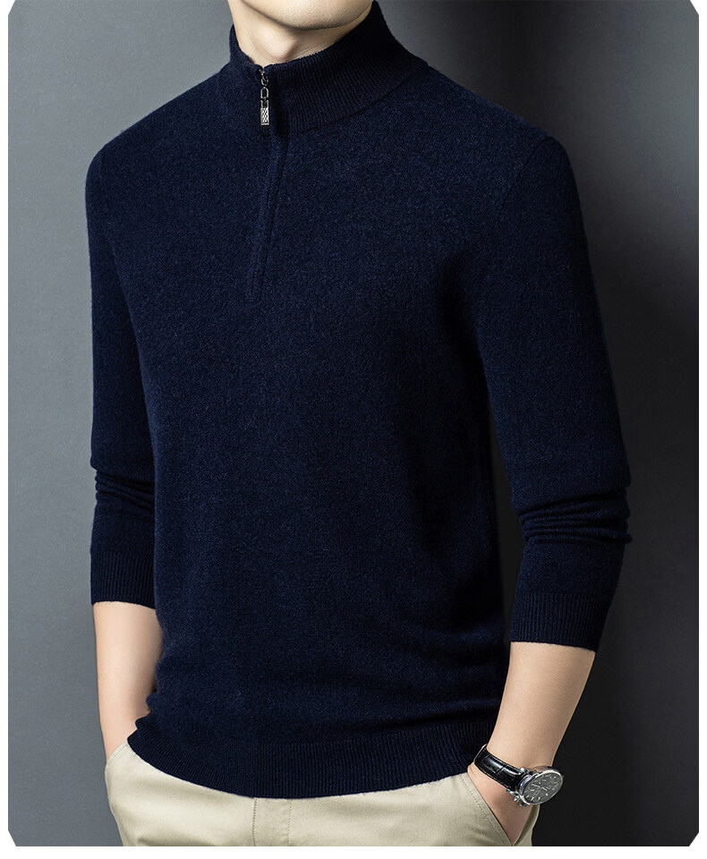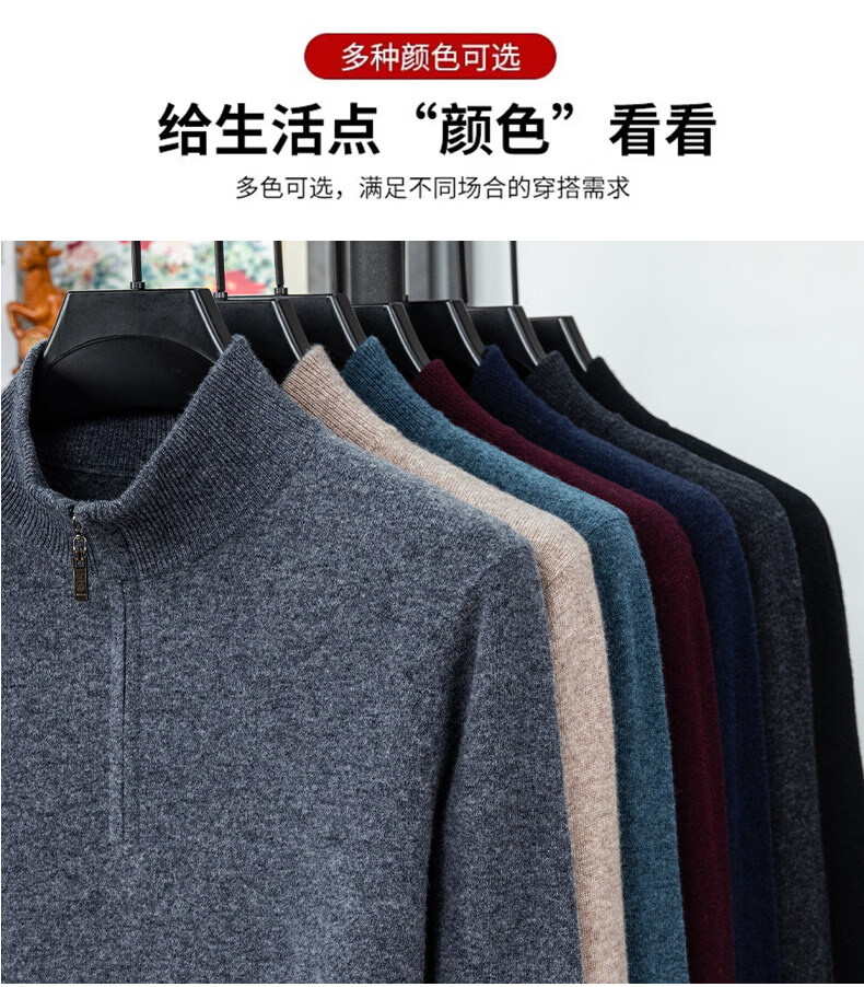LILANZ high-end 100 cashmere men's half turtleneck zipper stand collar solid color thickened sweater pullover knitted woolen sweater for men carbon gray M 170 recommended 120-140Jin Jin equals 0.5 kg