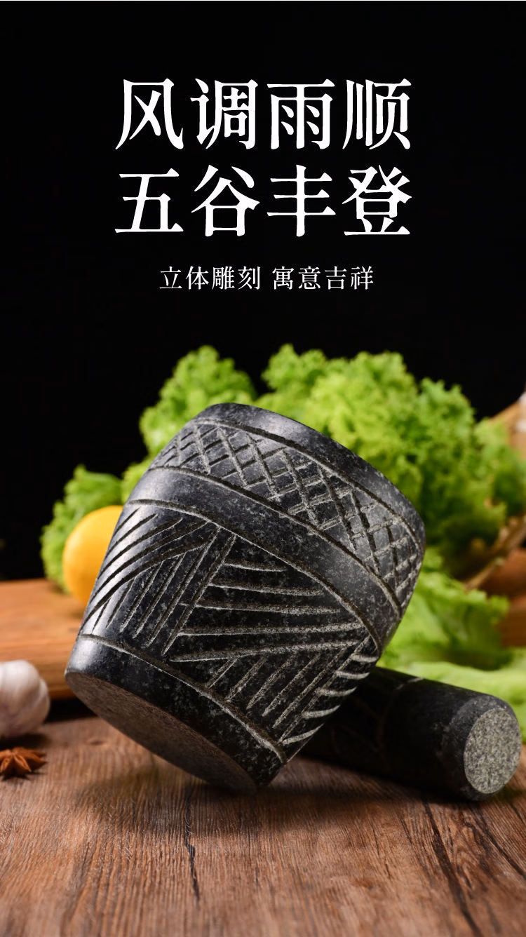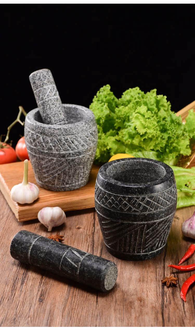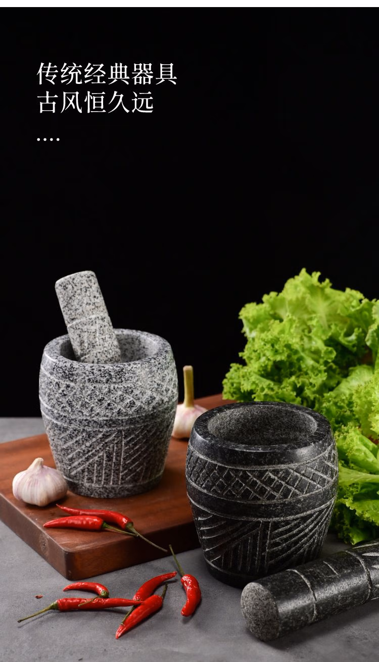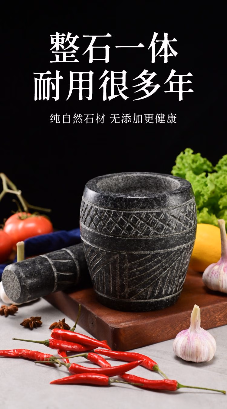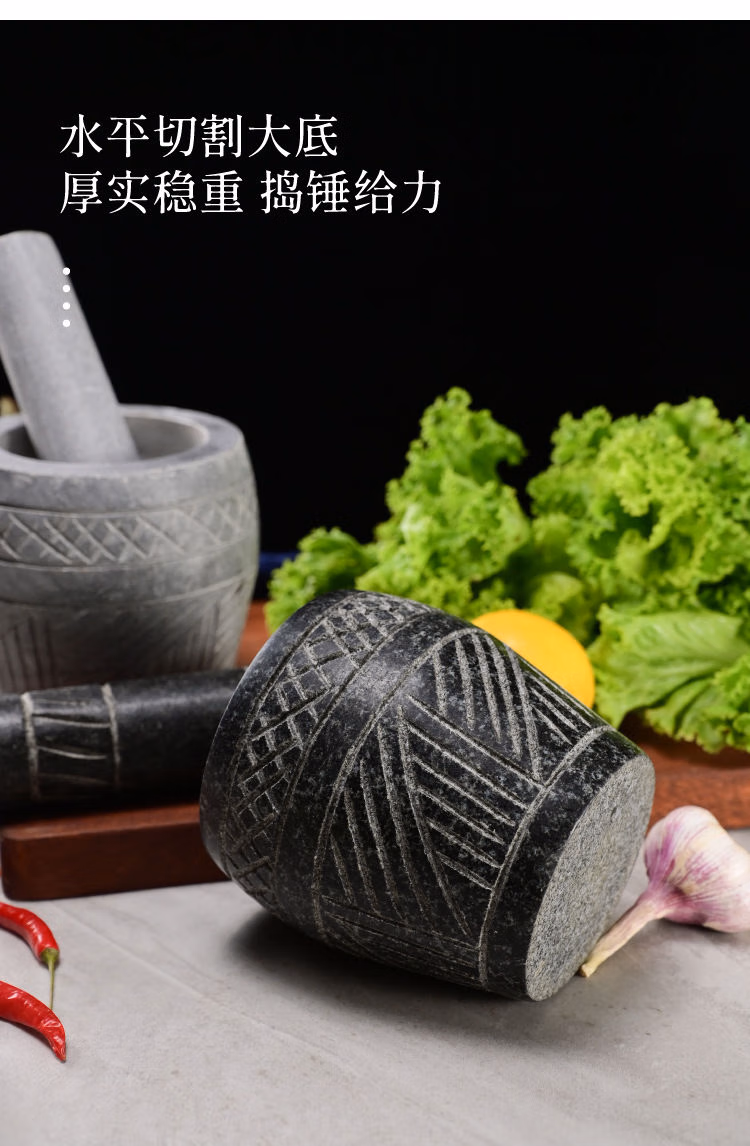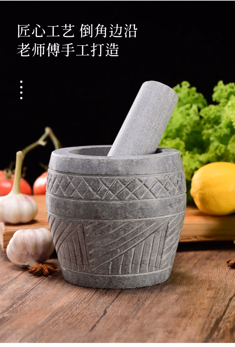 He Jiagong's handmade natural garlic pounder stone mortar household garlic mortar pound medicine jar hand-cut whole stone grinding peeling garlic press garlic grinder handmade bluestone special stone mortar with lid