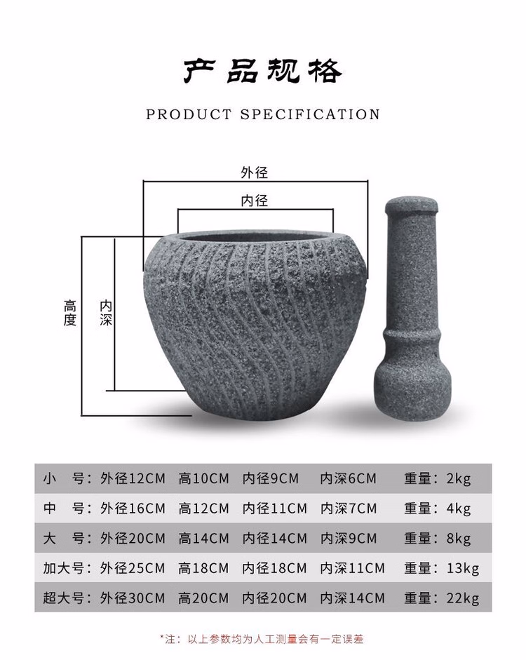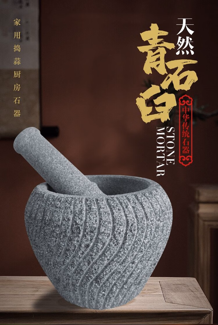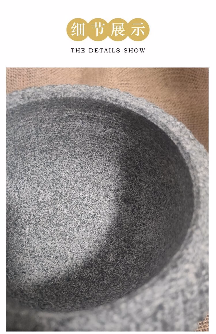 Garlic mortar old-fashioned stone retro bluestone stone mortar garlic pounder medicine jar stone cup household food supplement grinder outer diameter 16CM with hammer
