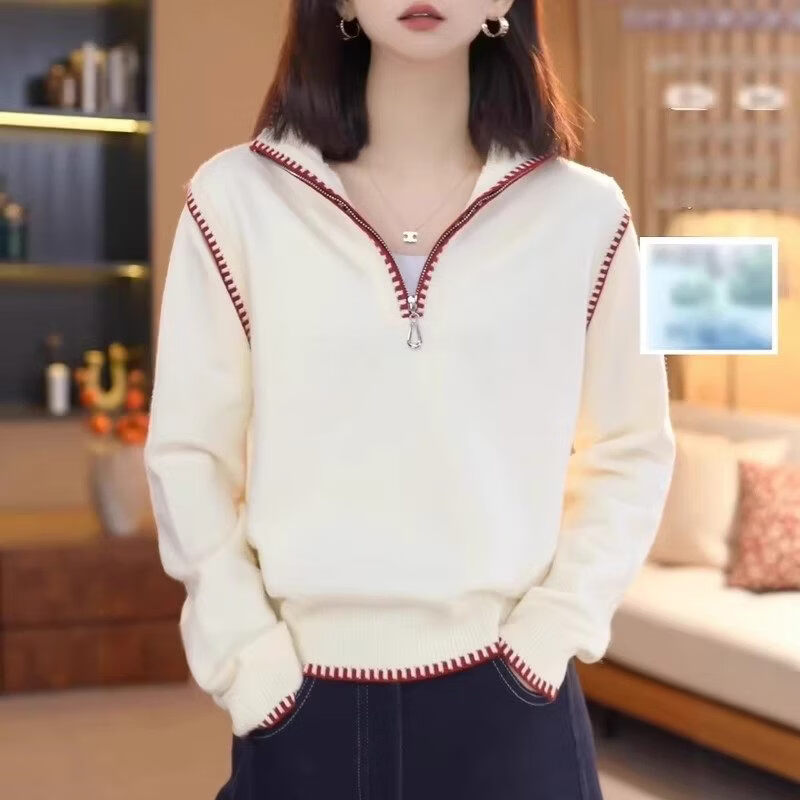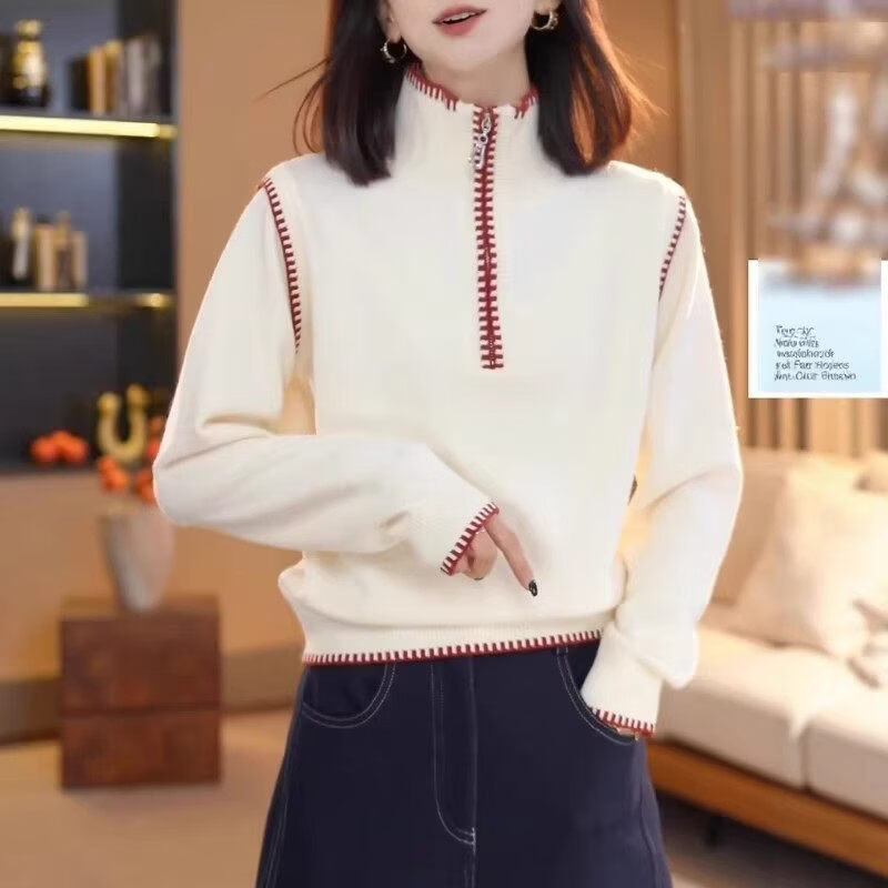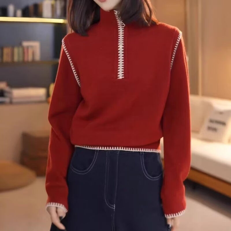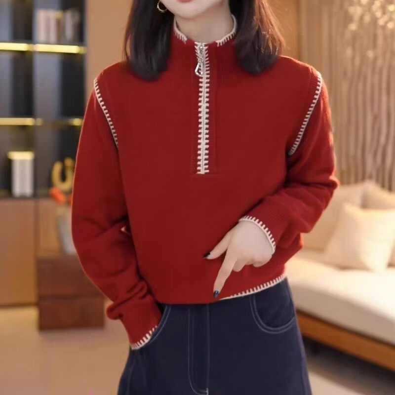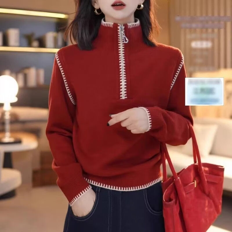 Xia Dian Suding Queen (SE.PSTP) New Year Red Half-Zip Stand-up Collar Sweater Women's Spring Autumn and Winter Large Size Fat mm Thickened Sweater New Year's Bottoming Top Apricot White M Recommended 90-100 Jin Jin is equal to 0.5 kg