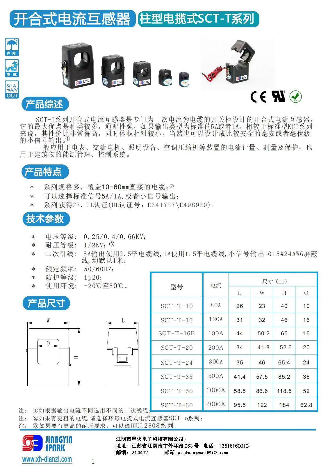 Secondary open current transformer Open and close inductor XH-SCT-T10A 1000 1 5A/5mA