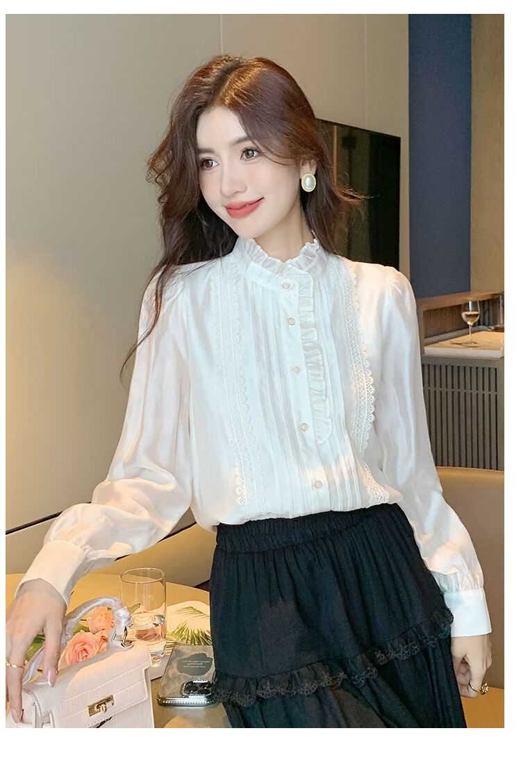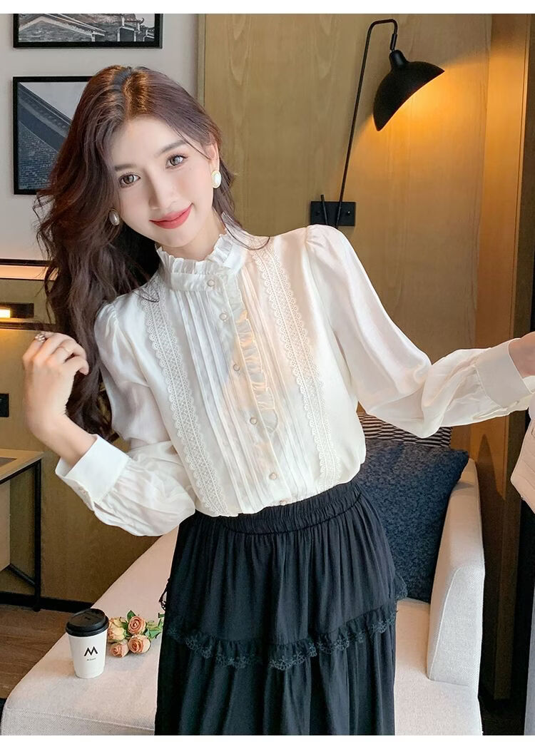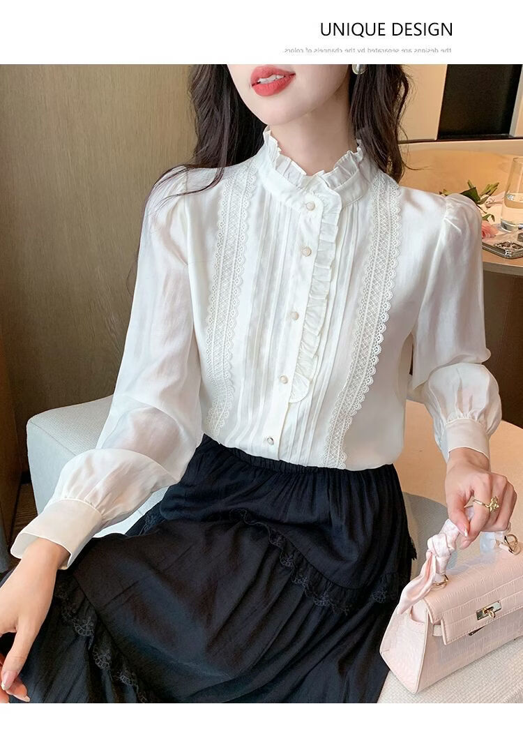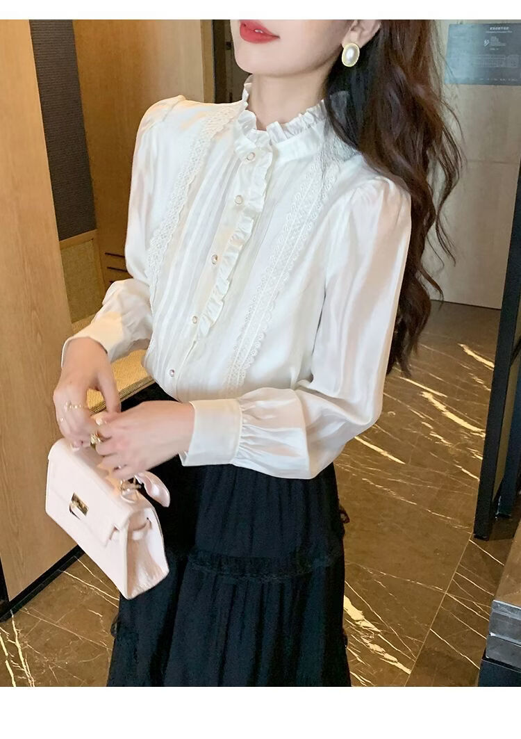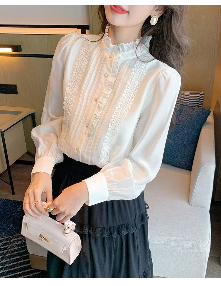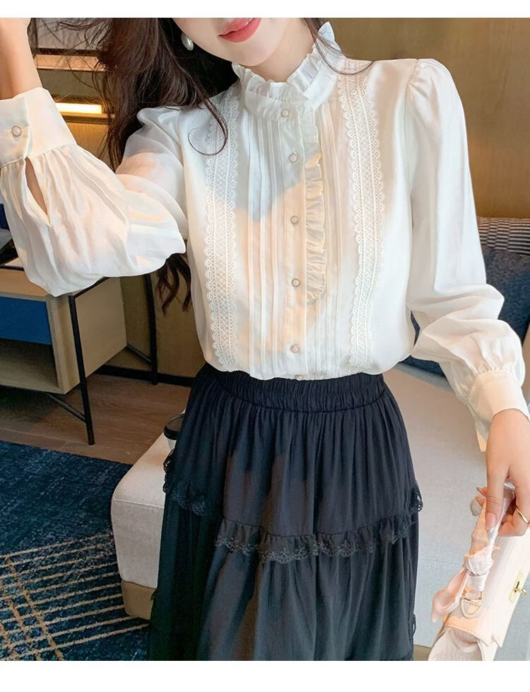 Playboy (PLAYBOY) French-style fungus-edged long-sleeved chiffon shirt for women 2026 autumn new chic age-reducing temperament top official flagship white S