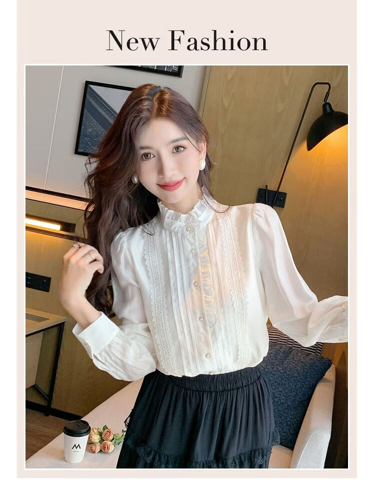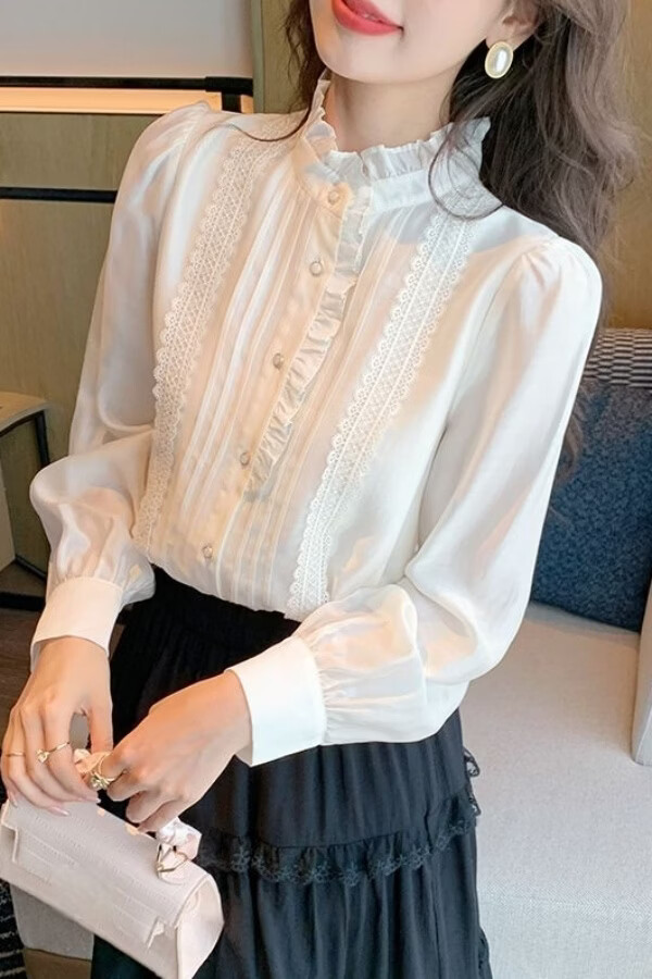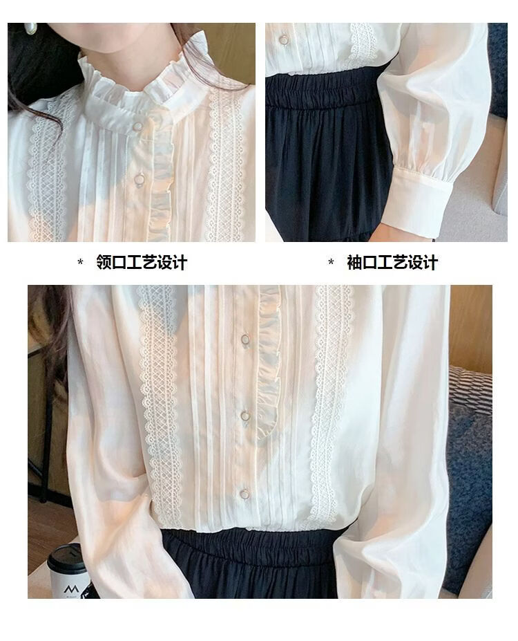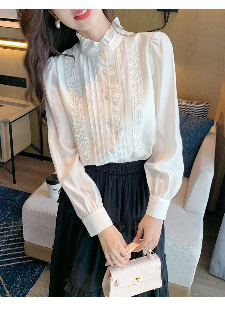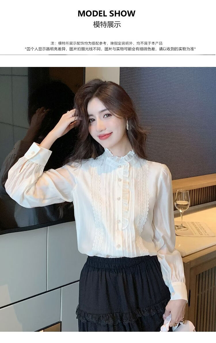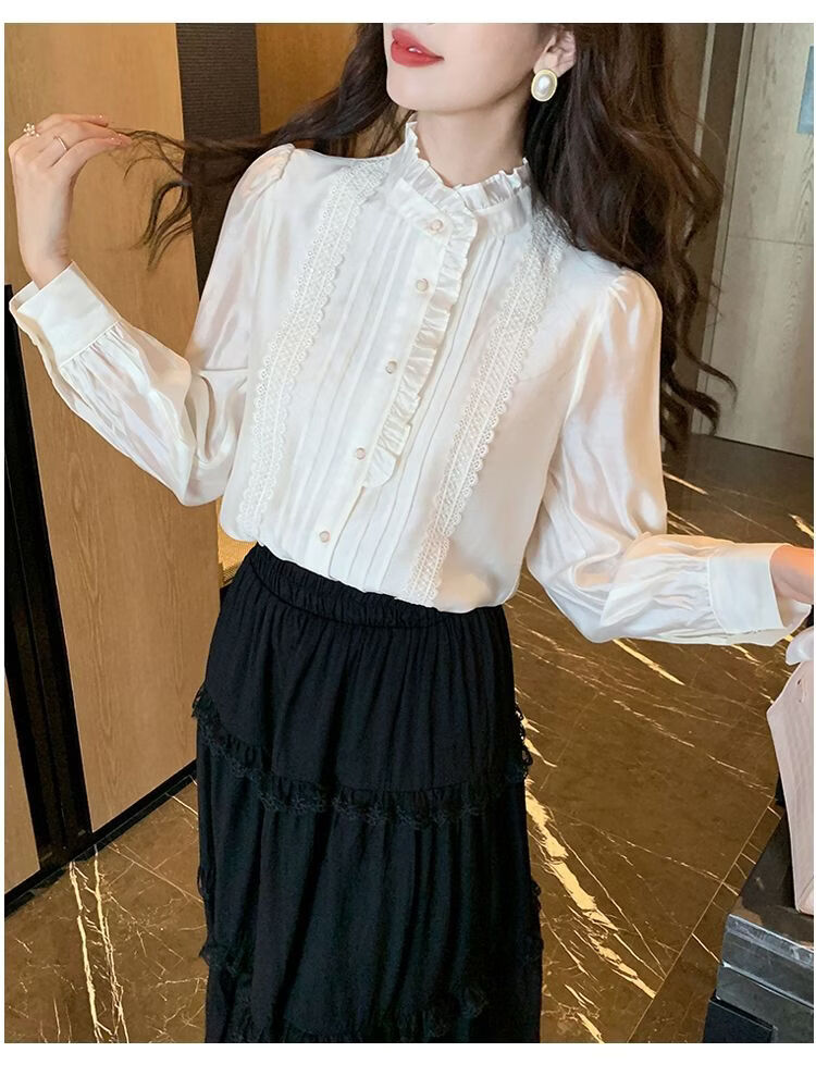 Playboy (PLAYBOY) French-style fungus-edged long-sleeved chiffon shirt for women 2026 autumn new chic age-reducing temperament top official flagship white S