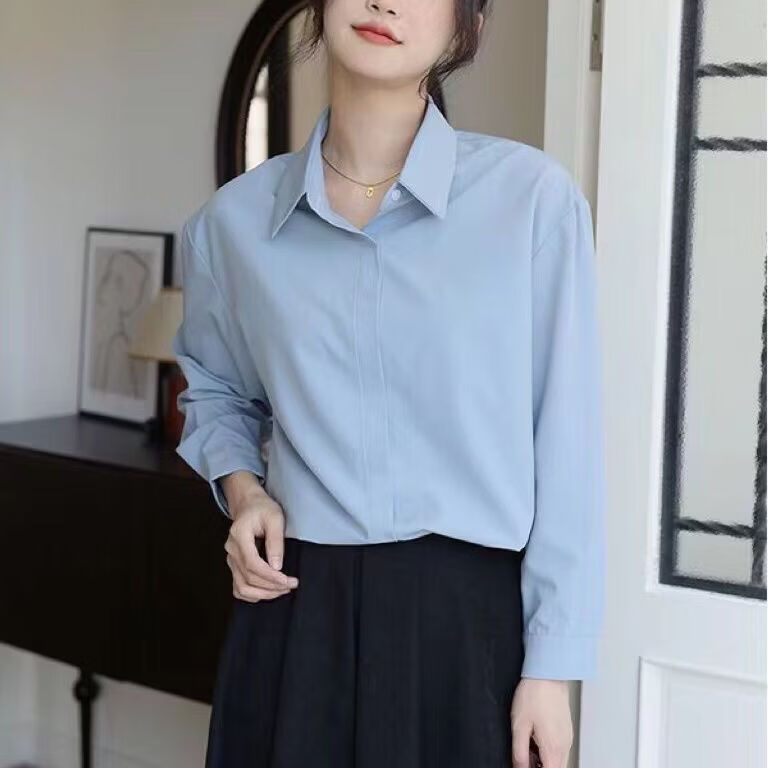 Playboy (PLAYBOY) chiffon shirt for women early autumn 2026 slim fashion design niche top loose layered white shirt base shirt official flagship black long sleeves hidden buttons to prevent exposure hidden buttons encryption 6688# L recommended 90-100Jin Jin equals 0.5 kg