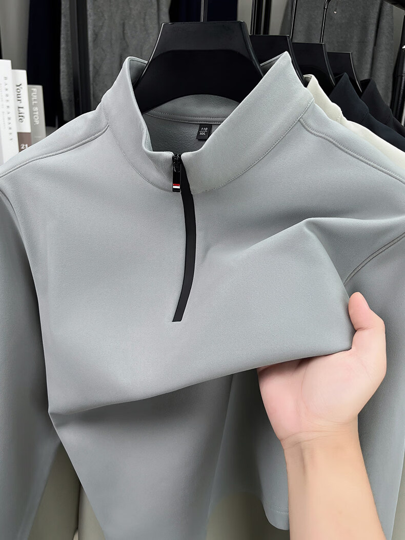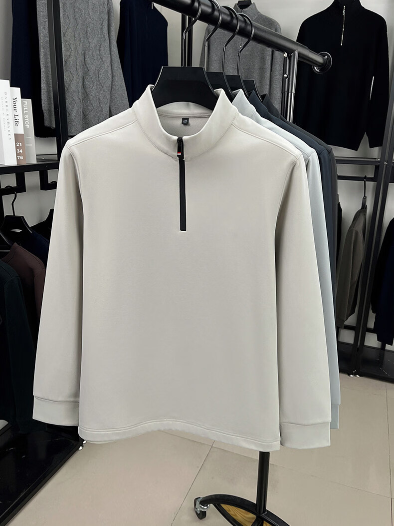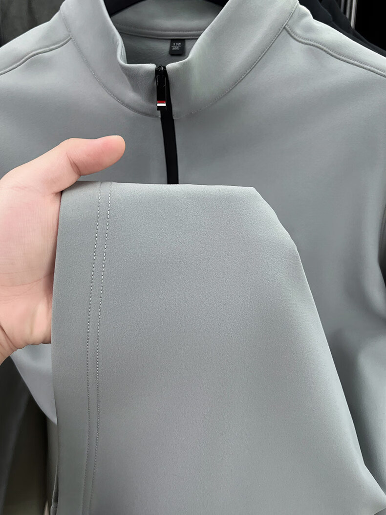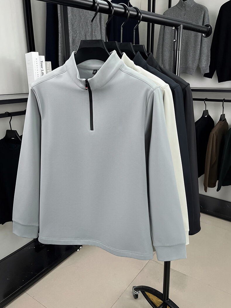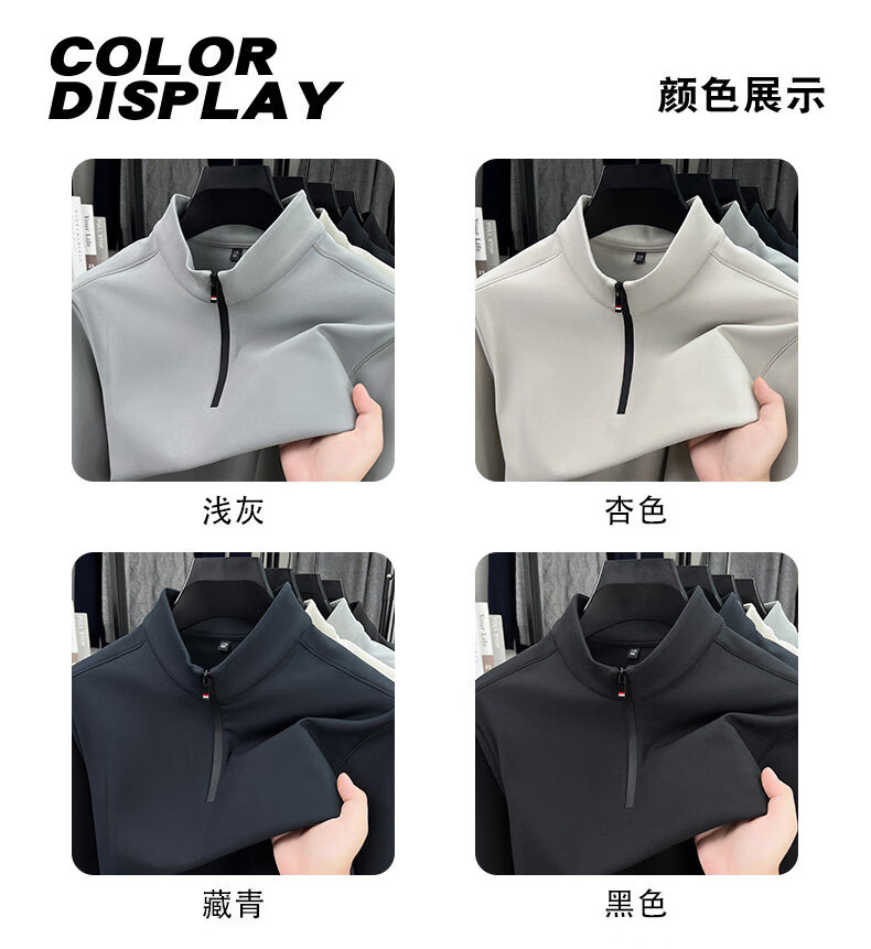 CABIN KATHY Light luxury high-end men's half-zip long-sleeved sweatshirt spring and autumn new solid color stand-up collar business casual bottoming t-shirt 256362-light gray M recommended 100-120Jin Jin equals 0.5 kg gift box packaging