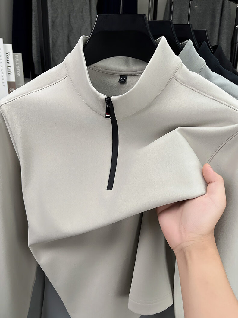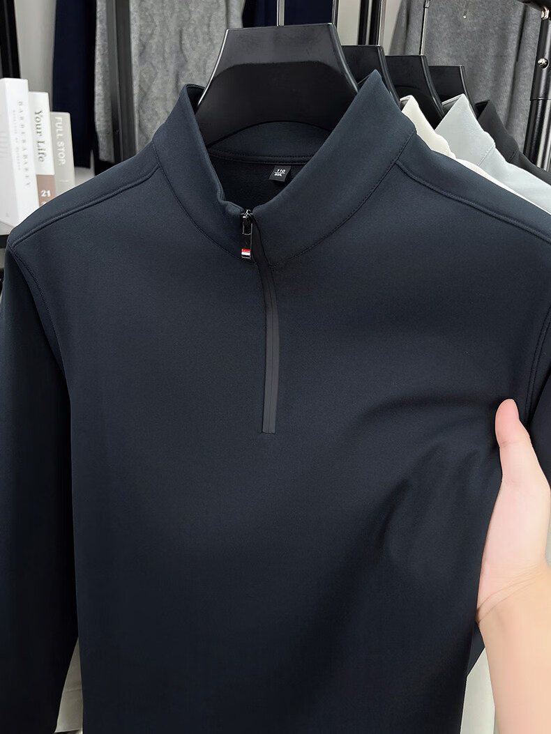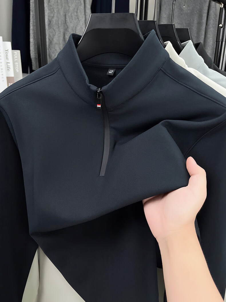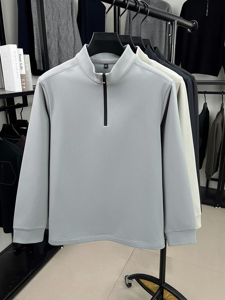 CABIN KATHY Light luxury high-end men's half-zip long-sleeved sweatshirt spring and autumn new solid color stand-up collar business casual bottoming t-shirt 256362-light gray M recommended 100-120Jin Jin equals 0.5 kg gift box packaging