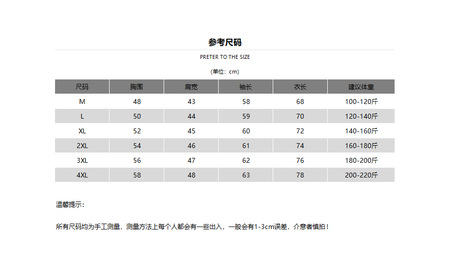 China (cm) 165 / 88-90 170 / 96-98 175 / 108-110 180 / 118-122 185 / 126-130
