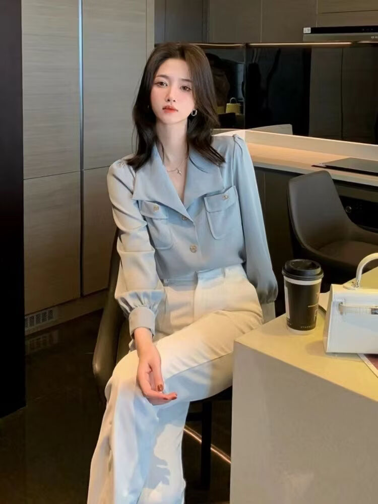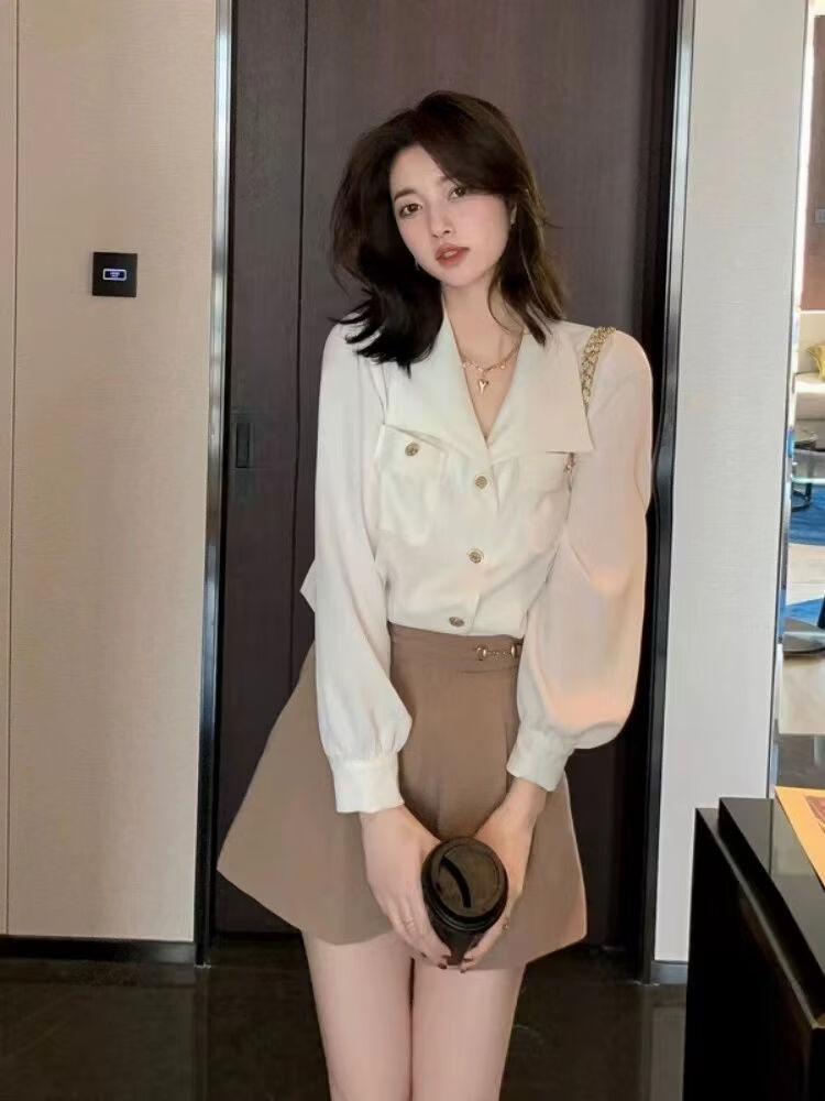 Playboy (PLAYBOY) 2026 French style shirt chiffon shirt new long-sleeved design niche autumn chic top official flagship off-white S 80-95Jin Jin equals 0.5 kg