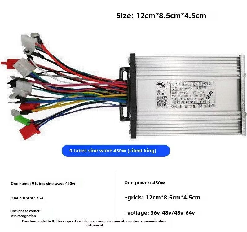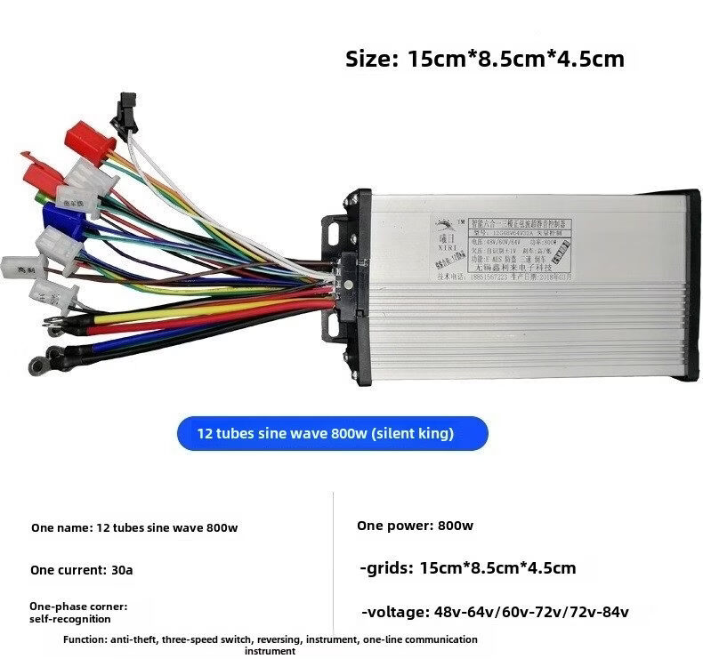 Electric vehicle controller 48V60V72V sine wave three-mode intelligent brushless two-wheel motor 12 tubes 36V-48V/30A500W three-mode sine wave
