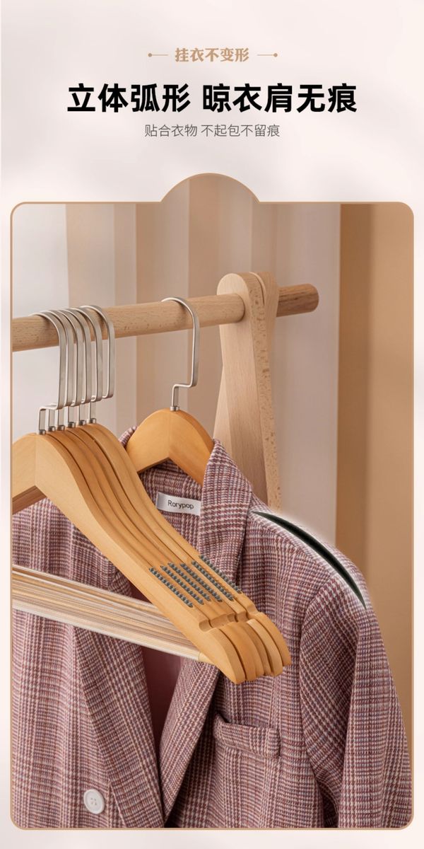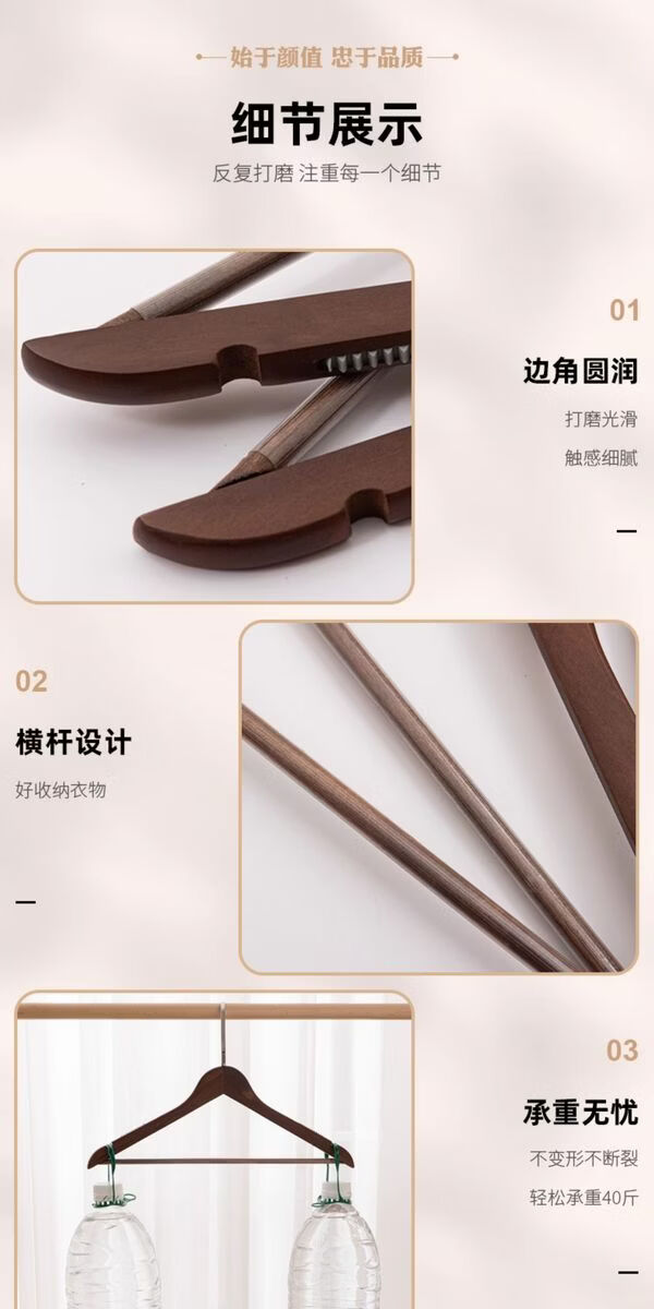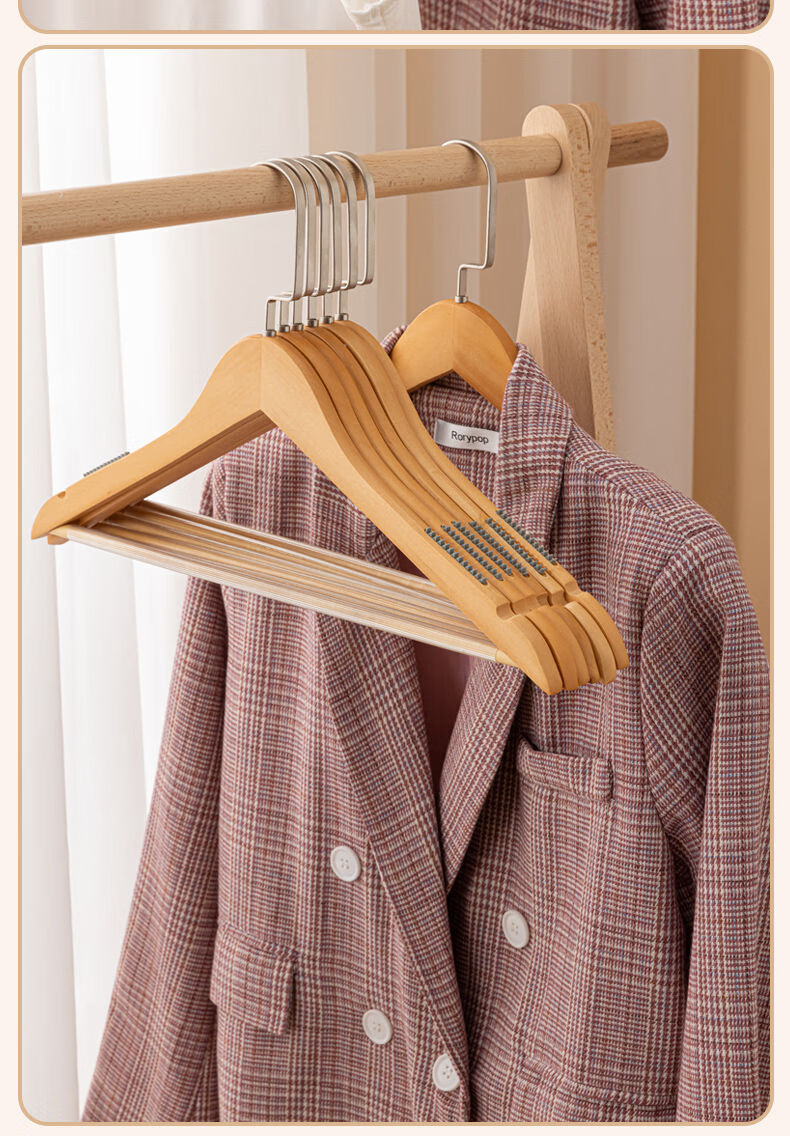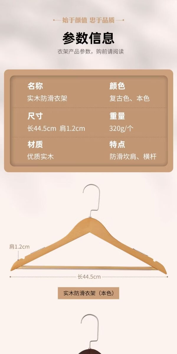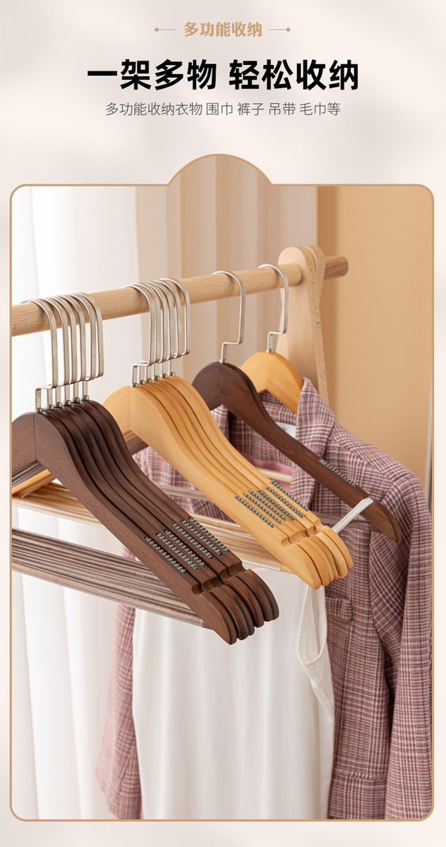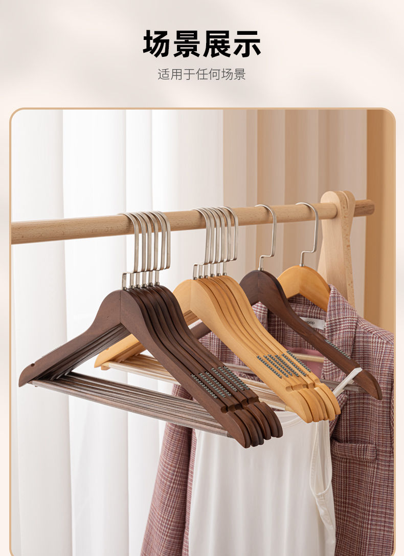 Fantasy clothes hanger clothes hanging wooden wooden clothing store clothes rack wardrobe support men's + retro 4.5 + flat head and wide shoulders 10 pcs