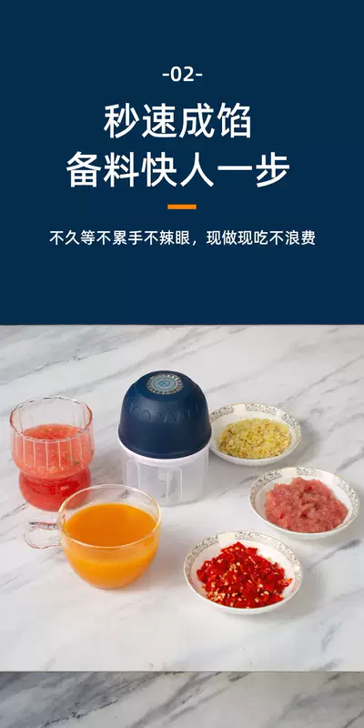 Yusenyi garlic artifact electric garlic pounder household wireless garlic grinder minced garlic seasoning crushed garlic meat grinder light luxury blue 350ML six-blade knife (minced garlic-minced ginger-minced meat-minced food supplement)