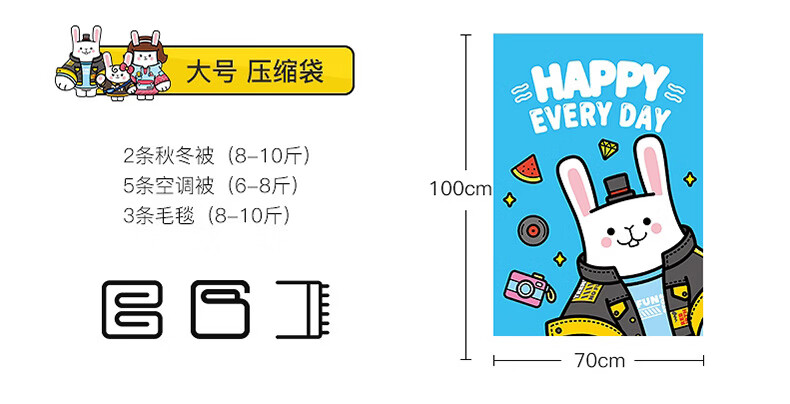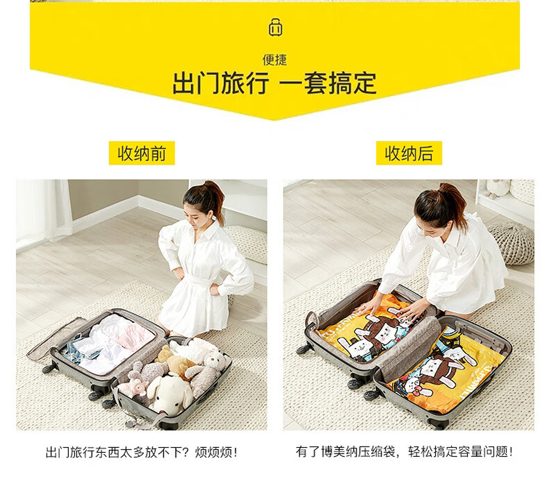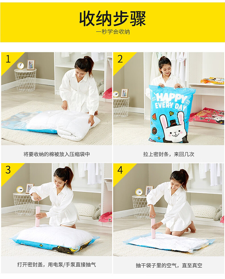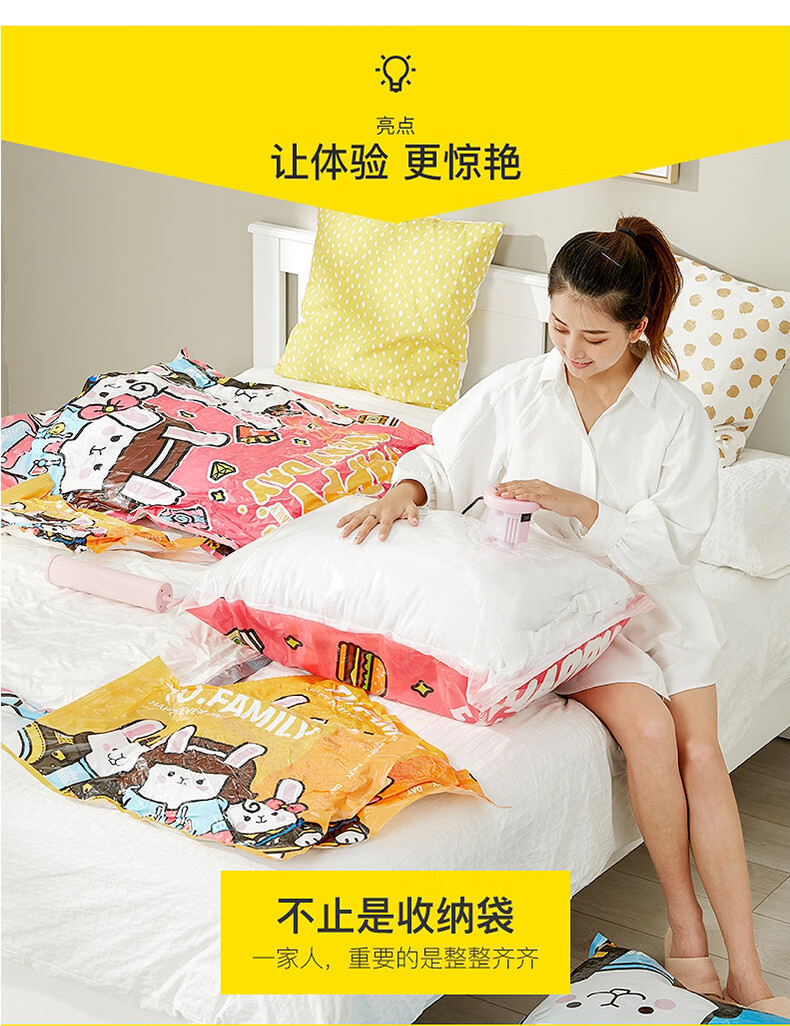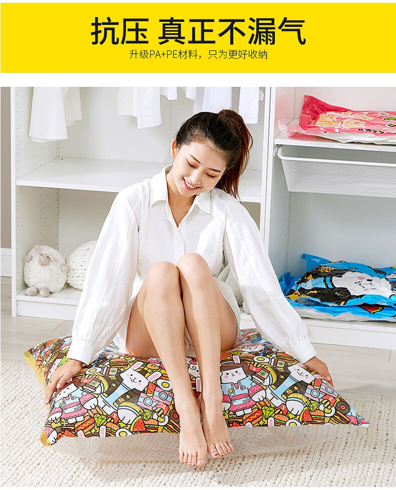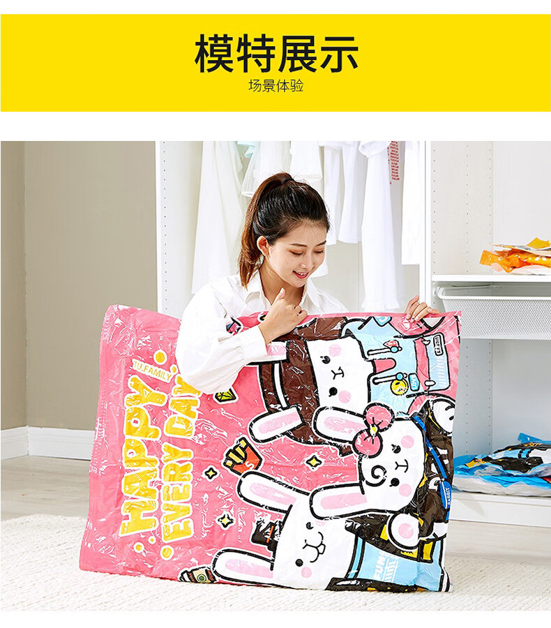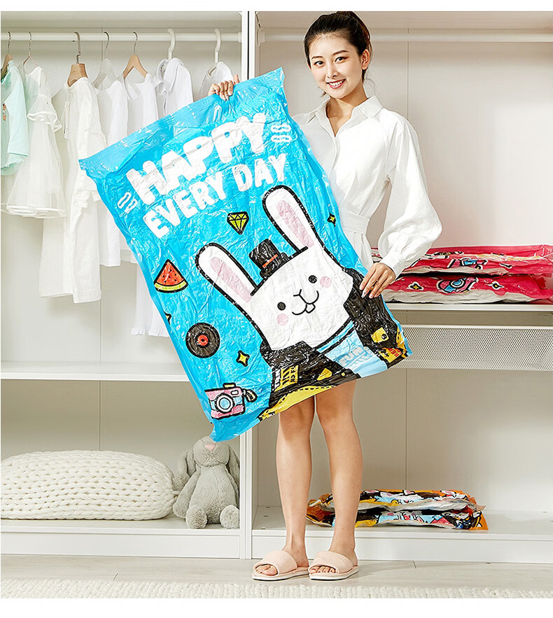 Shantou Lincun Spot Wholesale Three-piece Vacuum Compression Storage Bag Thickened Cartoon Pattern Quilt Clothes Storage and Organizing Tutu 3-piece Set 1 Large 1 Small 1 Hand Pump