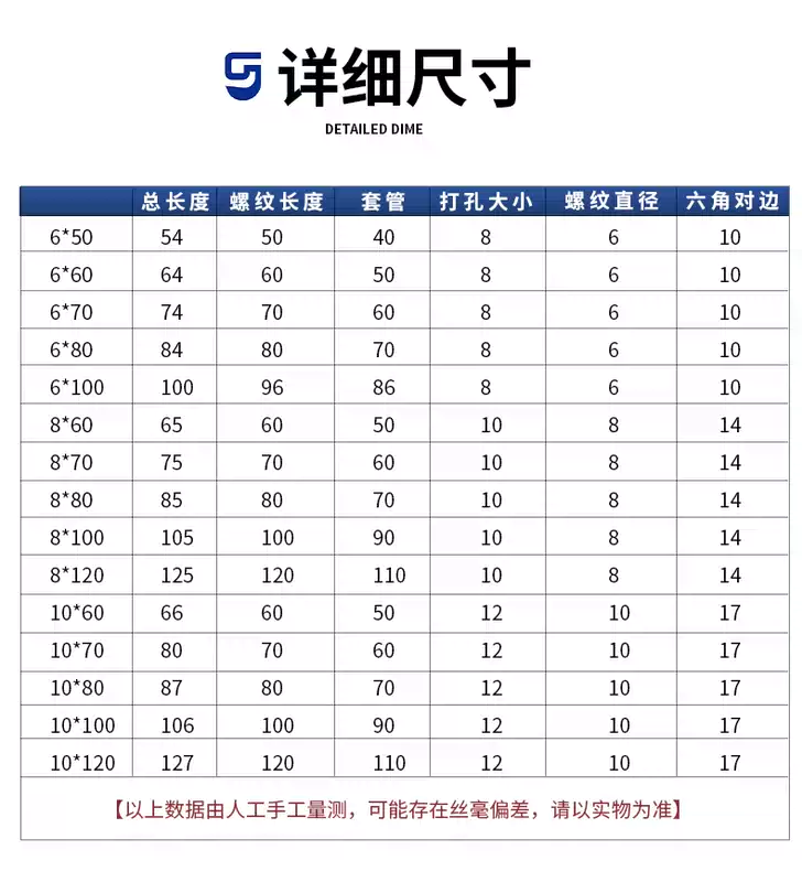 Yusenyi 304201 stainless steel external hexagonal internal expansion screw built-in expansion screw floor implosion pull screw 650 (50 pieces) 201