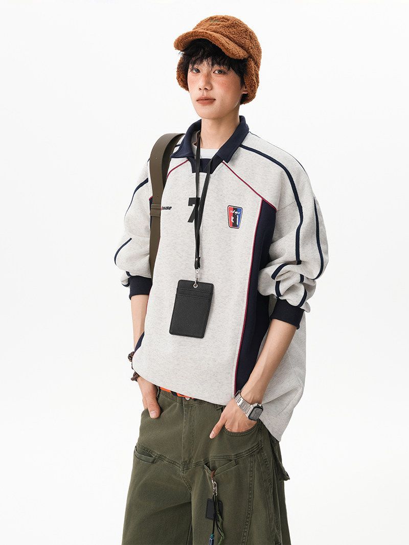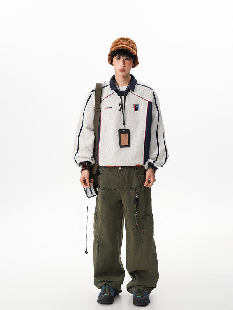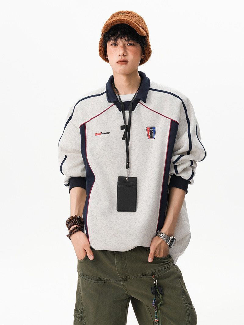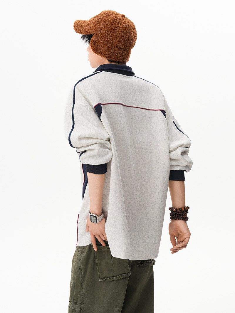 PANMAX American heavyweight sports sweatshirt for men and women 2026 new autumn retro splicing versatile college style polo collar jacket white S