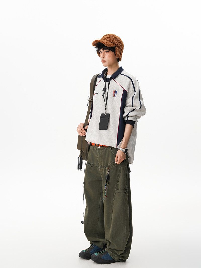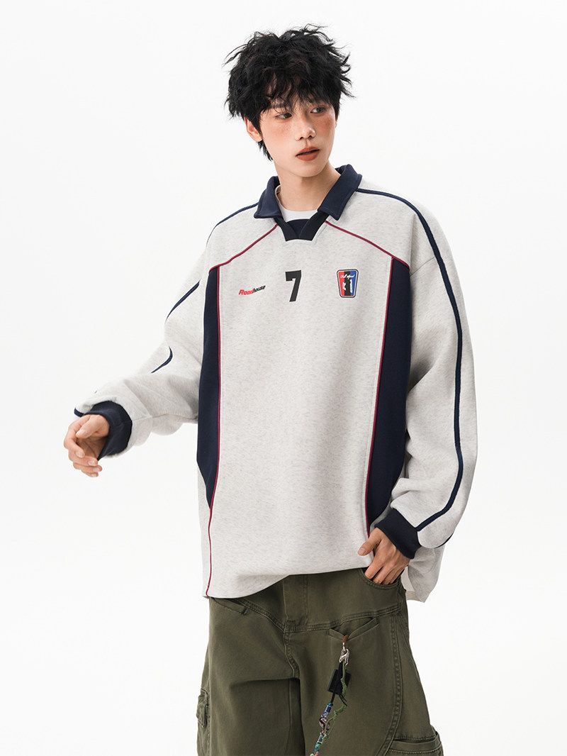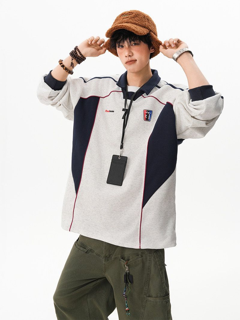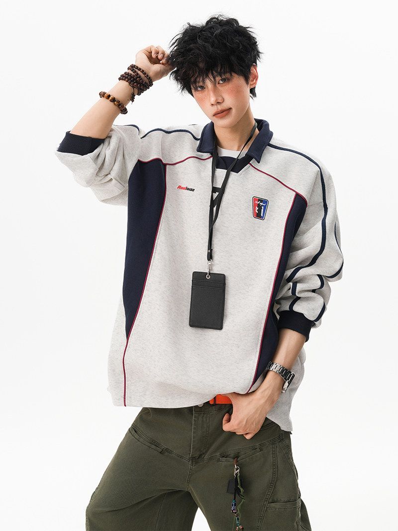 PANMAX American heavyweight sports sweatshirt for men and women 2026 new autumn retro splicing versatile college style polo collar jacket white S
