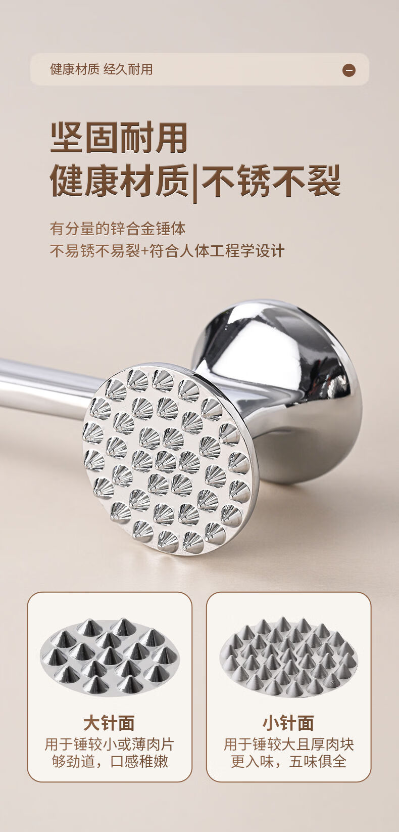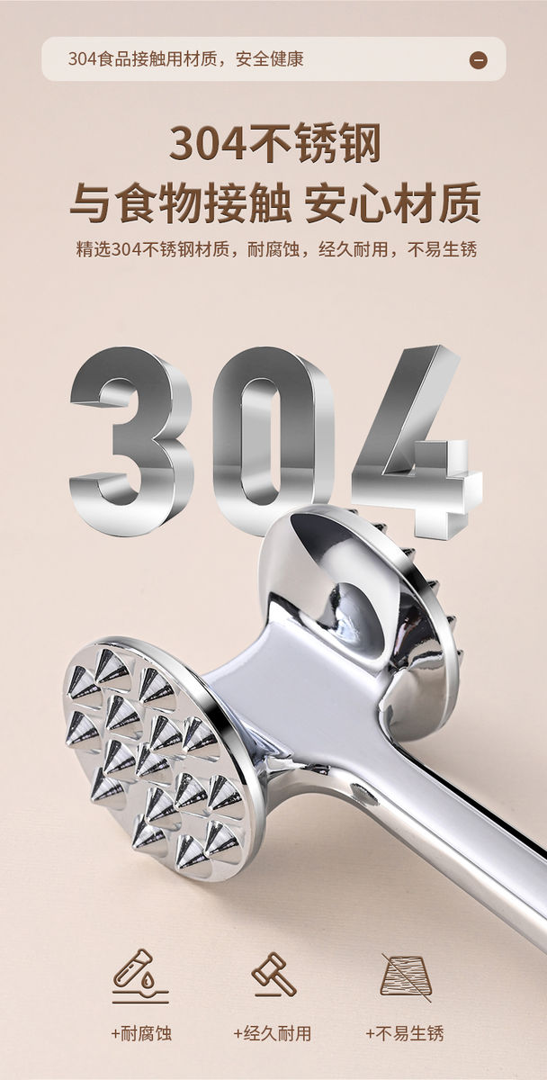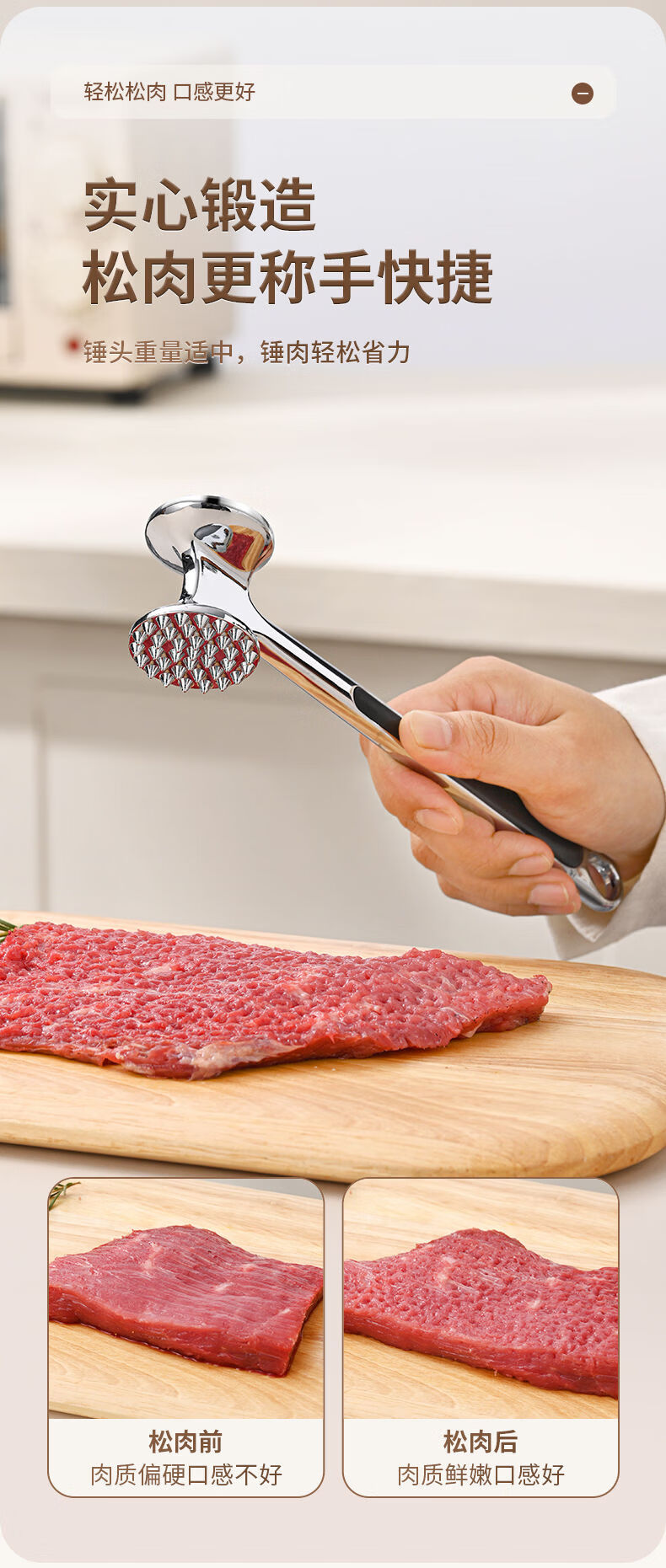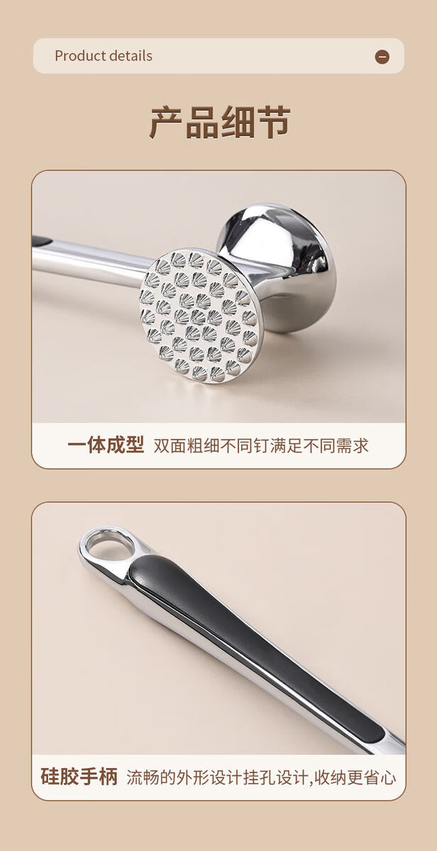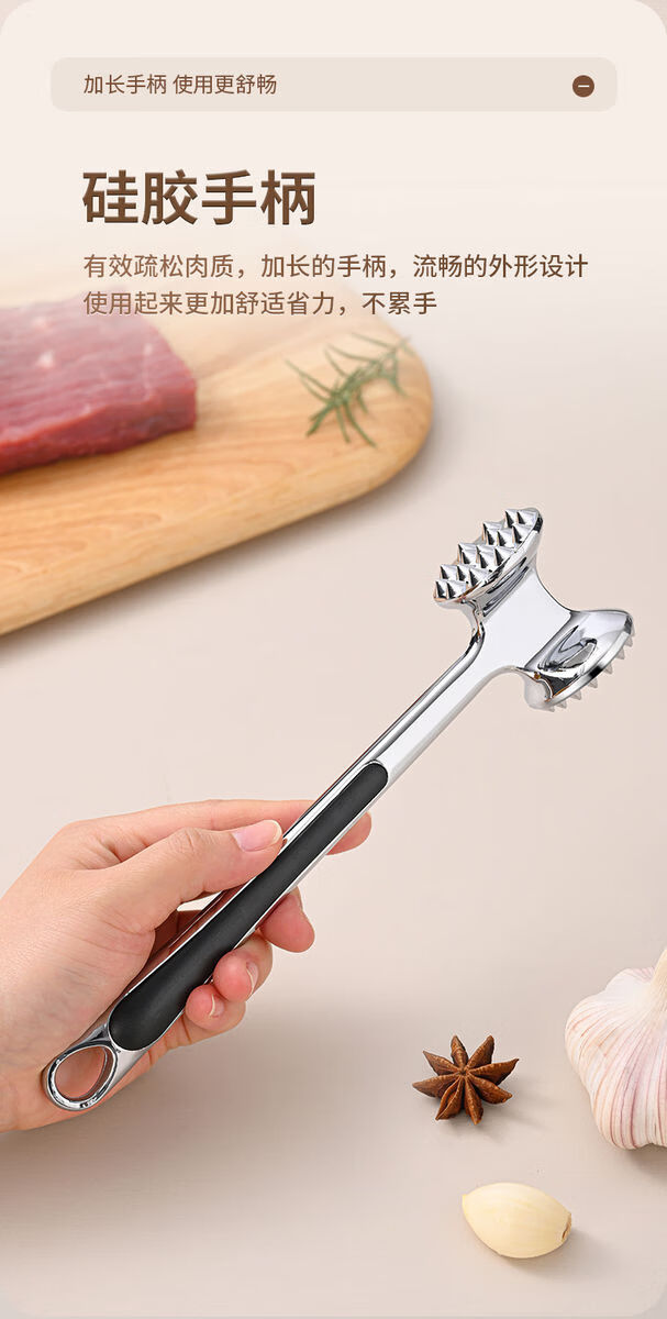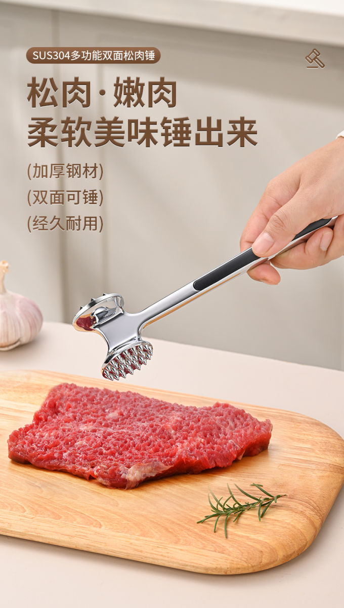 Fantasy meat loosening hammer, kitchen steak beating hammer, meat tenderizing tool, hammer, double-sided meat loosening hammer, free hook + small oil brush