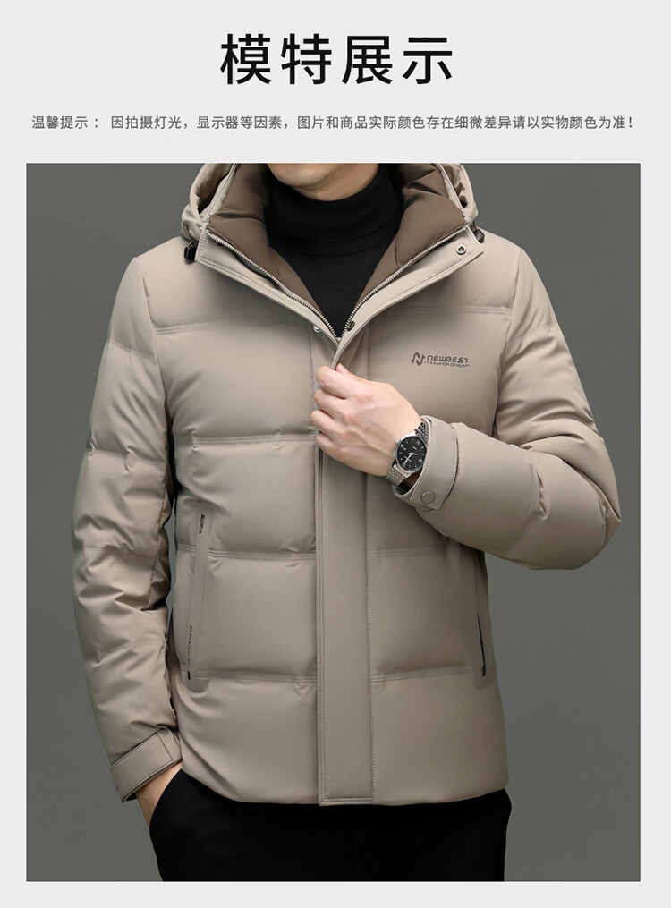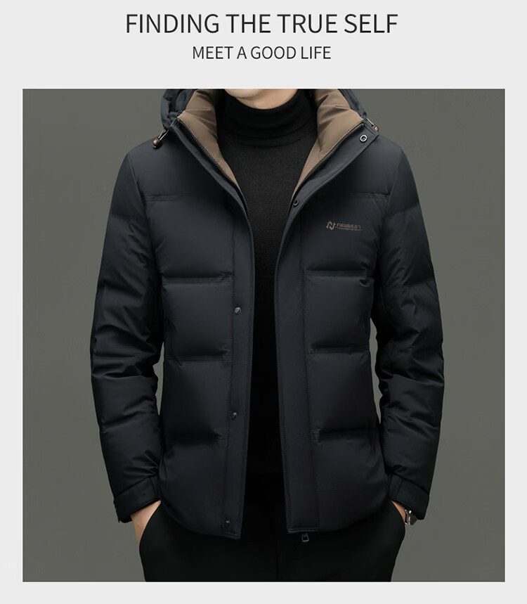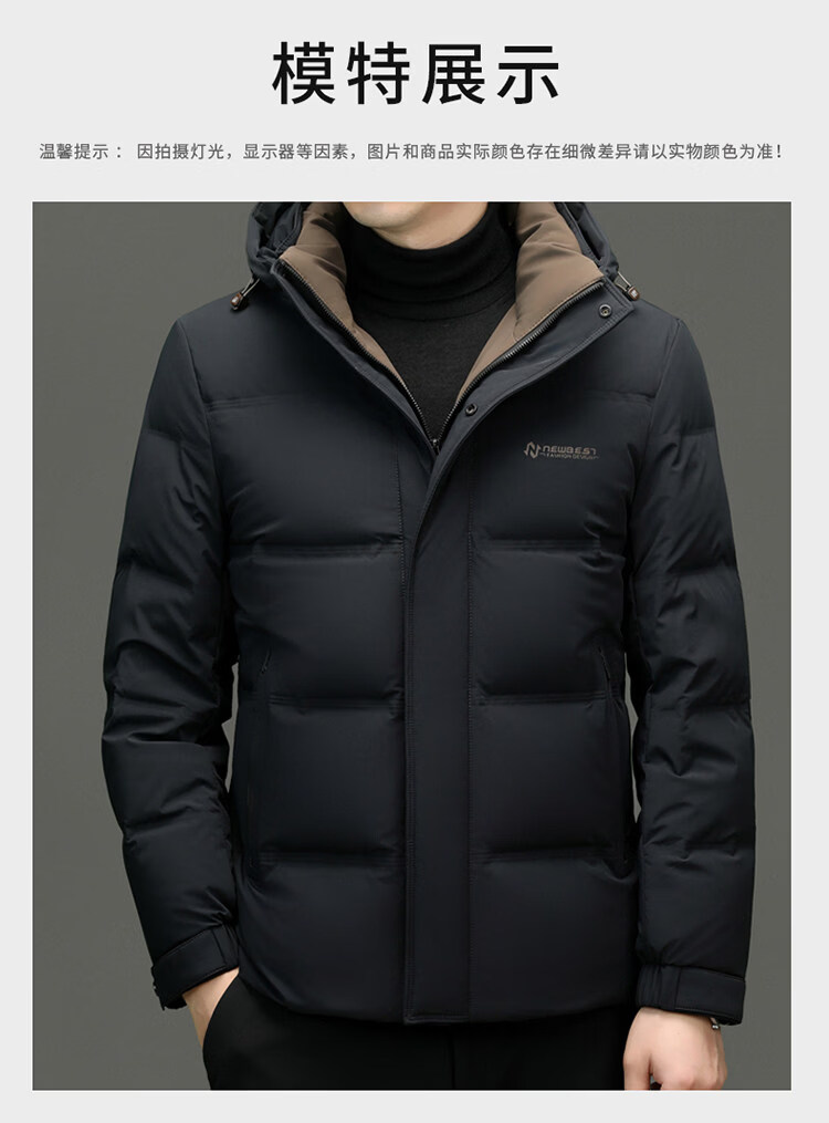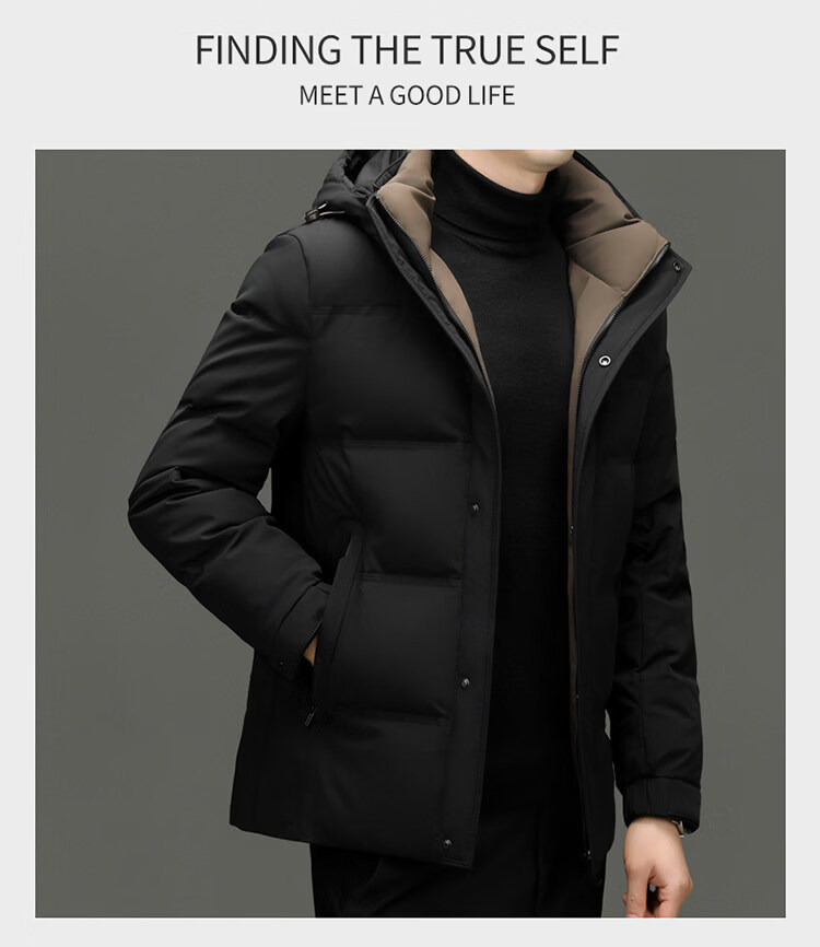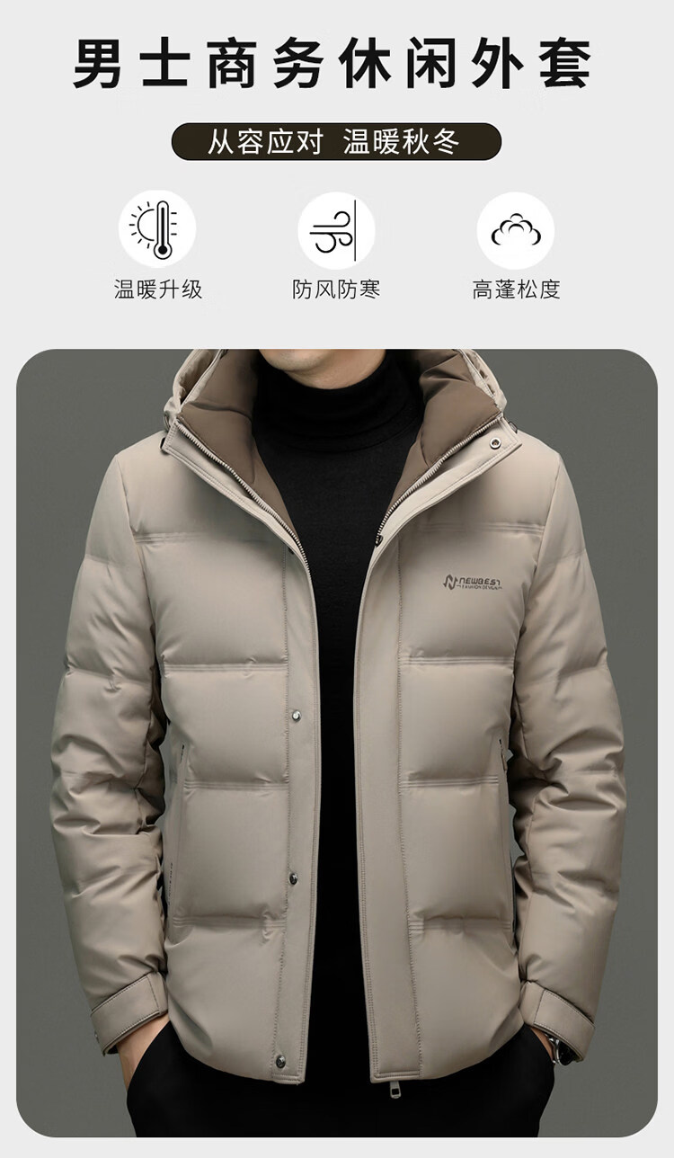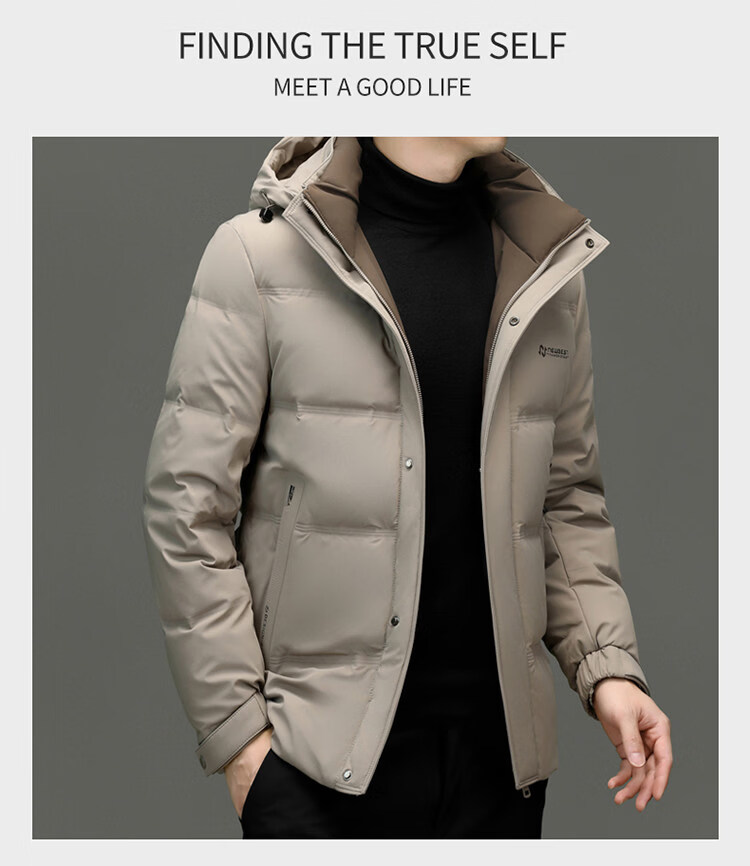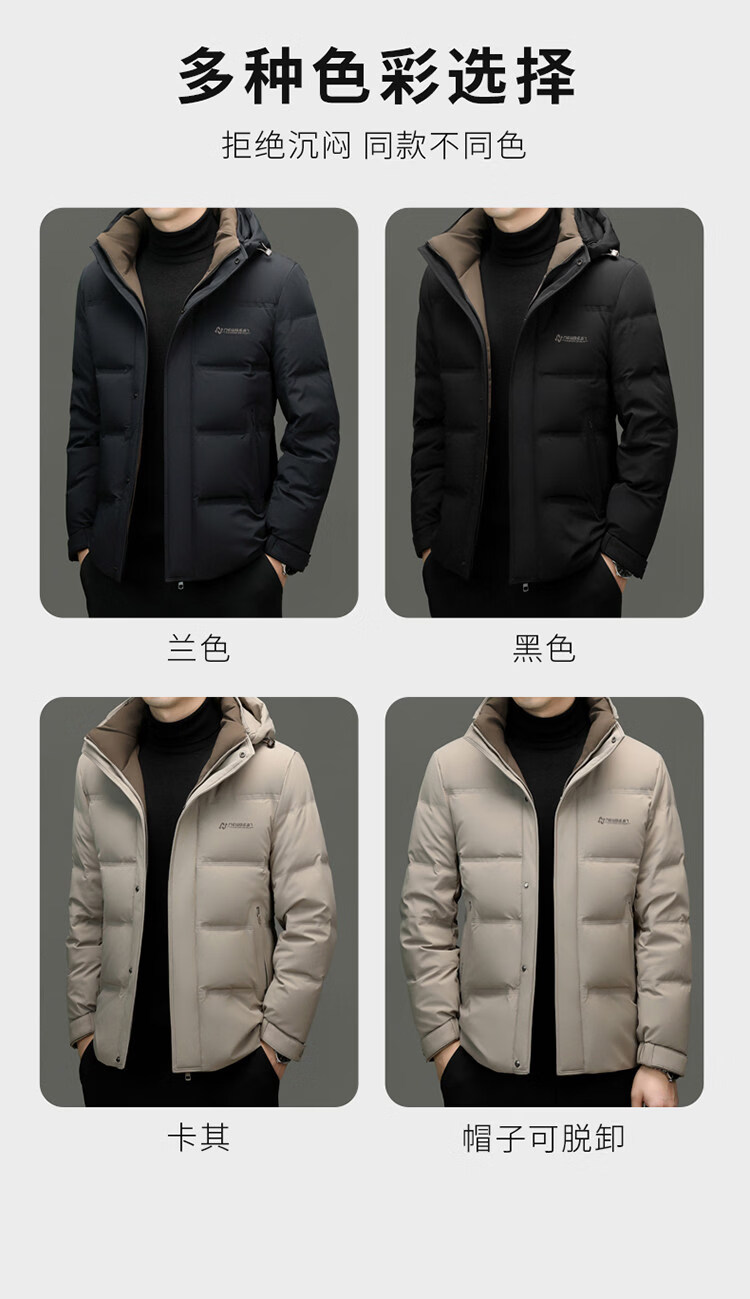 利郎(LILANZ)高端男装羽绒服冬季新款中青年休闲防寒衣服加厚保暖可拆帽外套男 蓝色 3XL 190