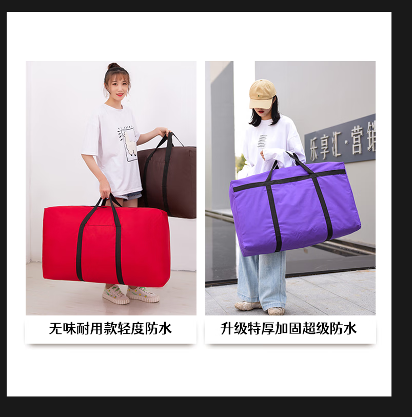Thickened Oxford cloth luggage storage bag for moving dormitory, large capacity waterproof quilt bag, woven bag, moving packing bag, 76 liters, durable and odorless, black series