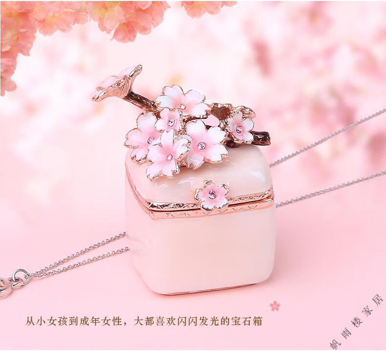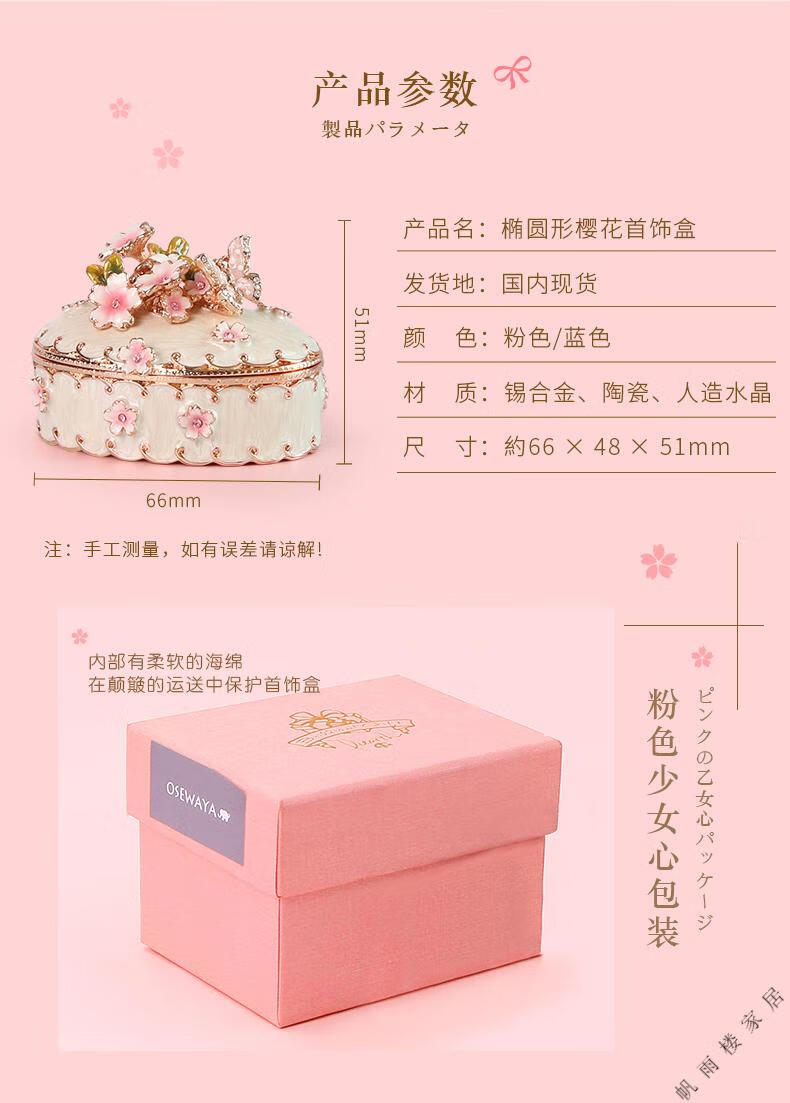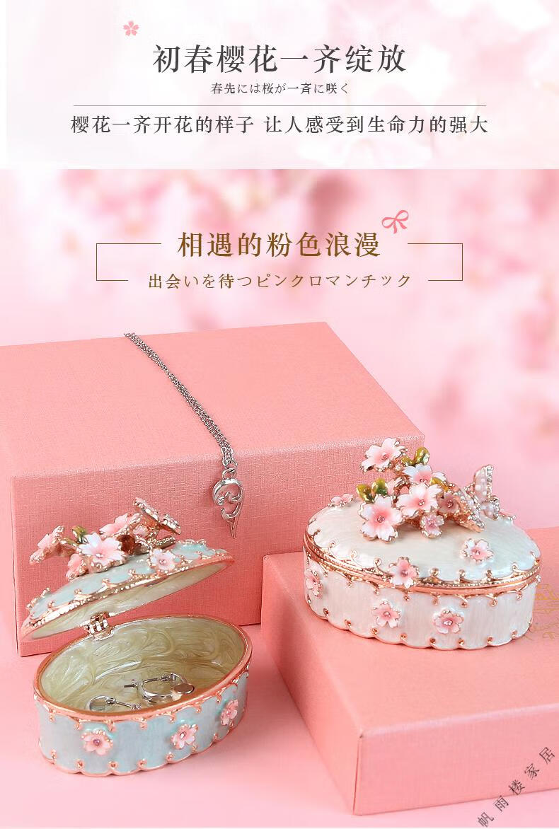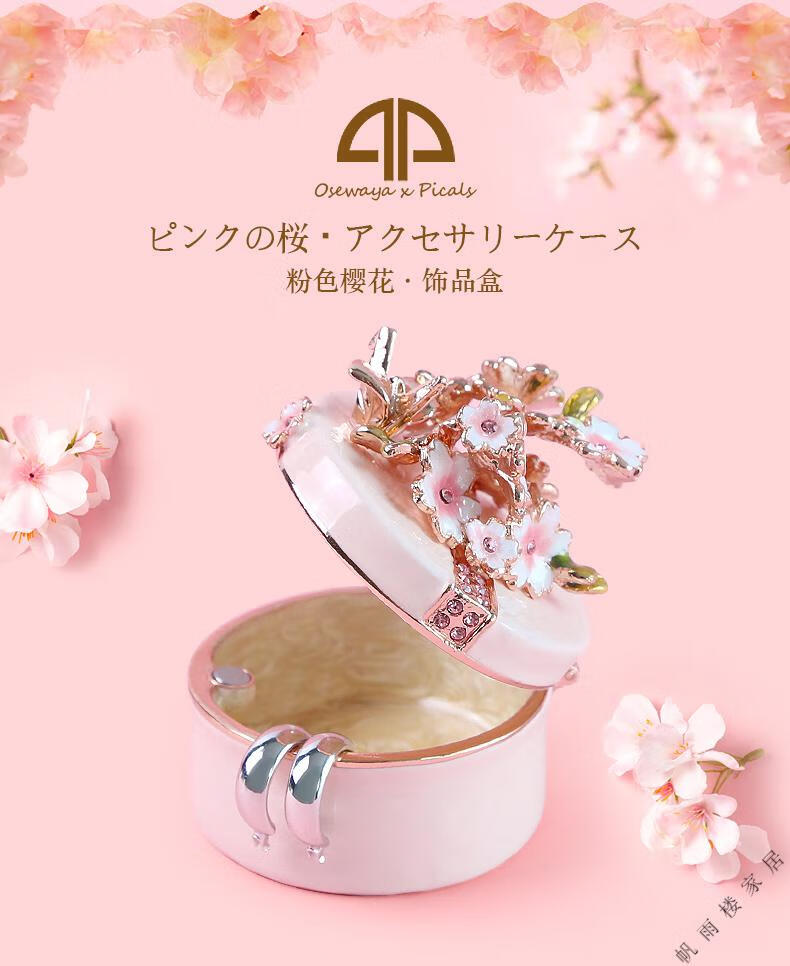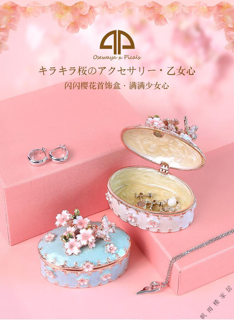 Fantasy high-end light luxury export Russian enamel jewelry box OSEWAYA Japanese Picals jewelry box Sakura male oval cherry blossom box-pink original Uchimura
