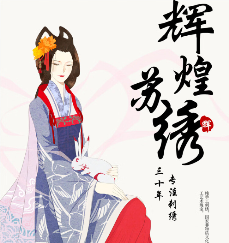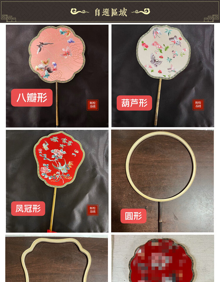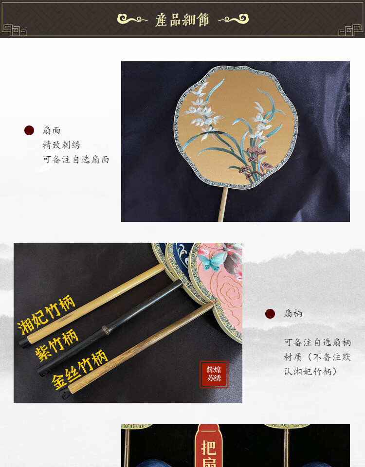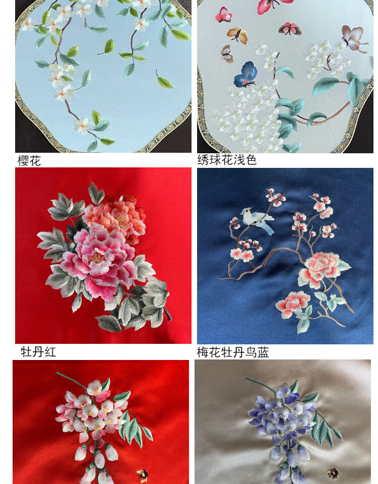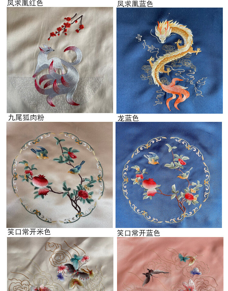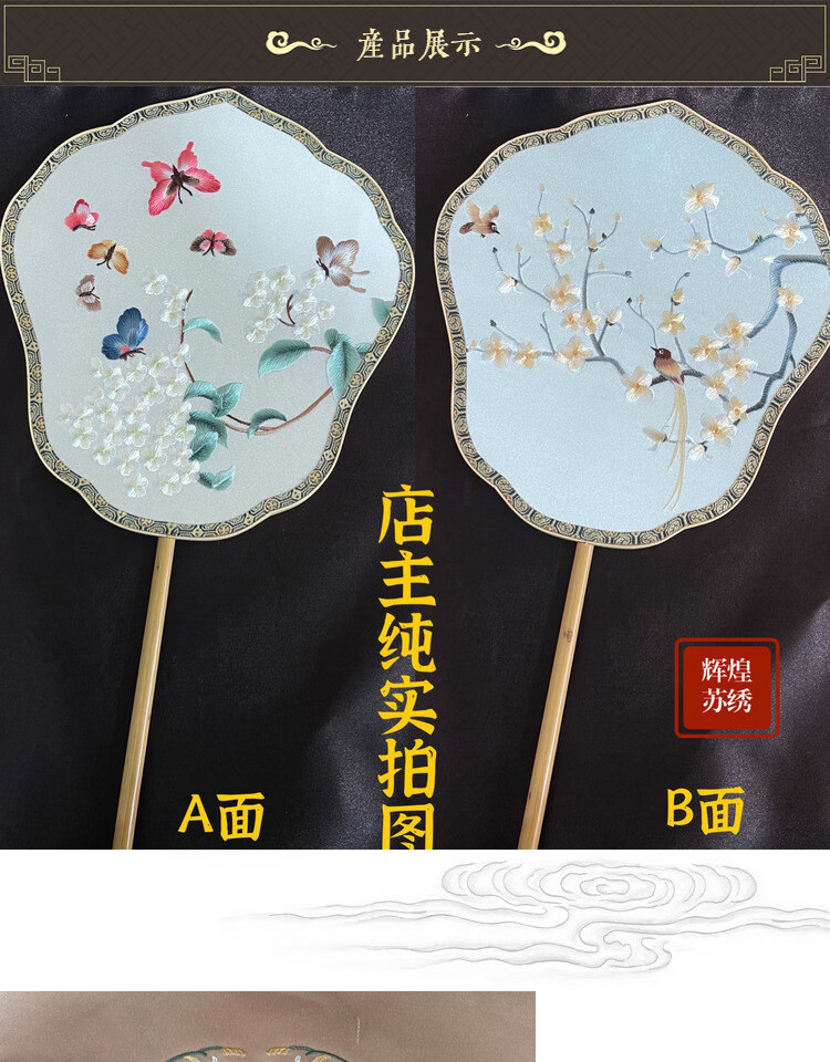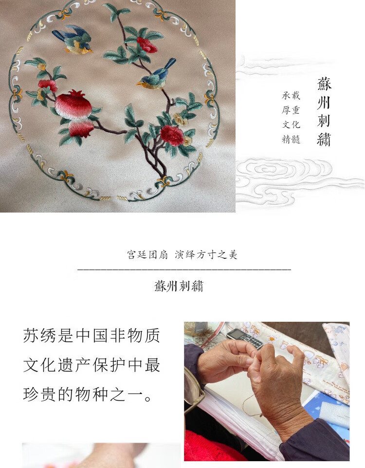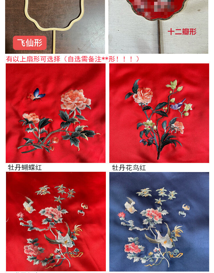 Yusen Yi Su embroidery double-sided different-color round fan Hanfu with embroidery embroidery fan ancient style palace fan Chinese style Suzhou specialty gift A double-sided smiling mouth always open blue + red phoenix 22CM craft fan