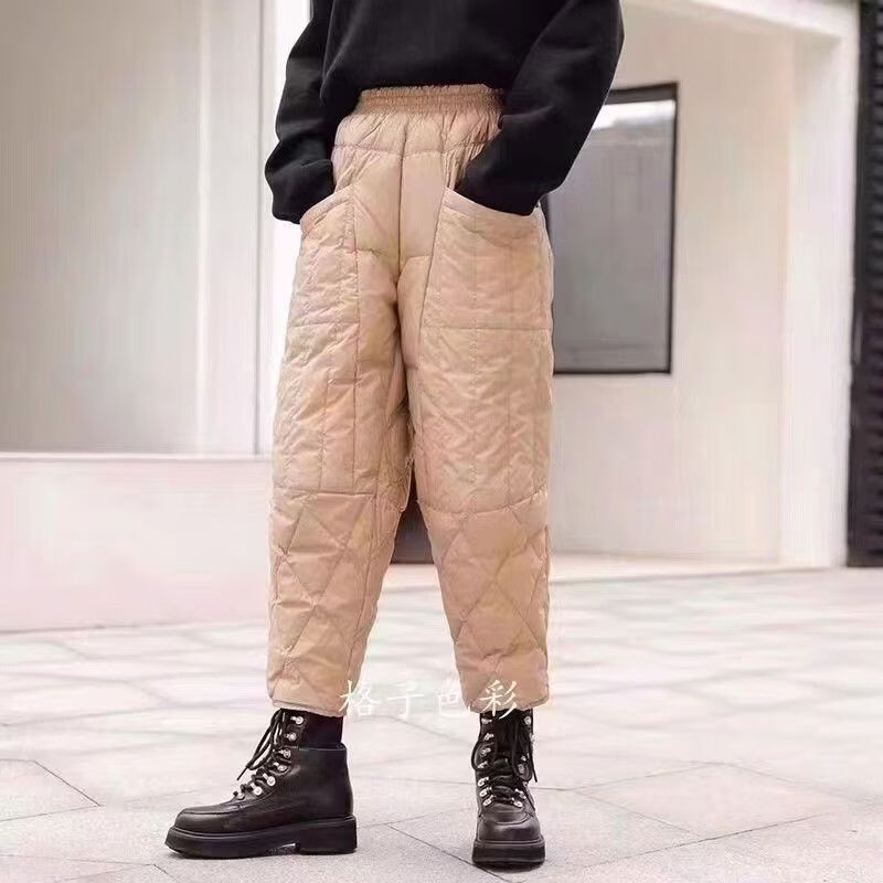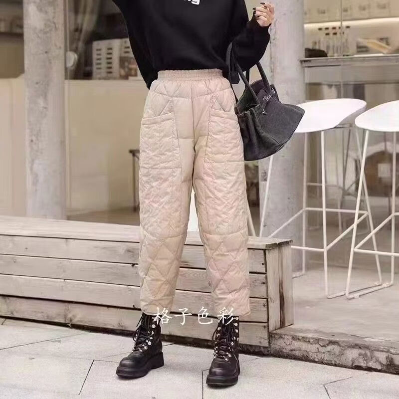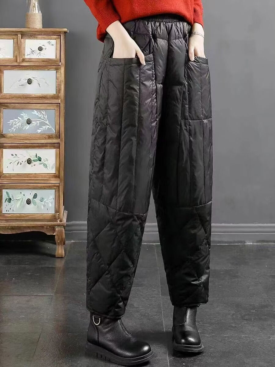 Large size winter super thick down pants for women - 40 degrees below zero 2023 new plus velvet and thickened women's outer wear loose cotton pants black XL XL recommended 140-160 Jin Jin equals 0.5 kg