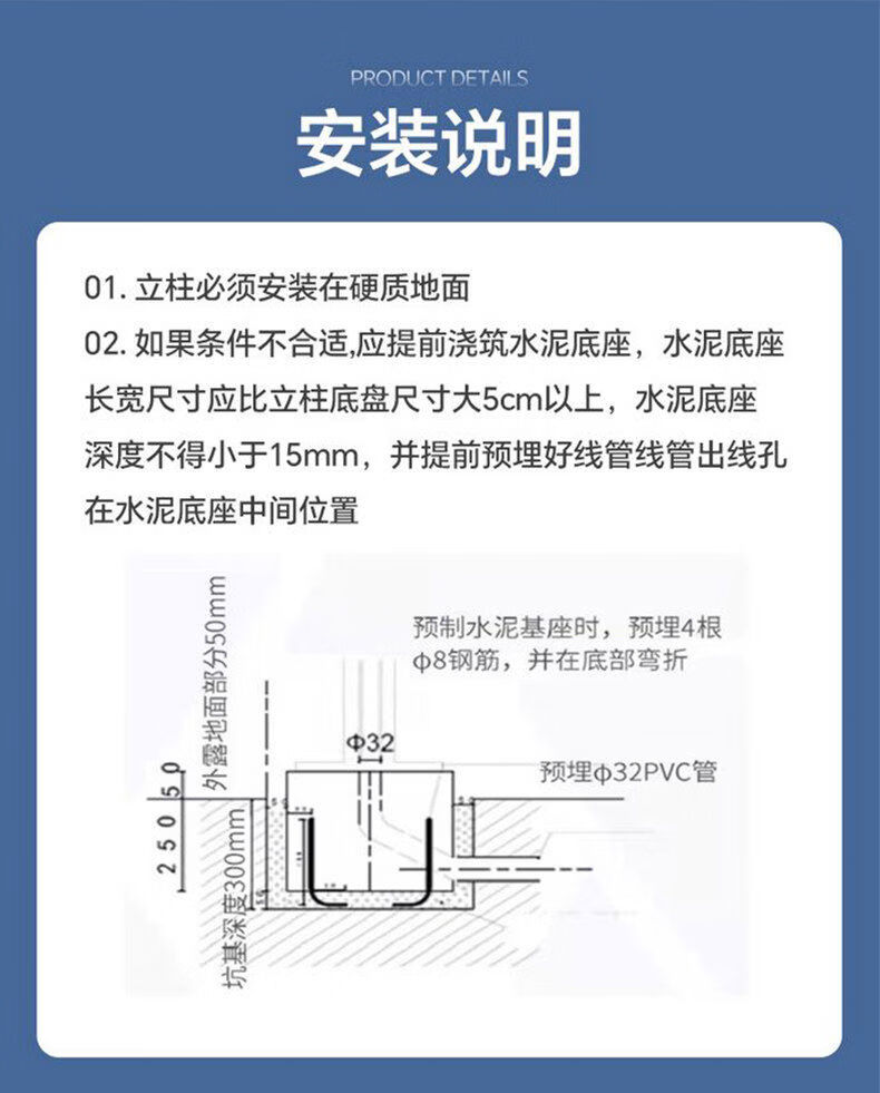 Litian car charging pile pole thickened mounting bracket BYD Tesla outdoor home rustless 4S supply white 1.5 points high - widened and thickened with hook screws charging pile pole