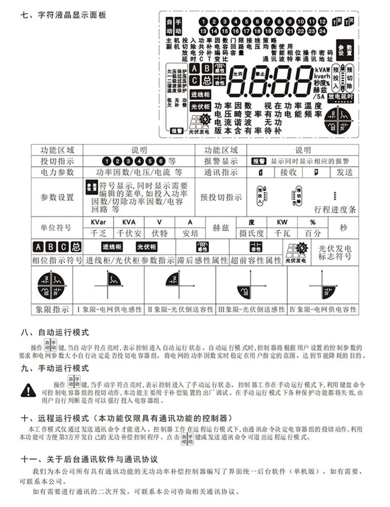 Four-quadrant reactive power compensation controller photovoltaic four-quadrant reactive power compensation controller photovoltaic-specific reactive power compensation, a total of 12 static channels (AC contactor type)