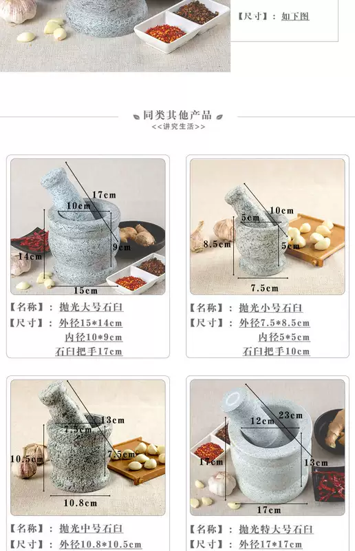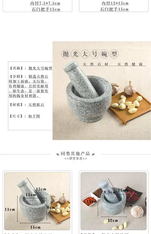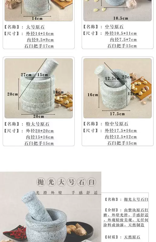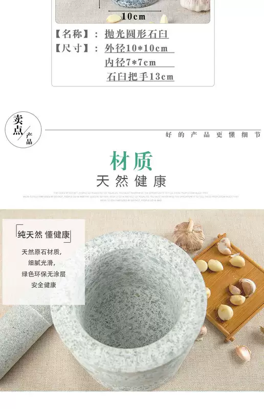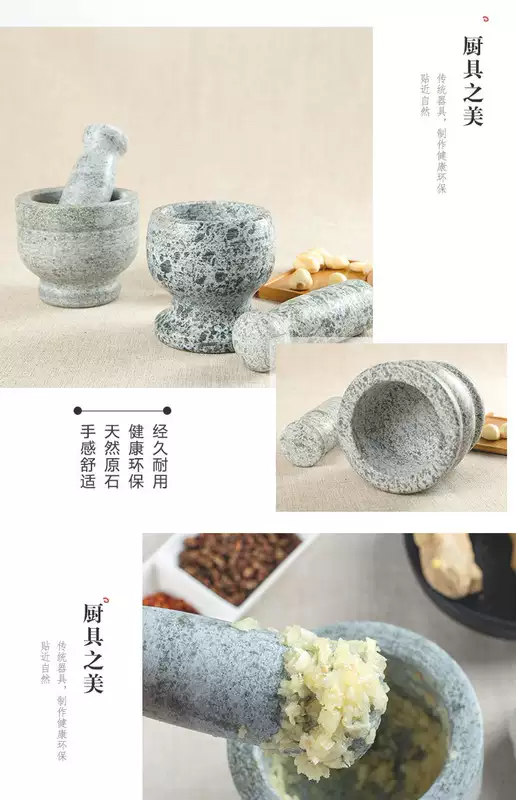 Yusenyi natural stone mortar garlic press household large garlic press manual grinder garlic jar stone nest small stone mortar polishing with lid