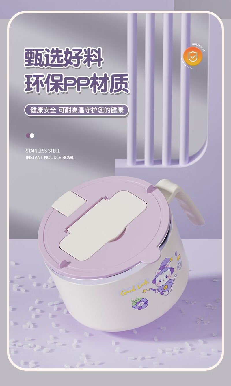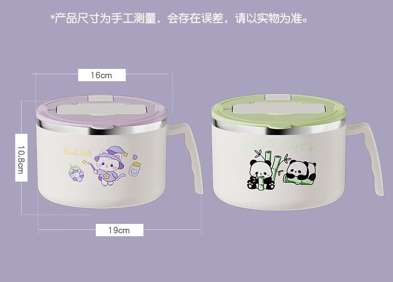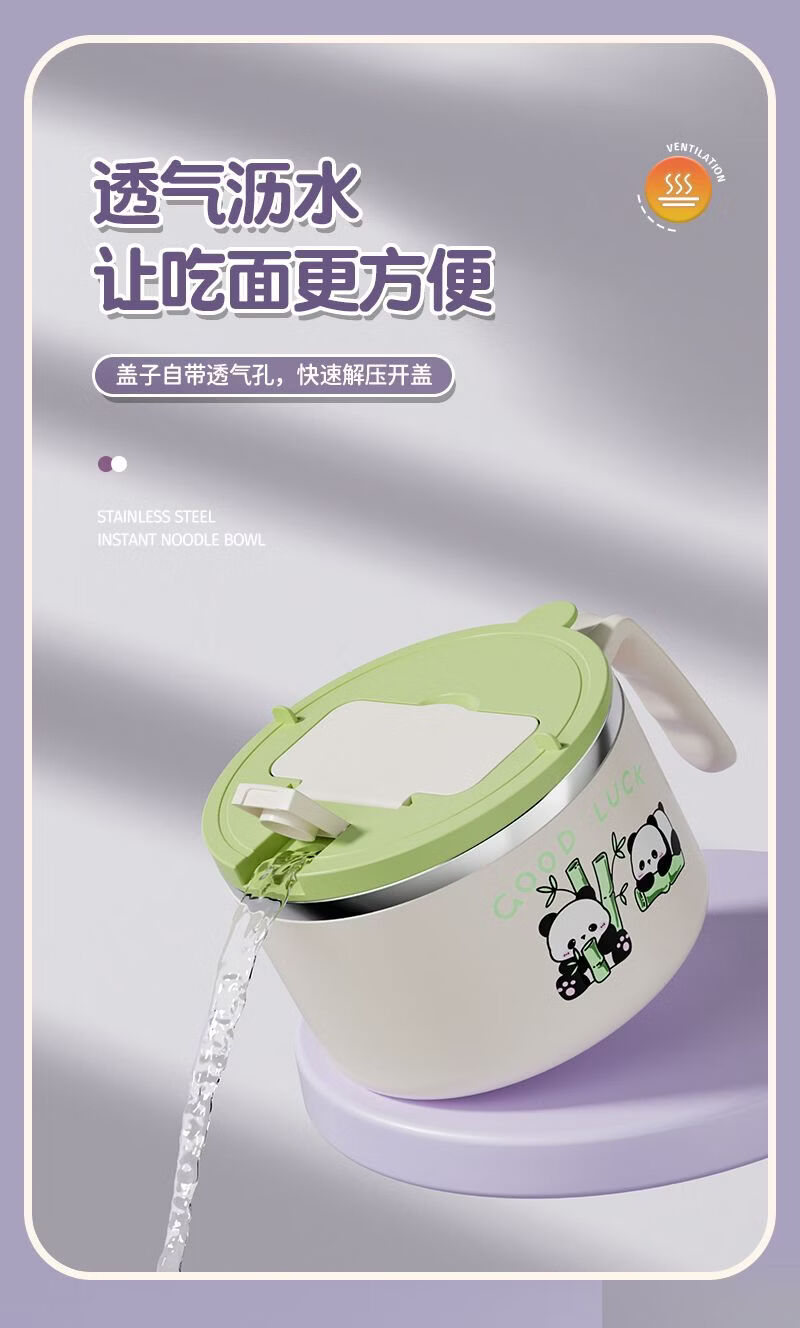 Hawker Beach instant noodle bowl with lid spoon, student dormitory instant noodle artifact, personal drainable, cute rice bowl for girls, good-looking, 304 steel, bamboo panda, can soak 2 packages of noodles