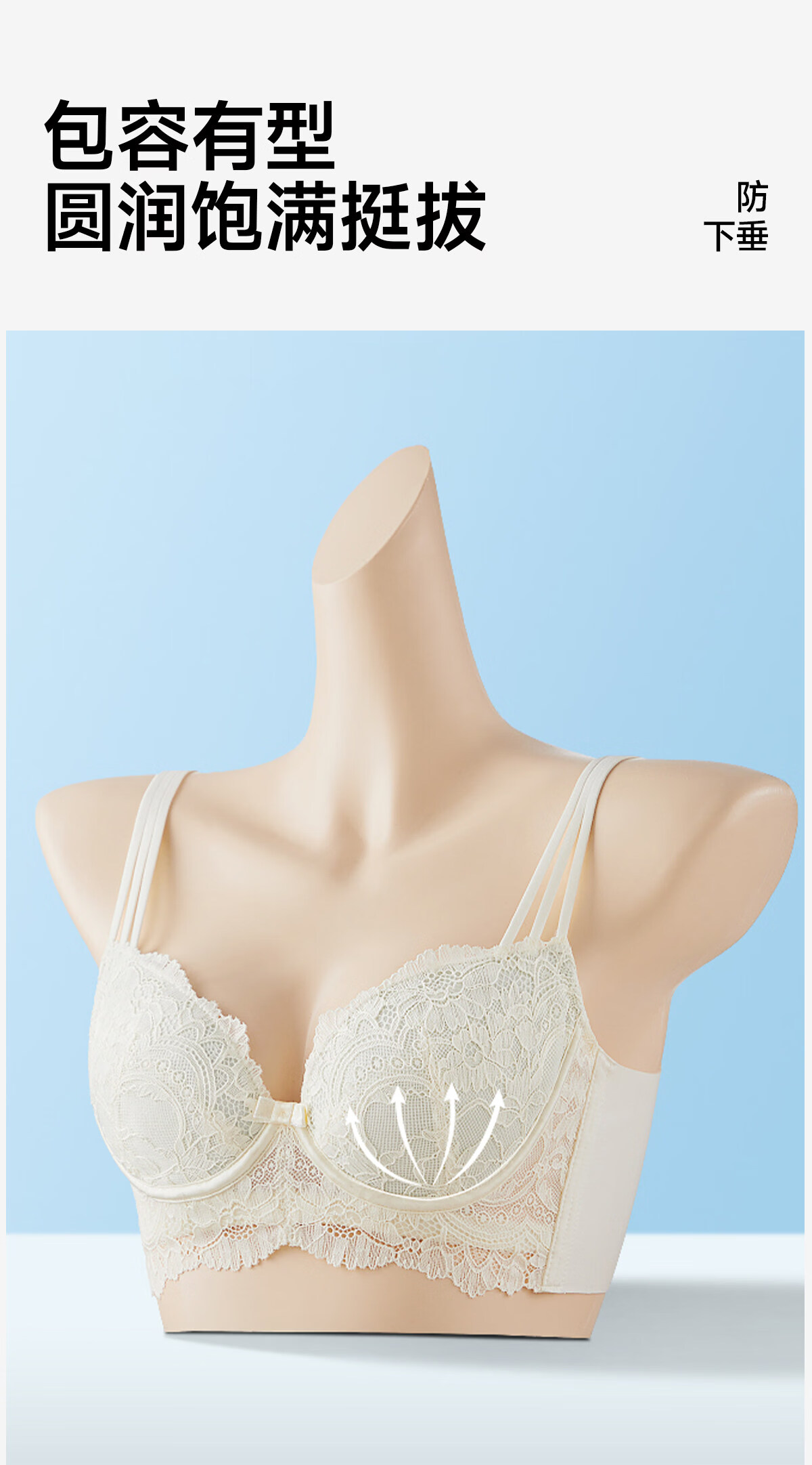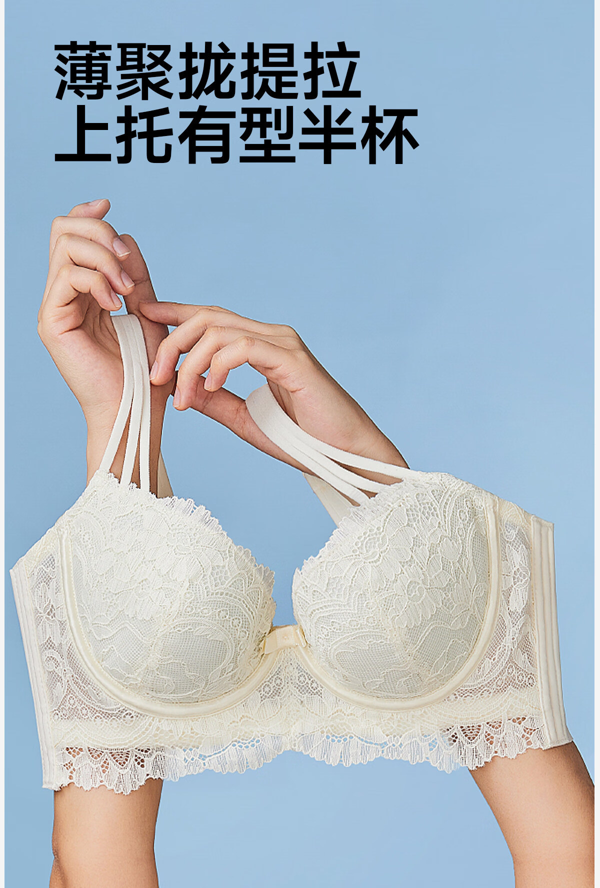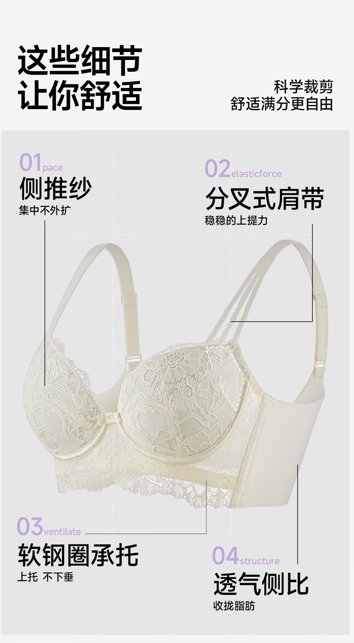 Jianjiang Ice Silk Bra Women's Soft Steel Ring 2026 New Seamless Beautiful Back Women's Gathered Anti-Sagging Sexy Lace Underwear Women's 2-Pack Gray Blue + Off-White 75B
