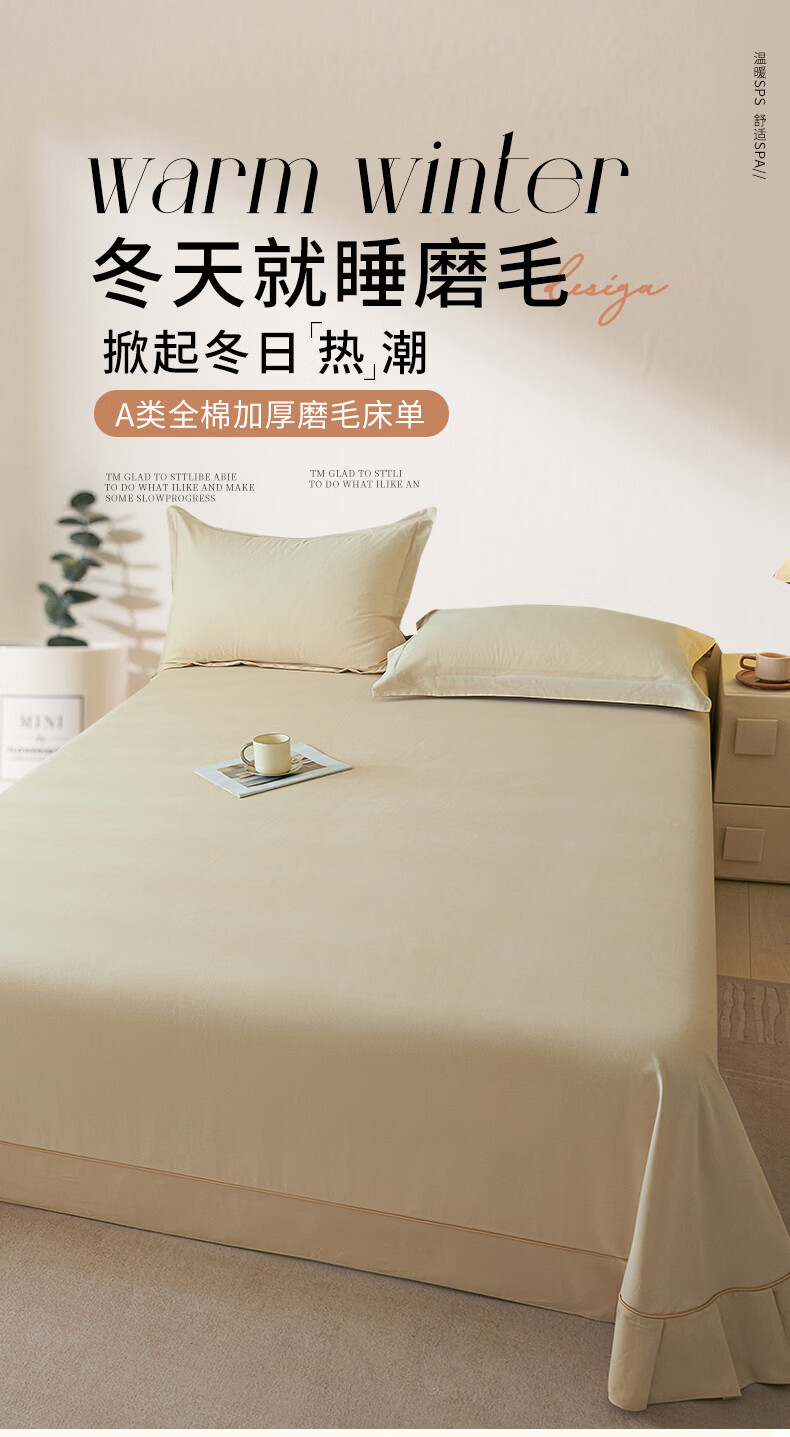 Atour bedding pure cotton bed sheet 1.8x2 meters sheet piece 100% cotton 100% solid color thickened brushed bed cover sheet universal for all seasons Yachuanqing 100% cotton super soft brushed skin-friendly sleeping sheet + pillowcase pair 180cm*230cm