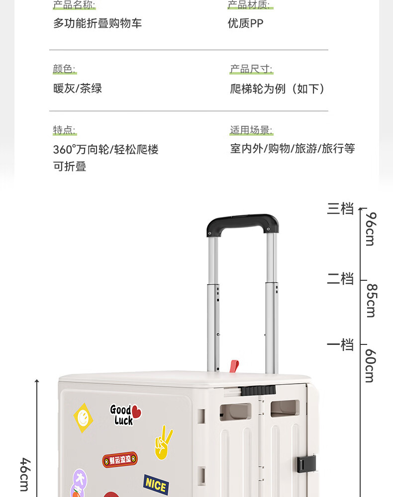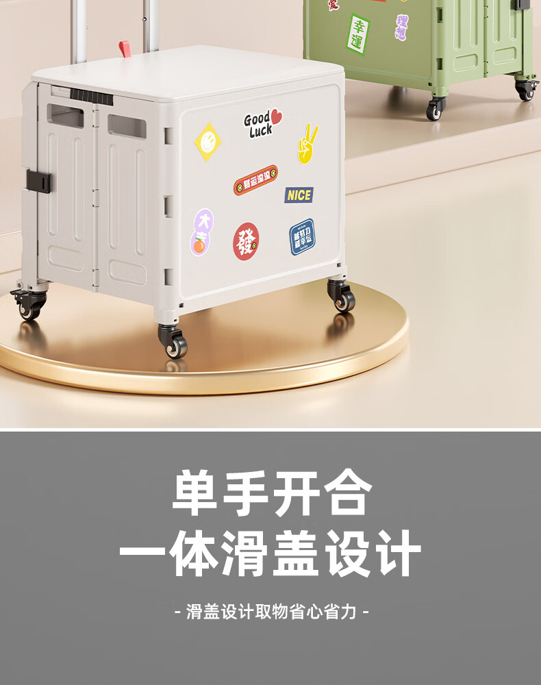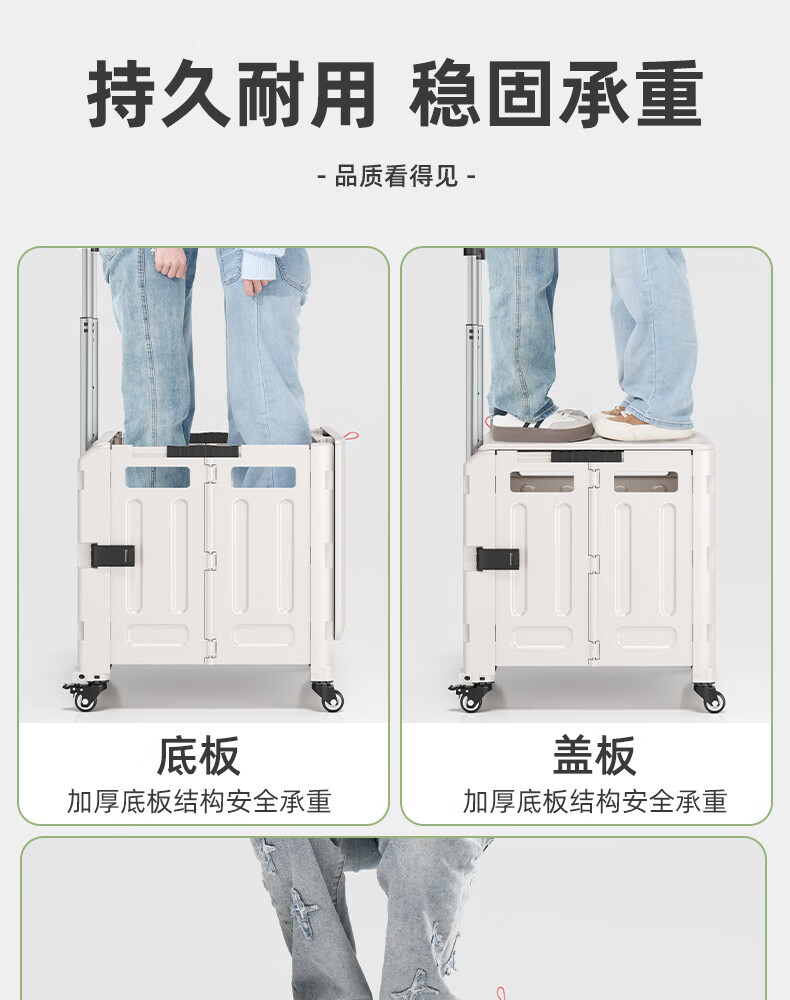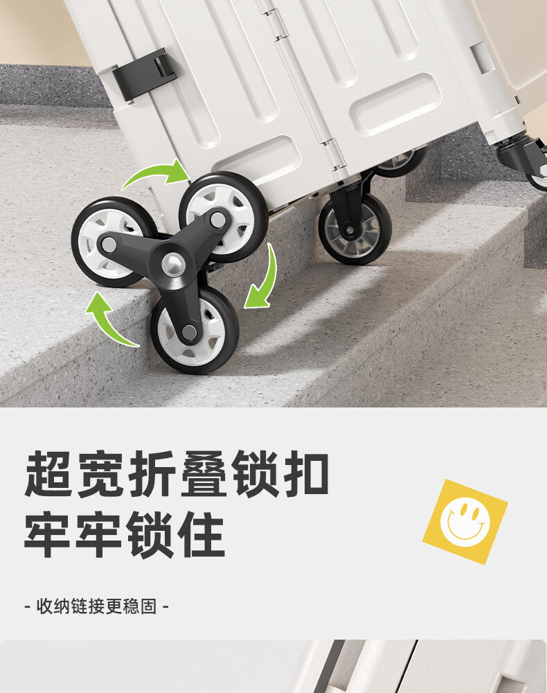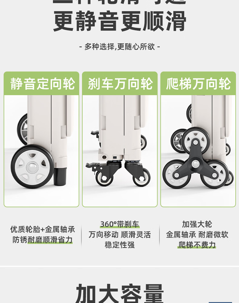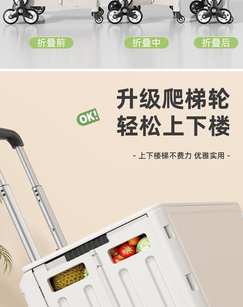 Wing Fantasy Portable Folding Grocery Cart Stair Climbing Cart Large Two-Wheel Shopping Cart with Cover Medium 4-Wheel with Brake + Tea Green Cover + Sticker 55L Integrated Sliding Cover