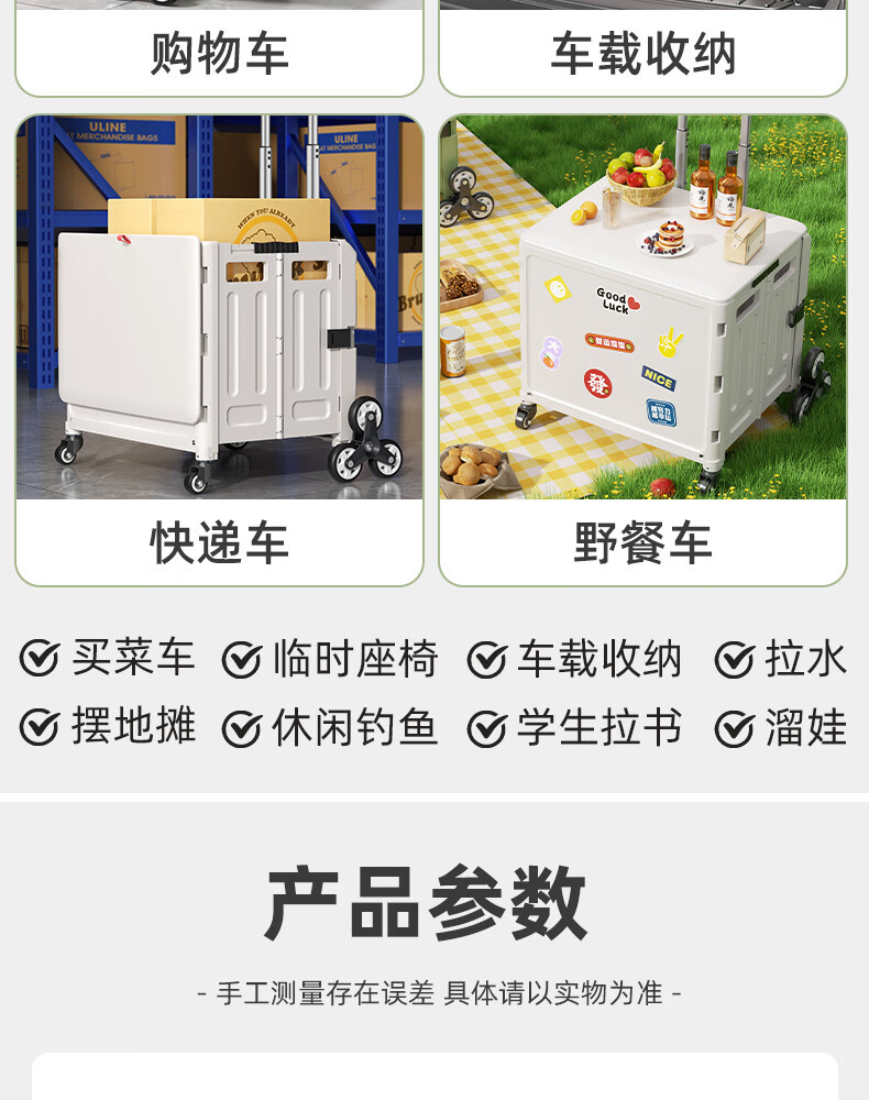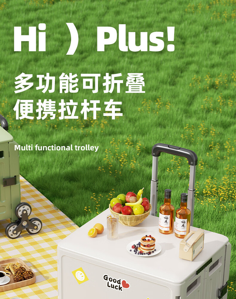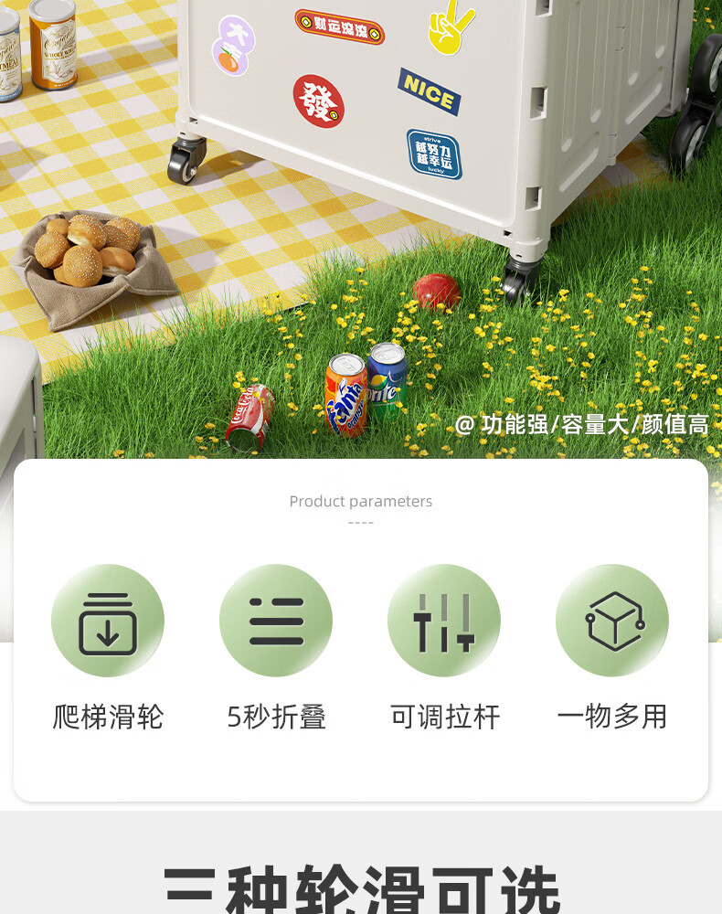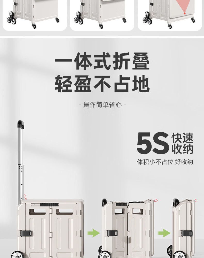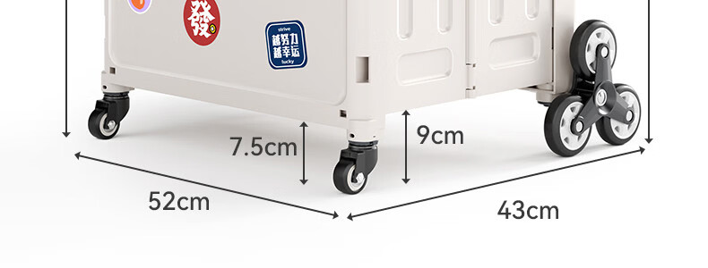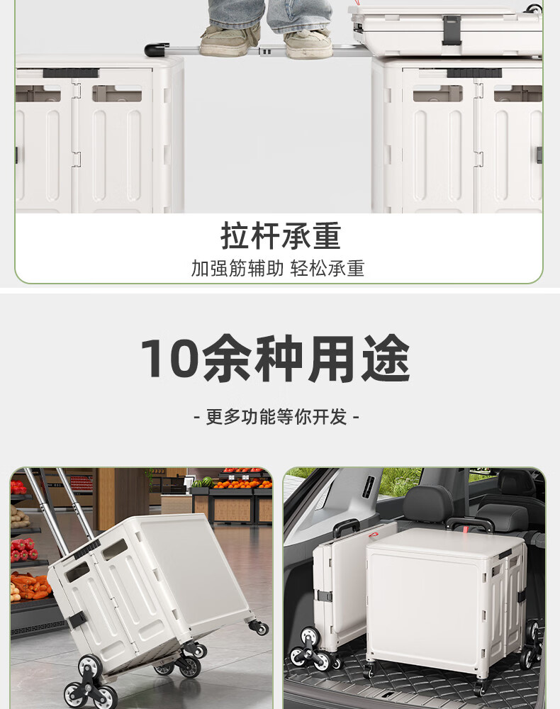 Wing Fantasy Portable Folding Grocery Cart Stair Climbing Cart Large Two-Wheel Shopping Cart with Cover Medium 4-Wheel with Brake + Tea Green Cover + Sticker 55L Integrated Sliding Cover
