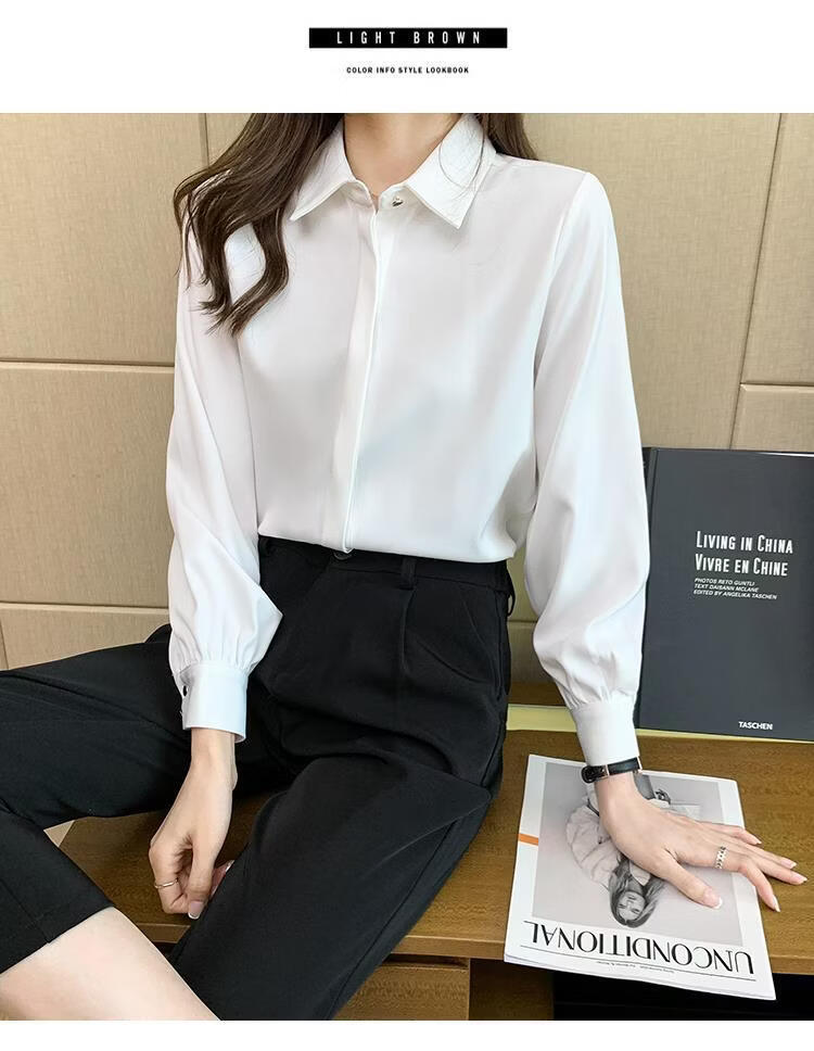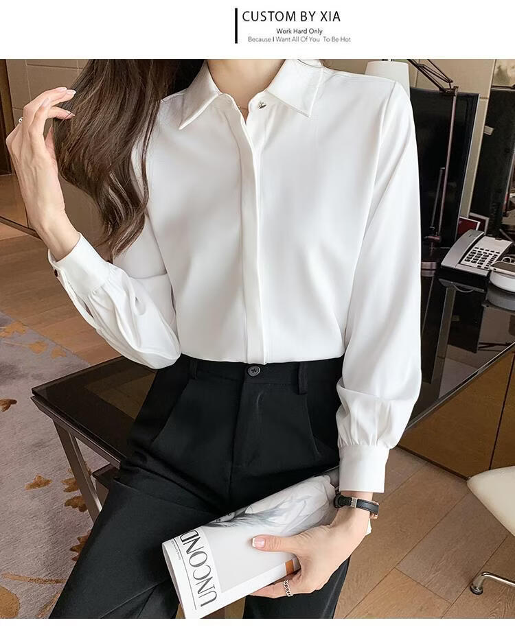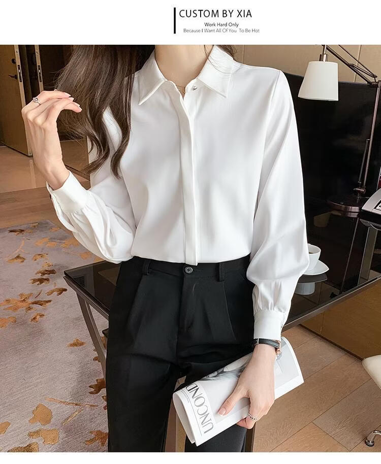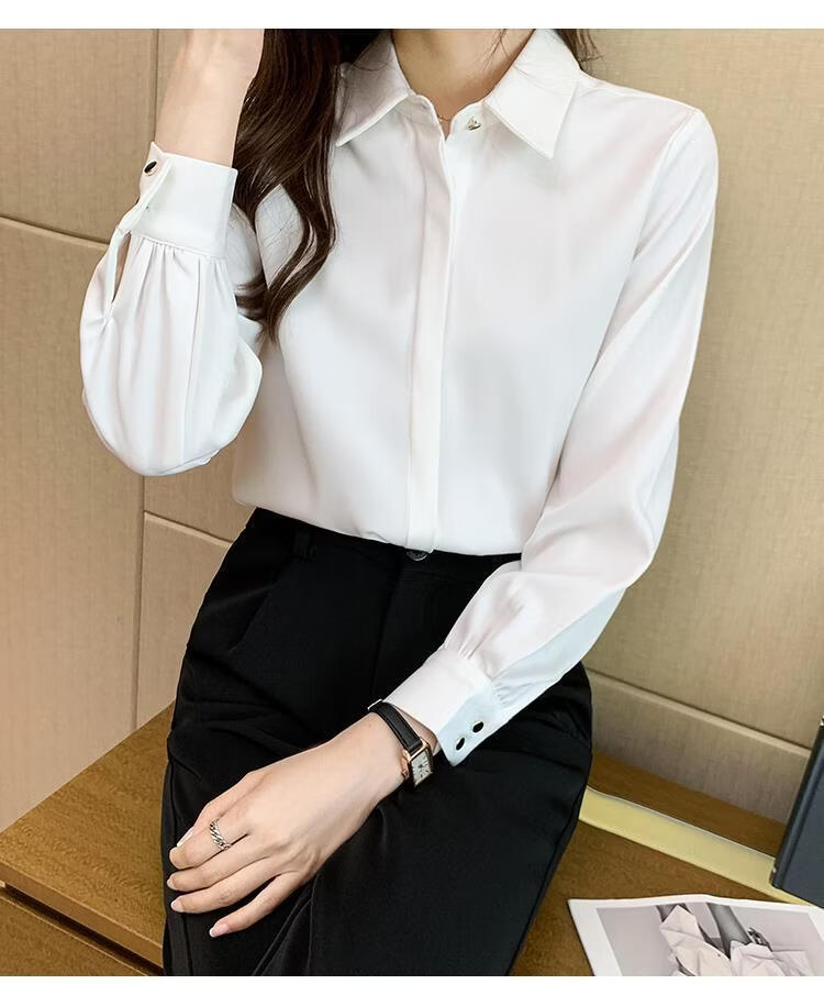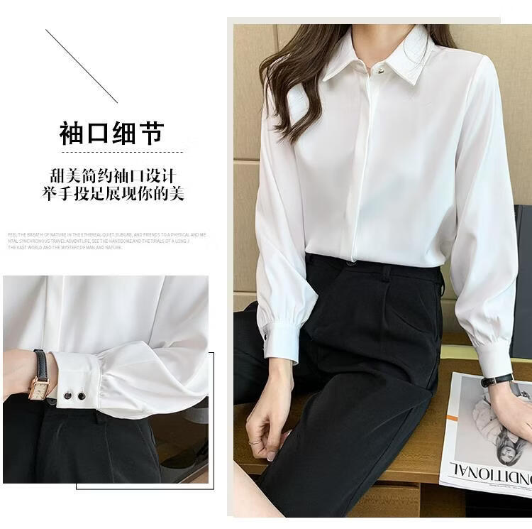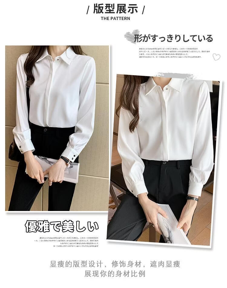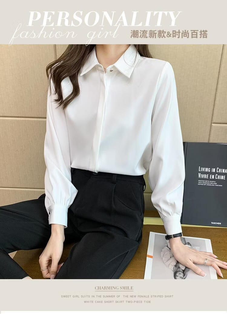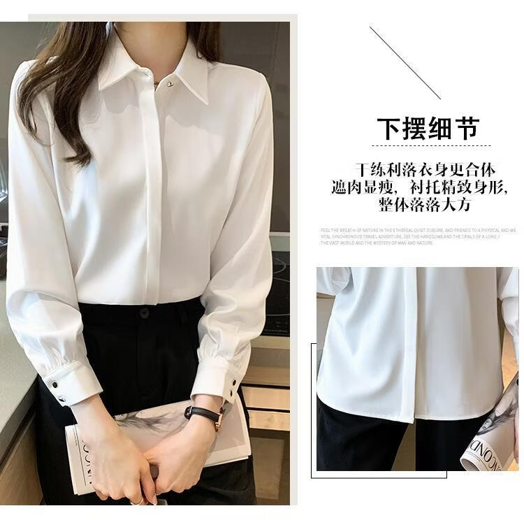 Playboy (PLAYBOY) 2026 spring and summer new versatile white shirt women's long-sleeved Korean style professional formal wear satin shirt women's top official flagship white S
